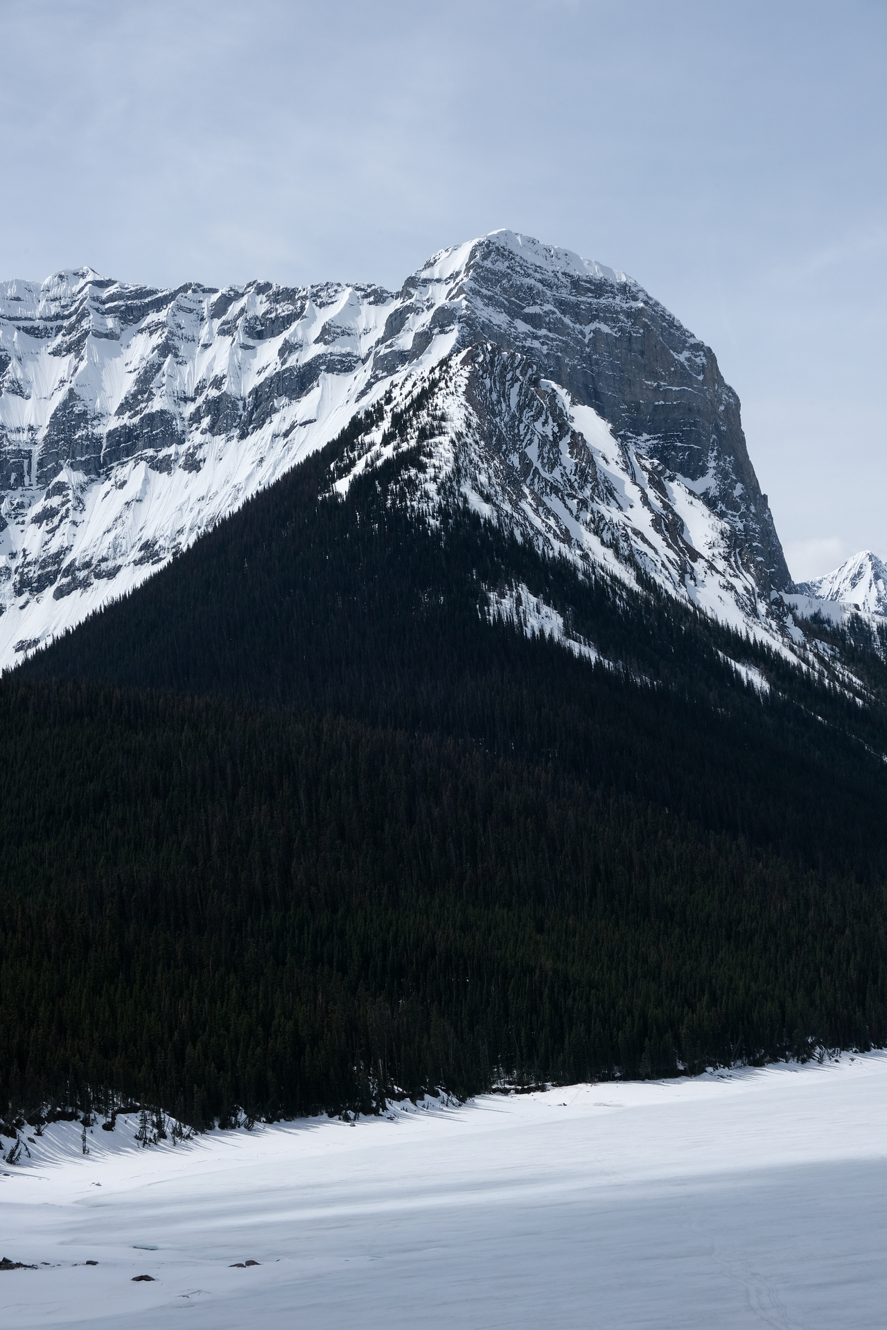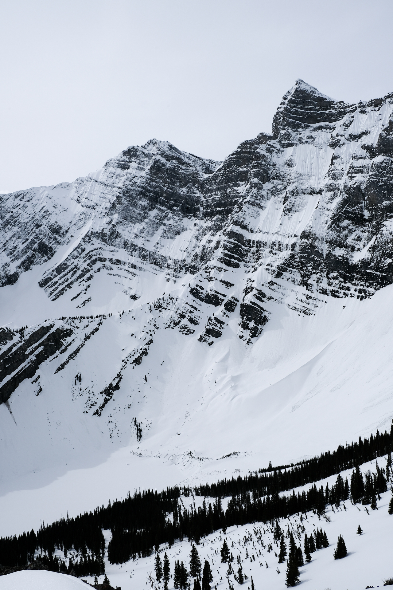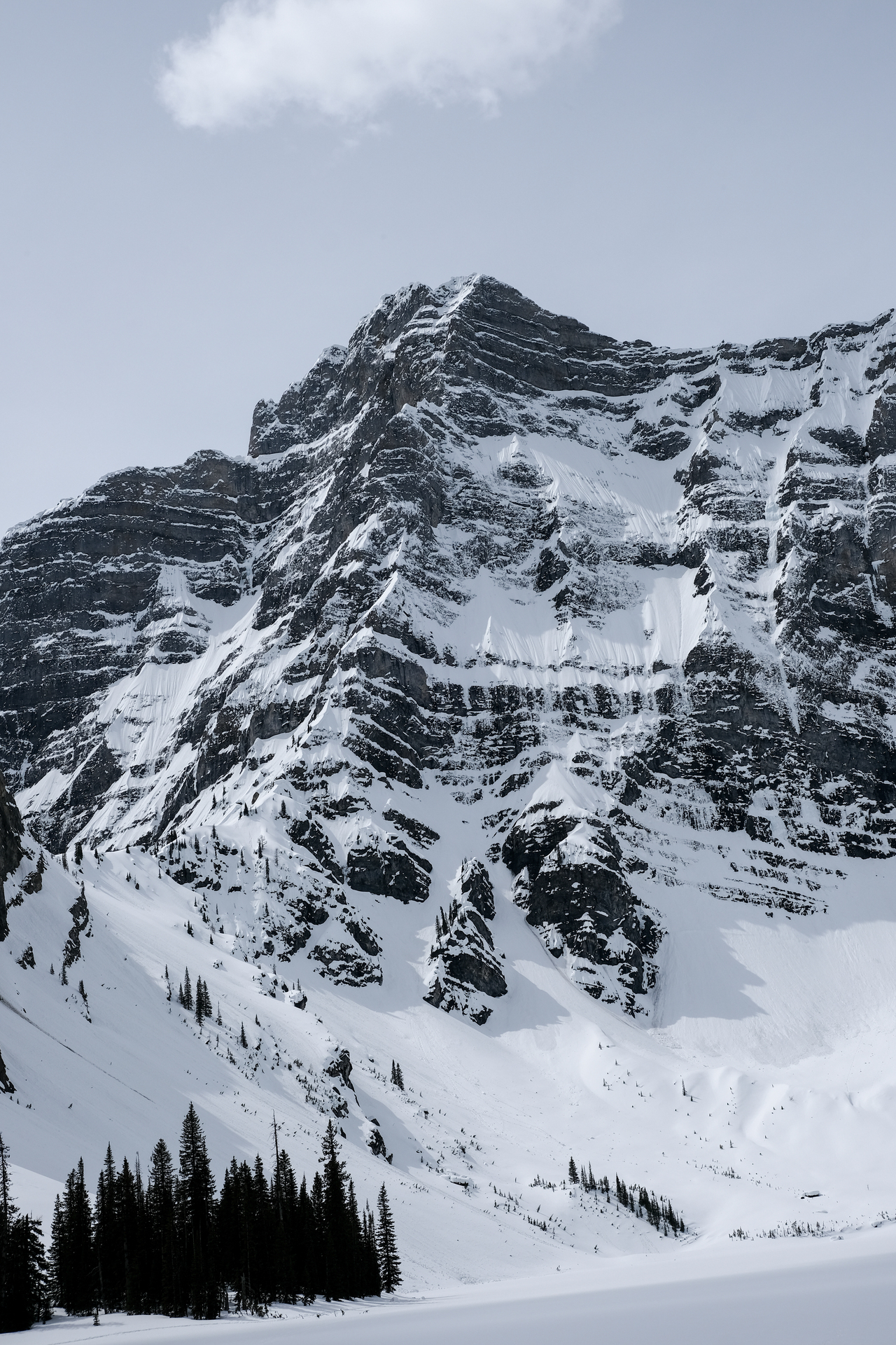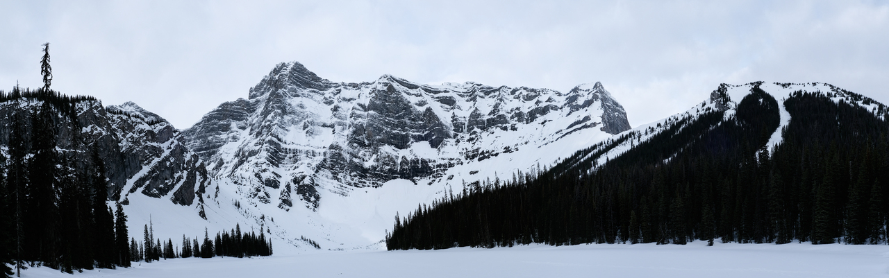 The next 2km were a nice warm-up, and with a brisk pace we soon emerged at Rawson Lake, which is just as beautiful in winter as it is in summer! Mount Sarrail's incredible east face looms above, with our objective sitting modestly on the far-right side of the frame.