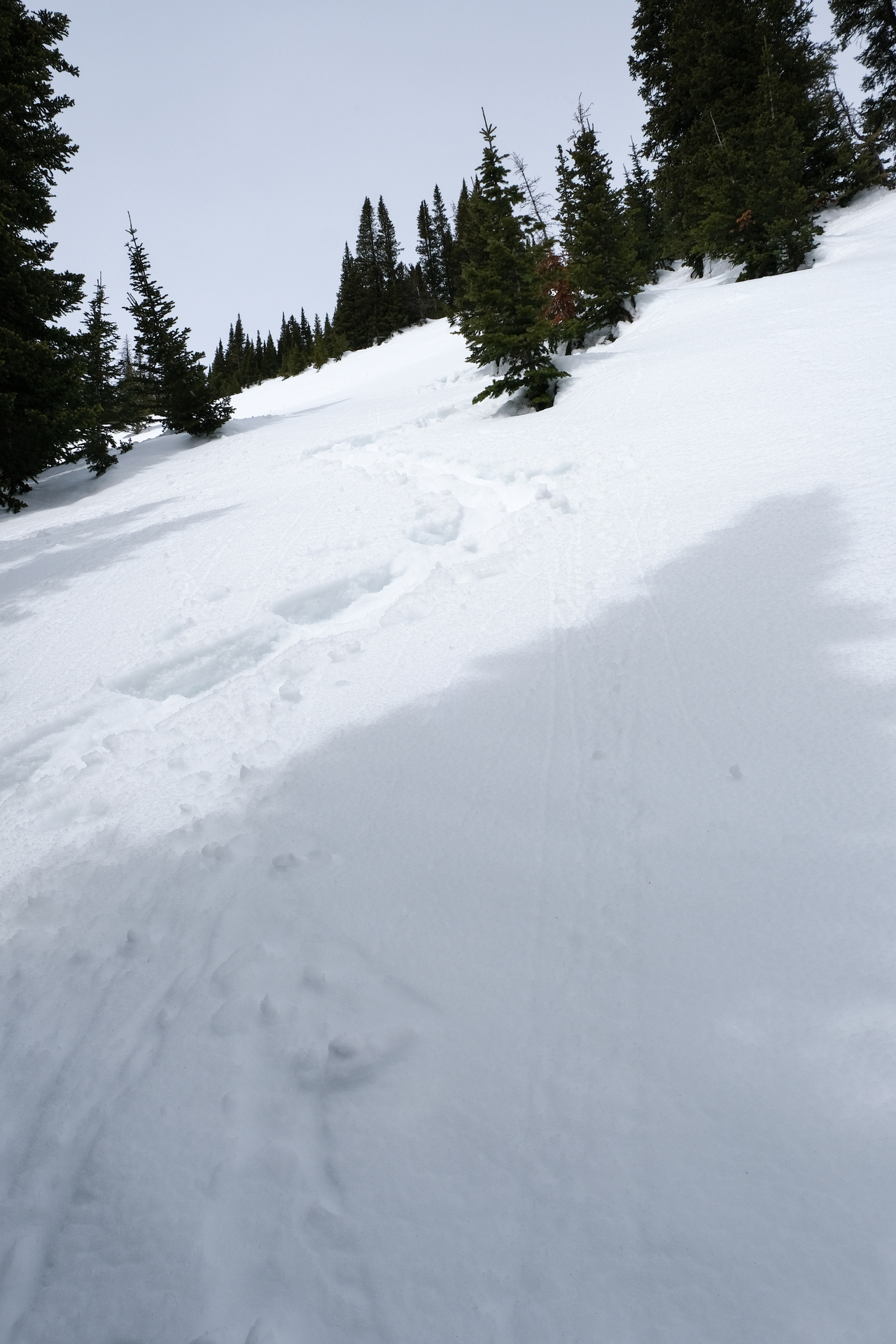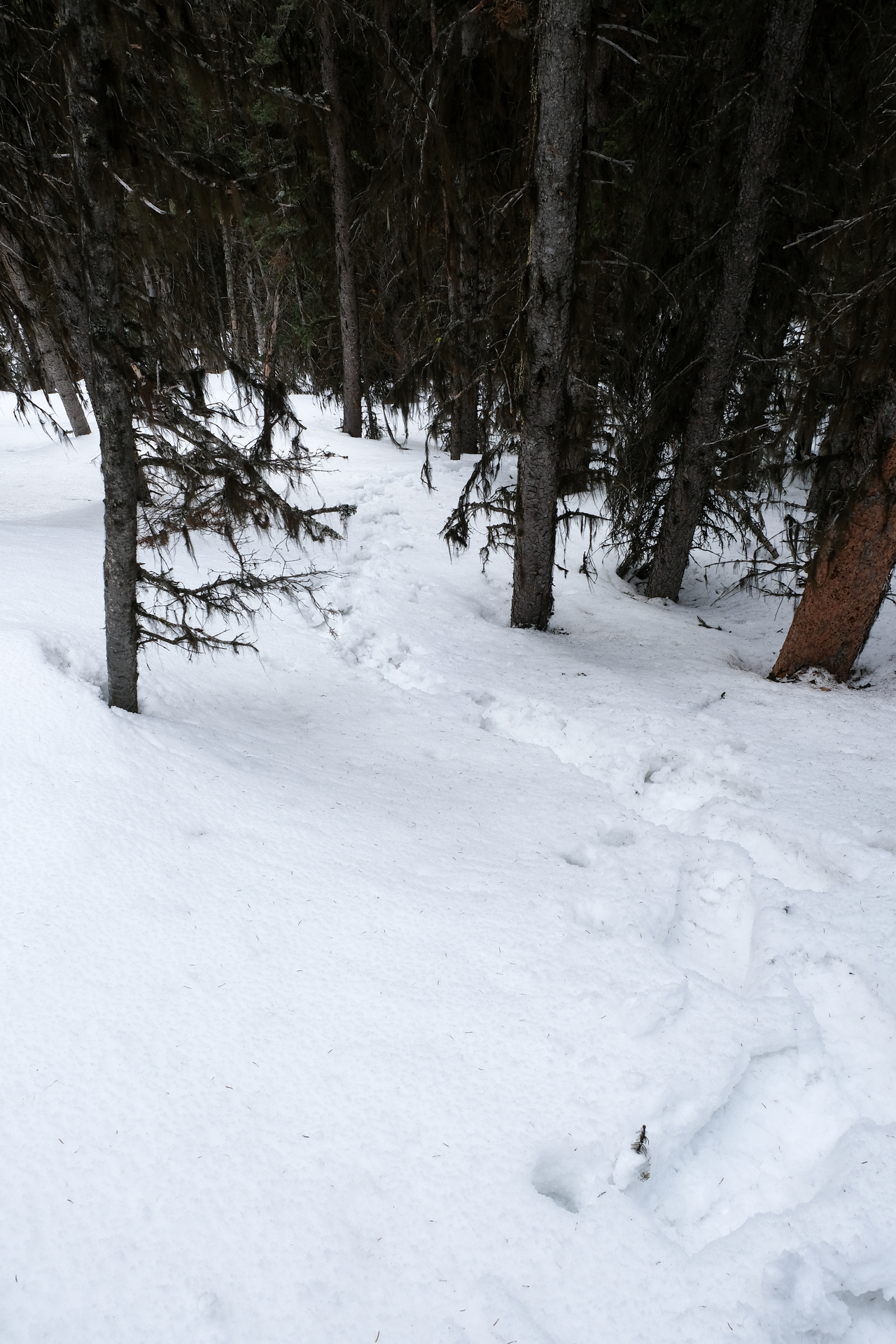 So much for having a trail! I guess the popularity of this area ends at the lake...Luckily the snow was fairly supportive and travel wasn't too bad, for now...