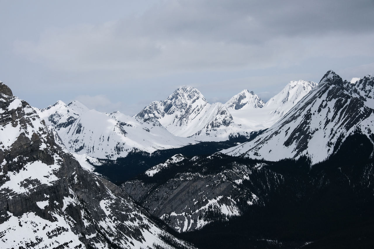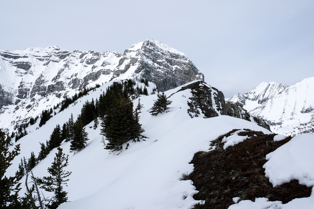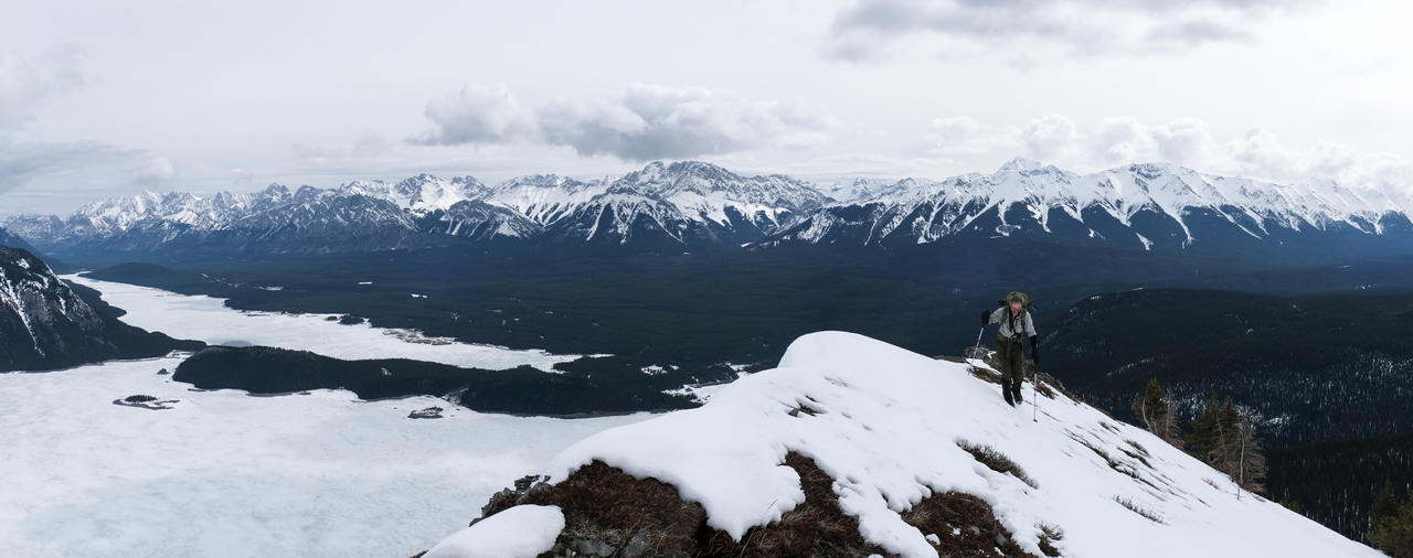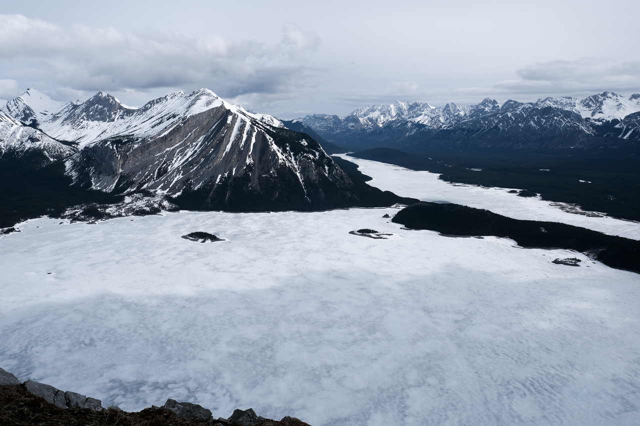 Upon topping out on the ridge, we were granted our first view over Kananaskis Lakes!