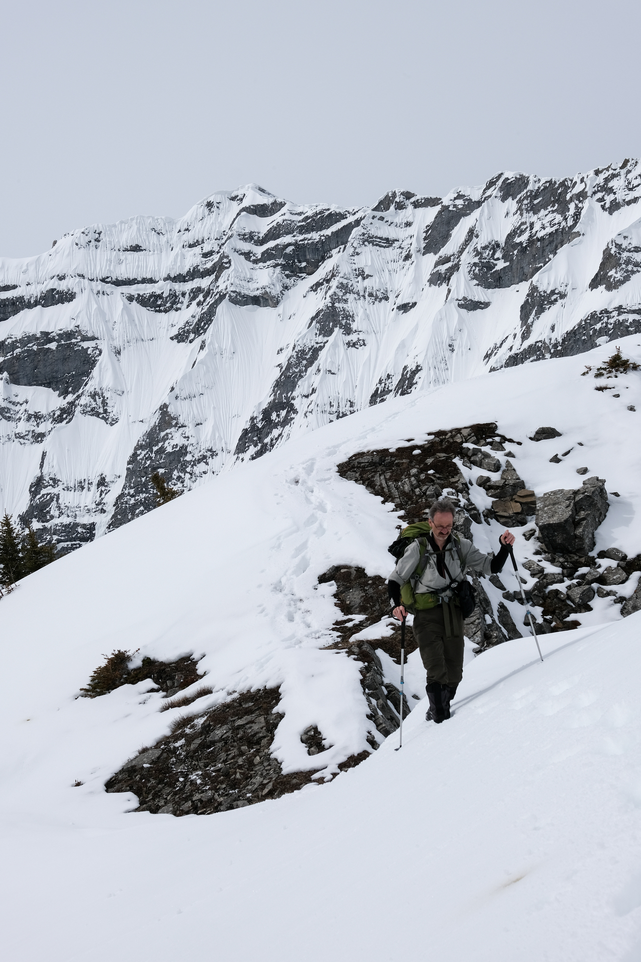 Mount Sir Douglas comes into view, rising to 3406m, as we continue up the ridge.