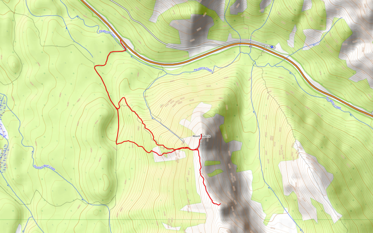 Mount Roberta rises directly ahead, from the pull-off where we would start our ascent.