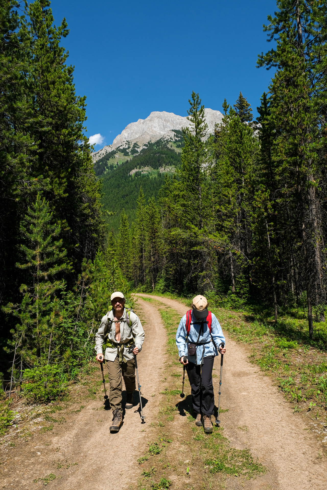 The sun beats down as we start up the logging road. The problem with these later starts is that you're climbing in the mid-afternoon heat!