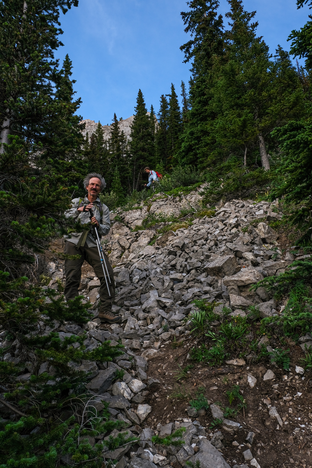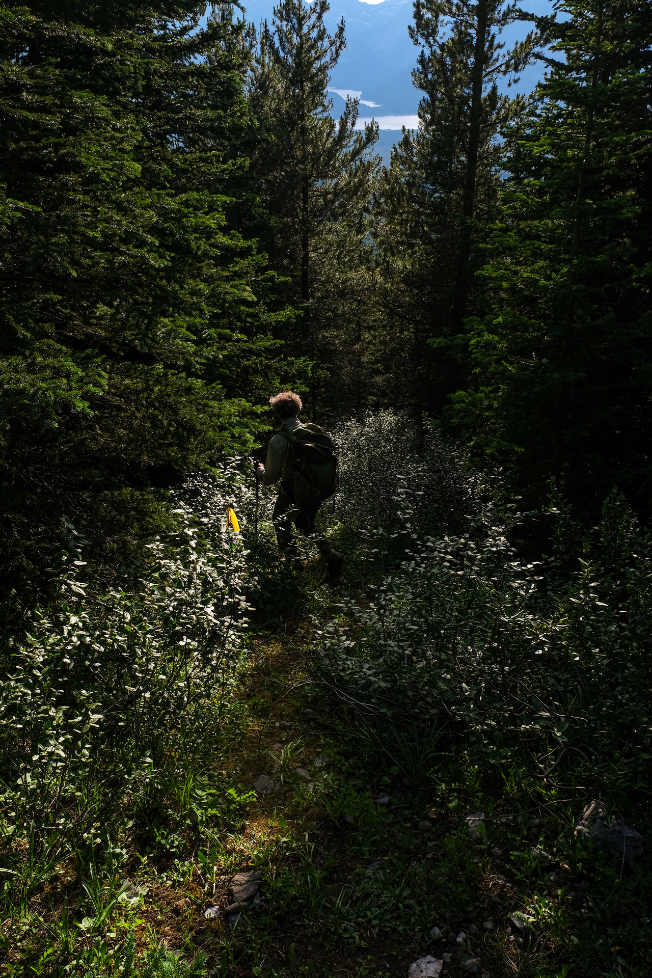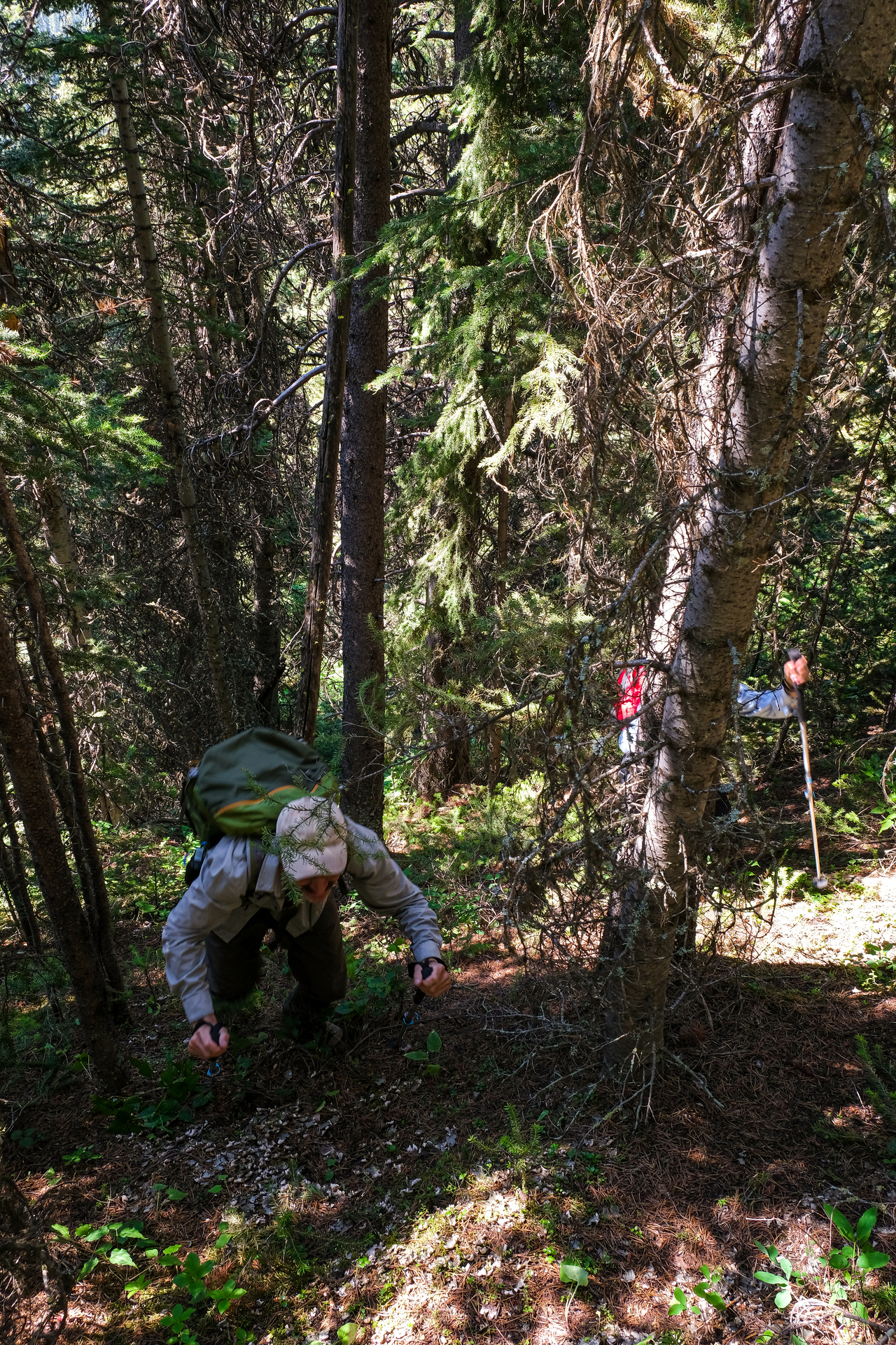 My eyes were extremely dried out at this point, and it was a major relief to finally return to the shelter of the trees below the col.
