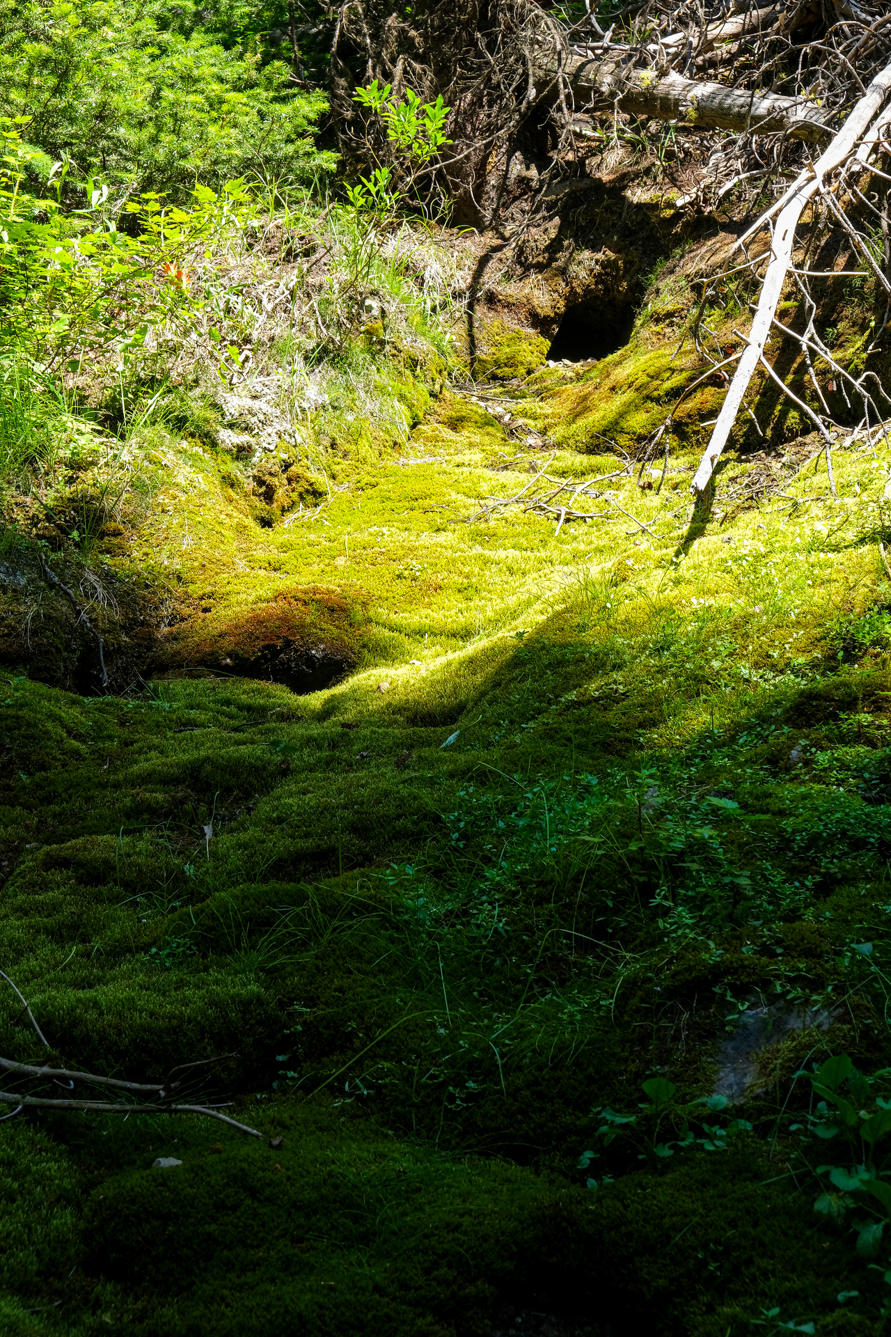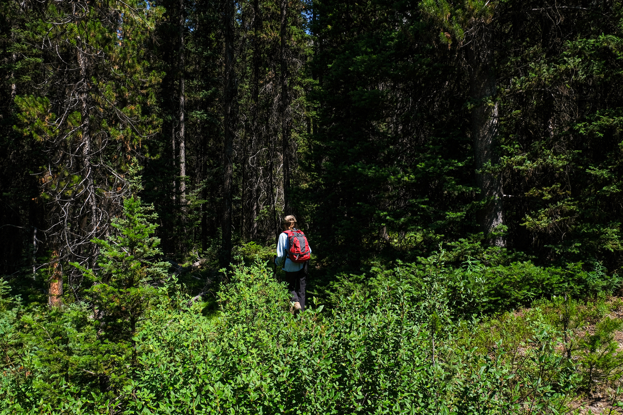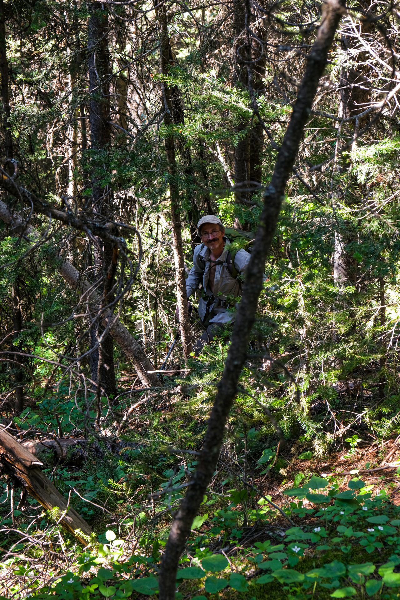 My eyes were extremely dried out at this point, and it was a major relief to finally return to the shelter of the trees below the col.