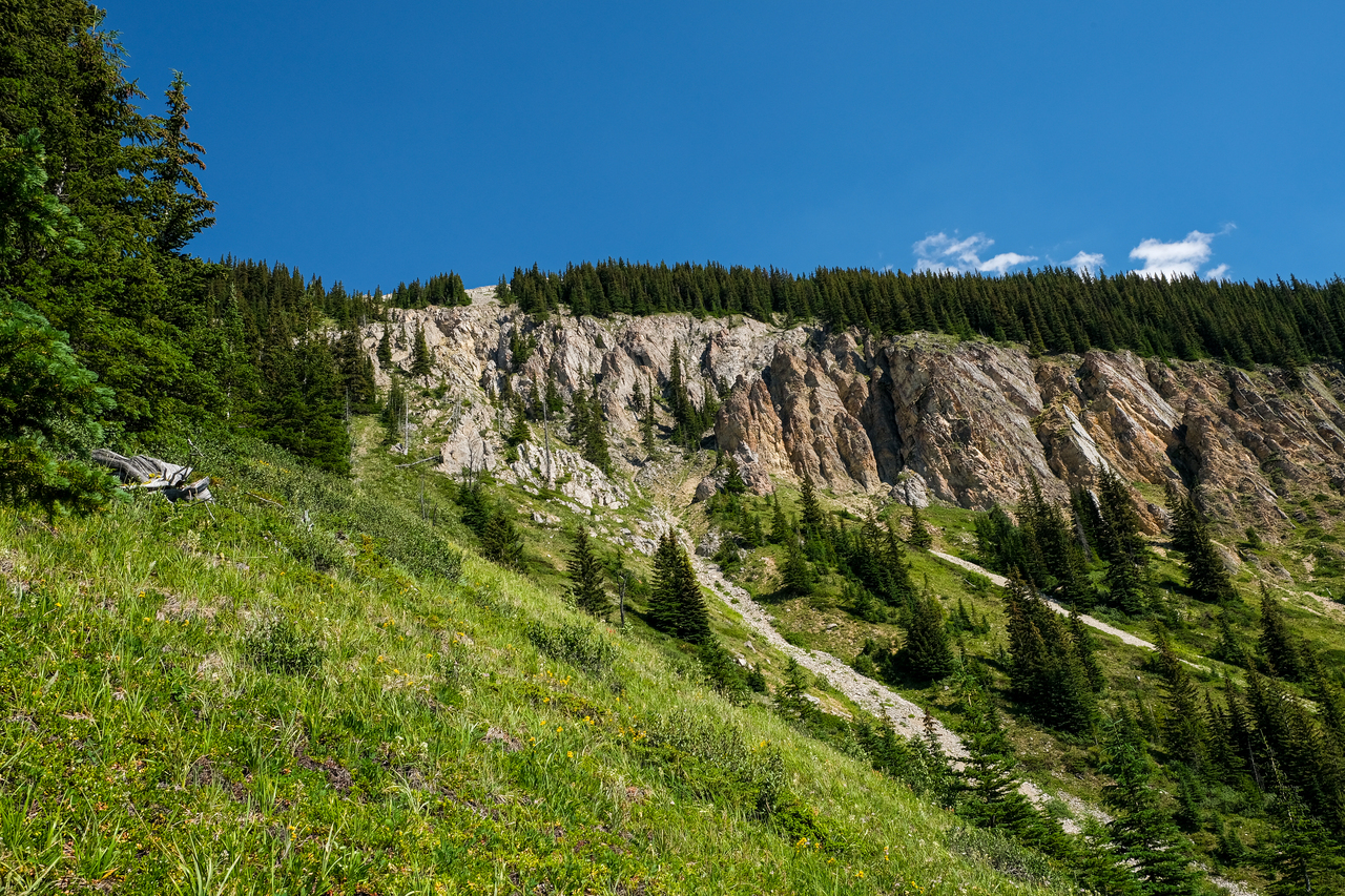 Being lucky enough to have a summer birthday, I've always enjoyed having the day off, never having to be in school. This was the first year that that wouldn't be the case, as my birthday was a "blackout day" at work (too many people had already booked it off - I guess they're celebrating my birthday without me 🥲), so I wouldn't be able to take off to the mountains :(. Nonetheless, I was still able to book off the three days prior, so my family headed off for an early birthday celebration :)! Being in the mountains for three days this trip, rather than our usual two, I was eager to make the most of the extra day! After driving in from Edmonton, and setting up camp at Canyon, my dad, Kaitlyn, and I started a late afternoon ascent of Mount Roberta, a small, but impressive peak at the far northern end of Mount Pocaterra's lengthy ridge.