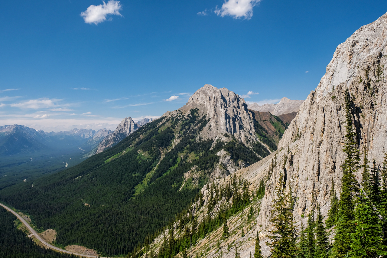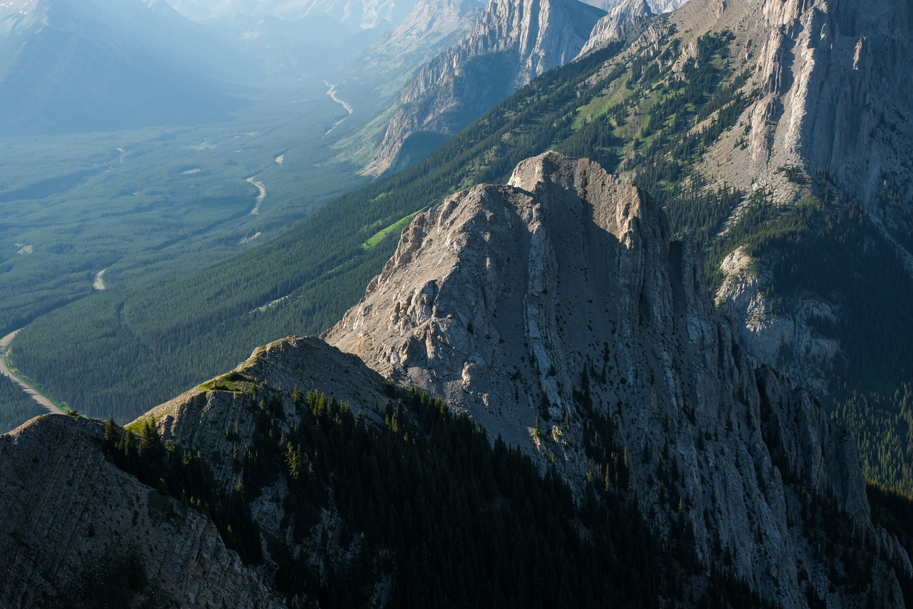 Mount Rae, one of the highest peaks in Kananaskis, towers to 3218m directly across the highway, to the east!
