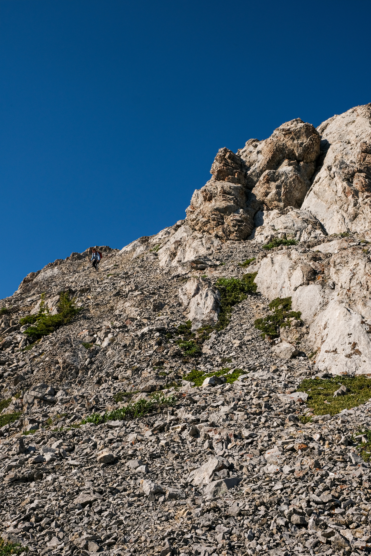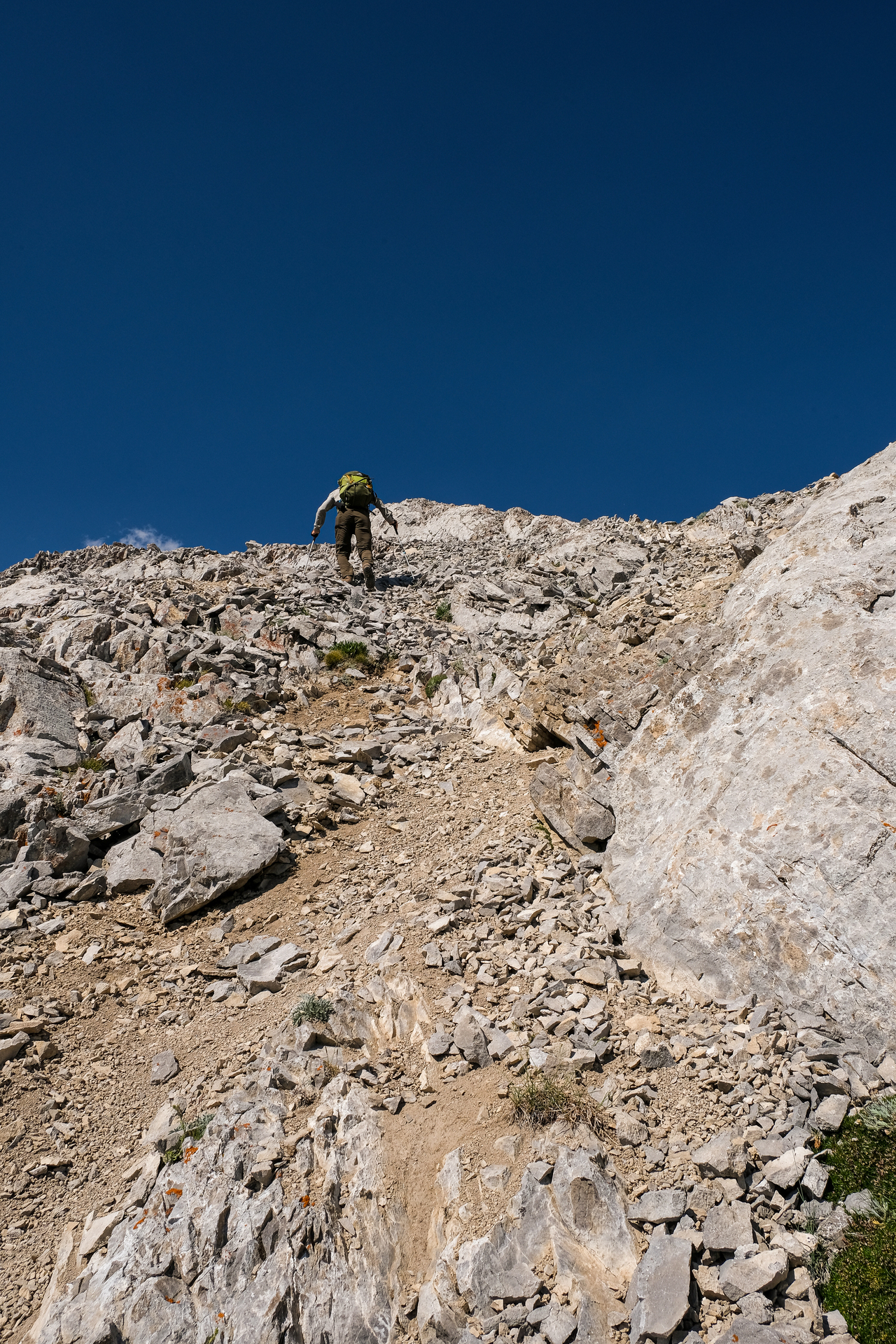 The final scree trudge between us and the summit.