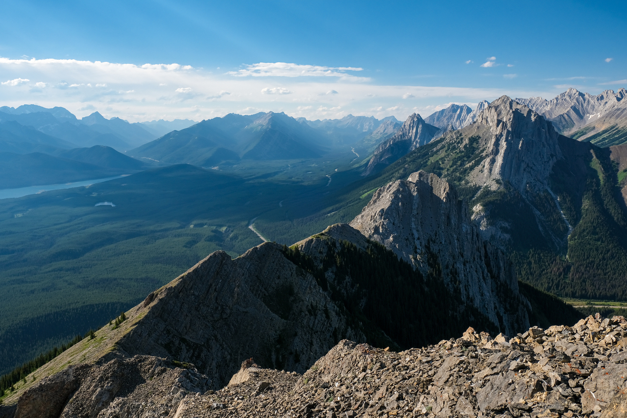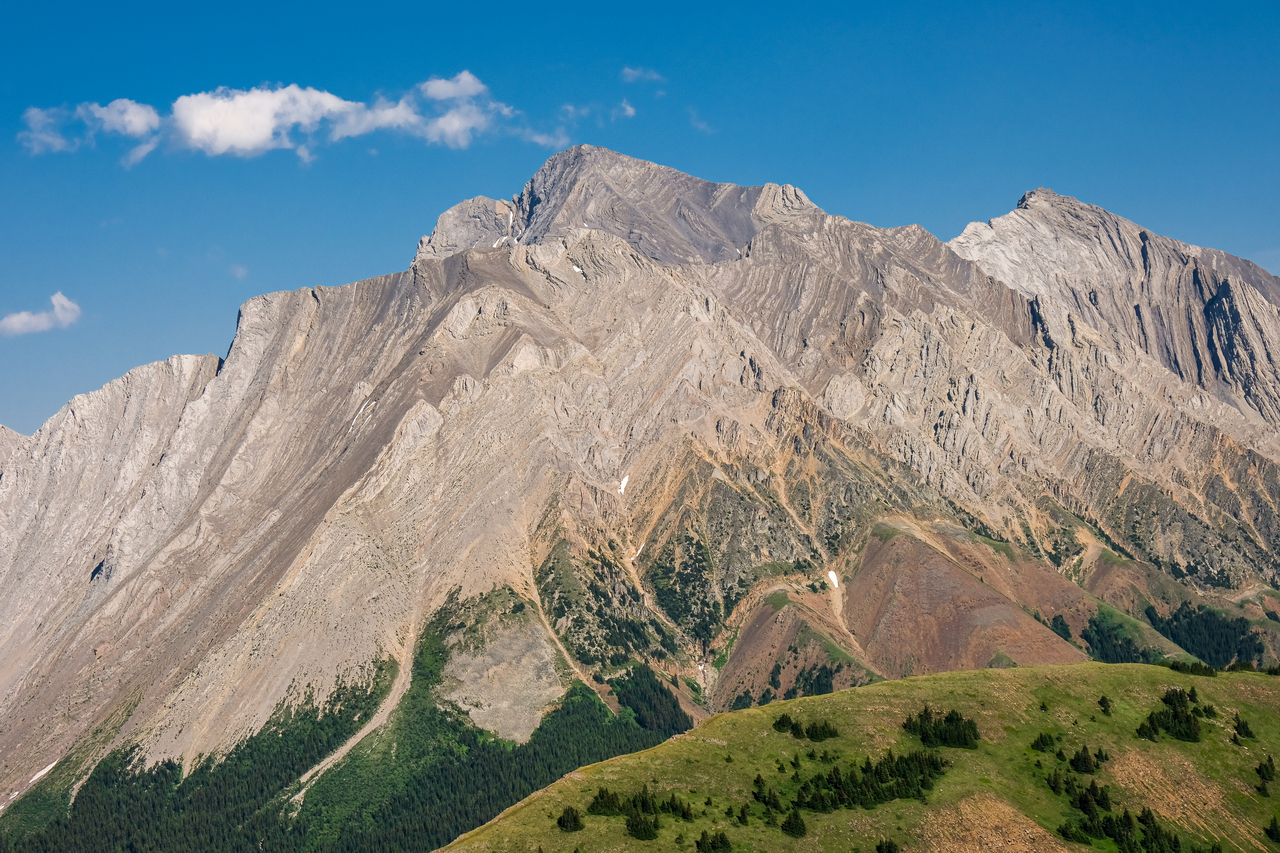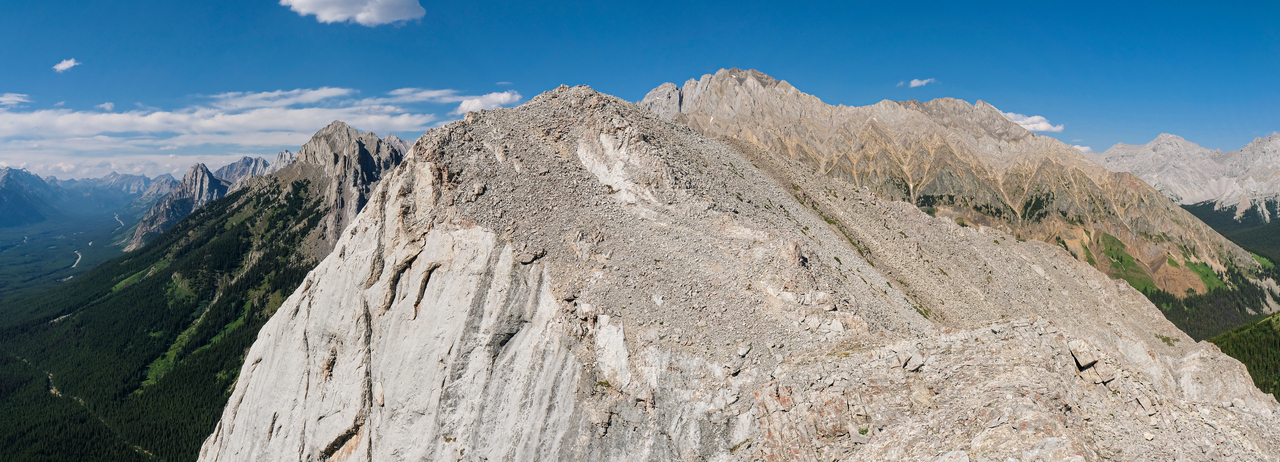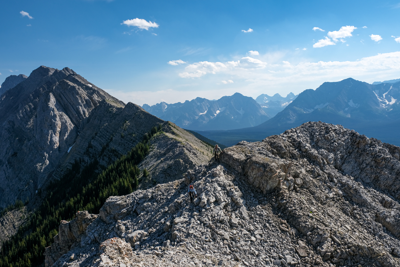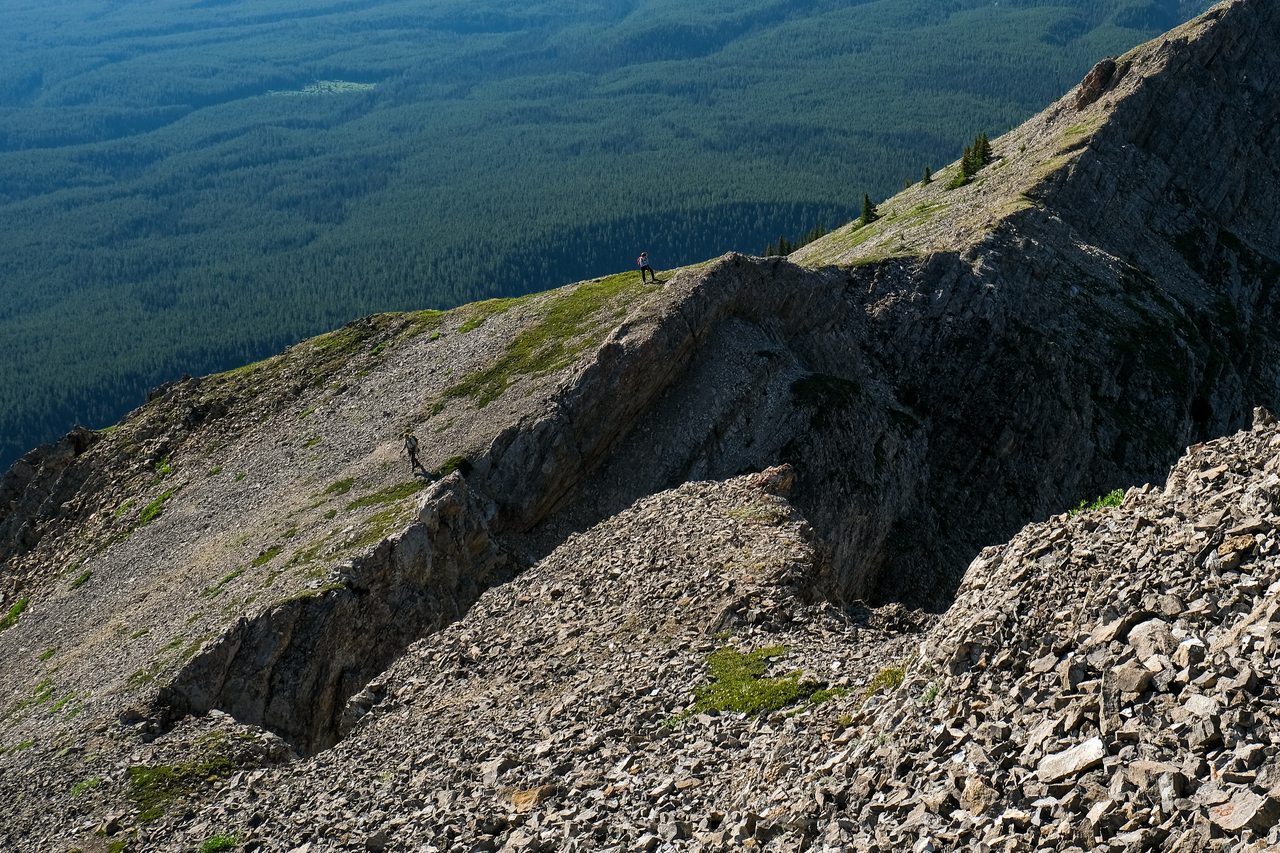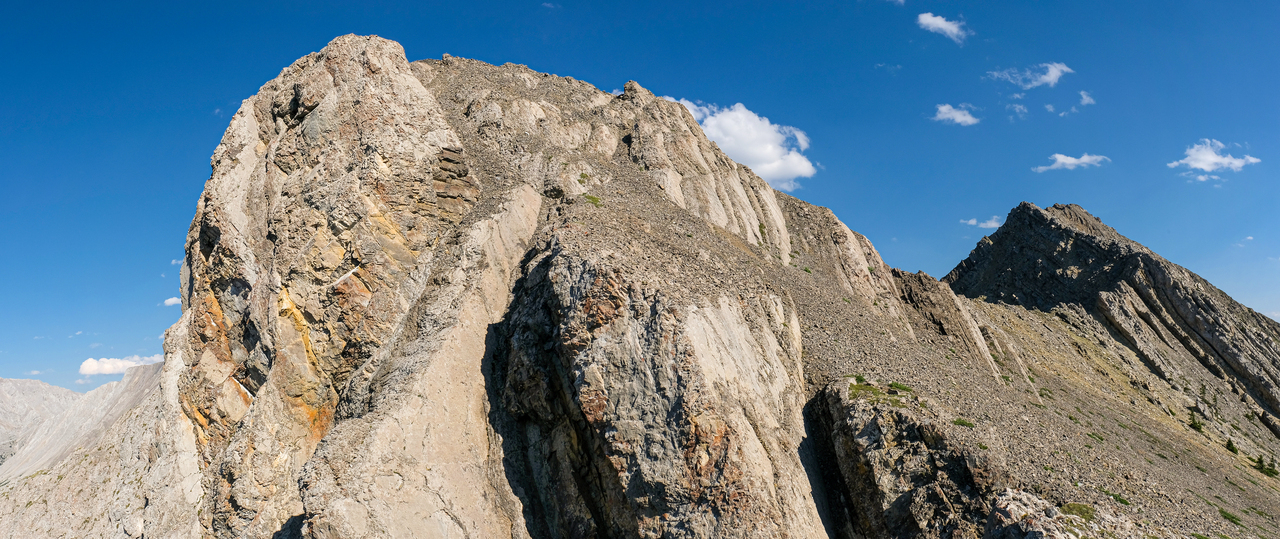 The ridge continues to rise to the south, but the summit of Mount Pocaterra is nowhere near. While Pocaterra is a scramble, the route ascends via the ridge on the opposite side.
