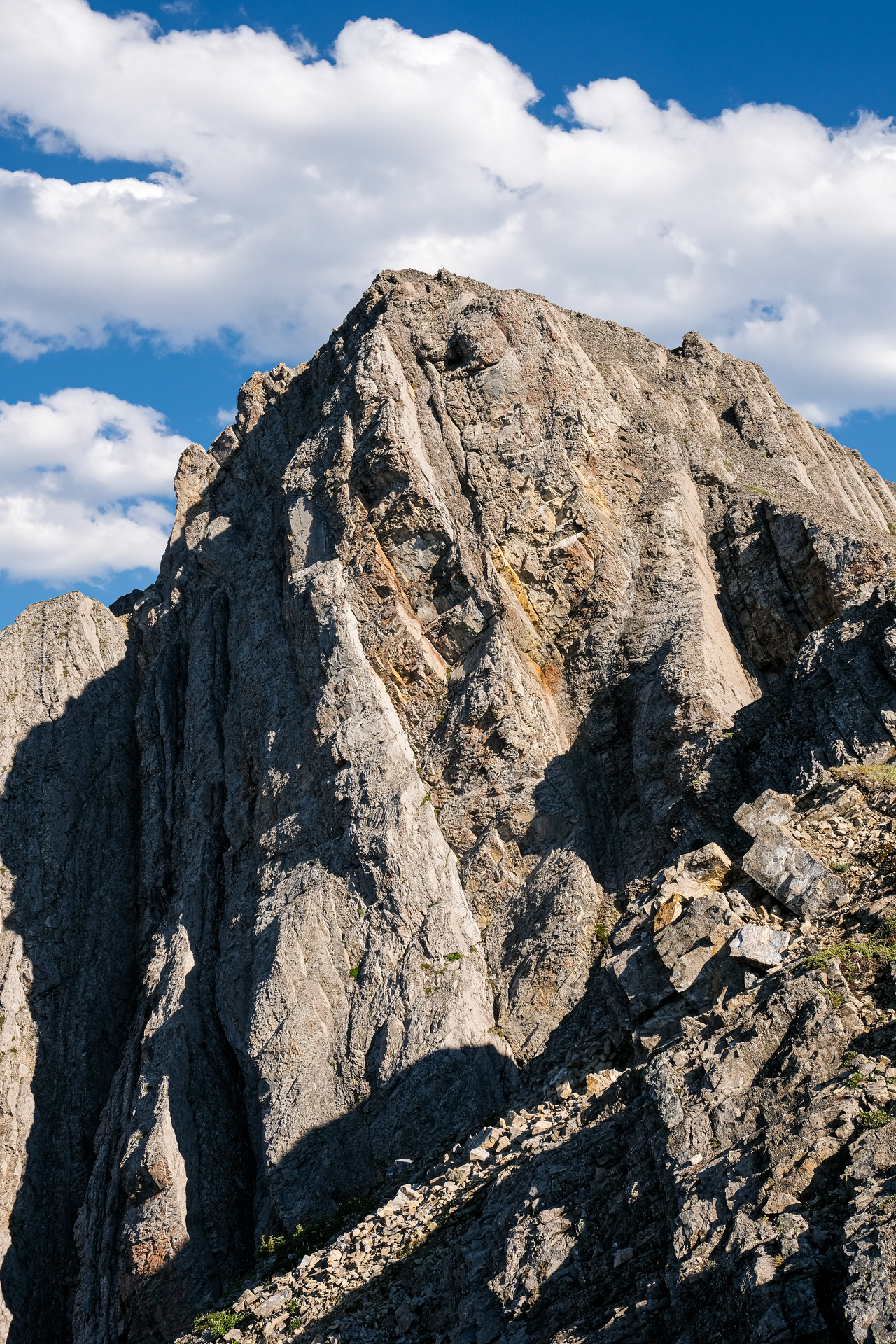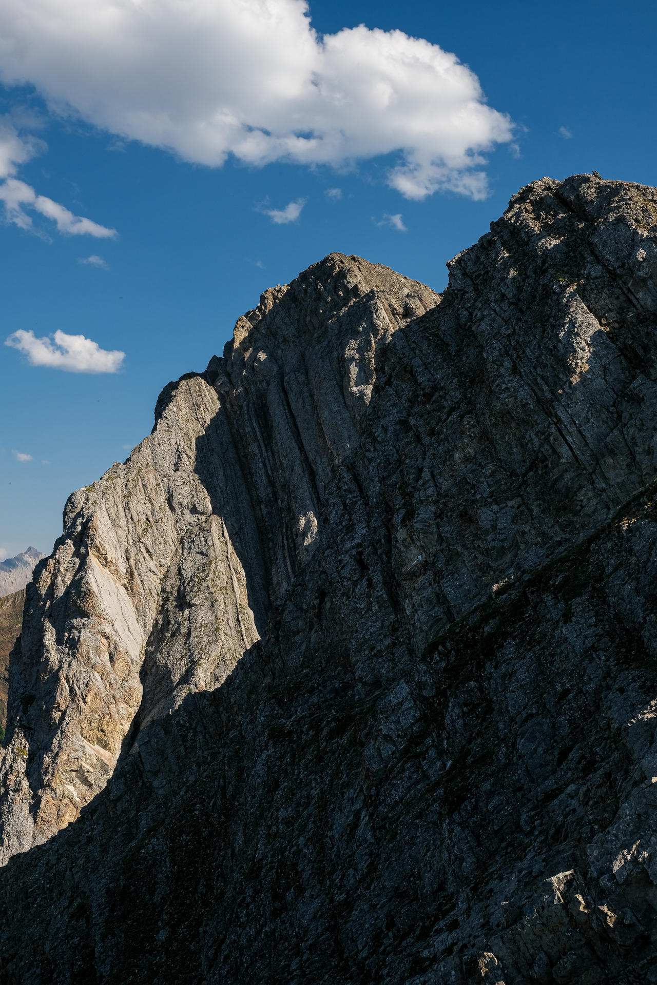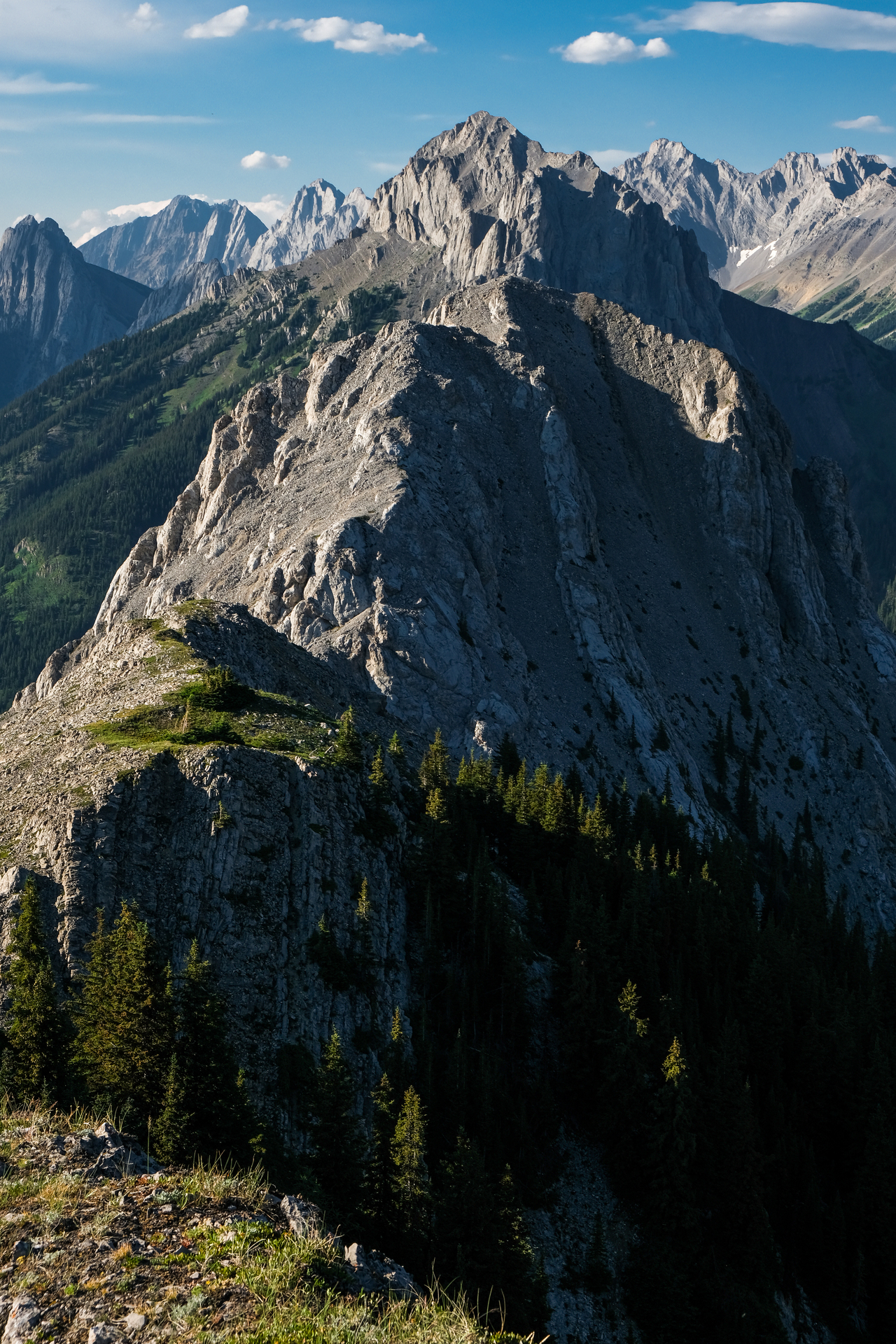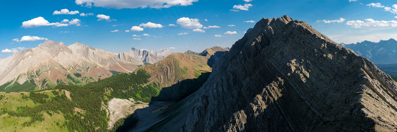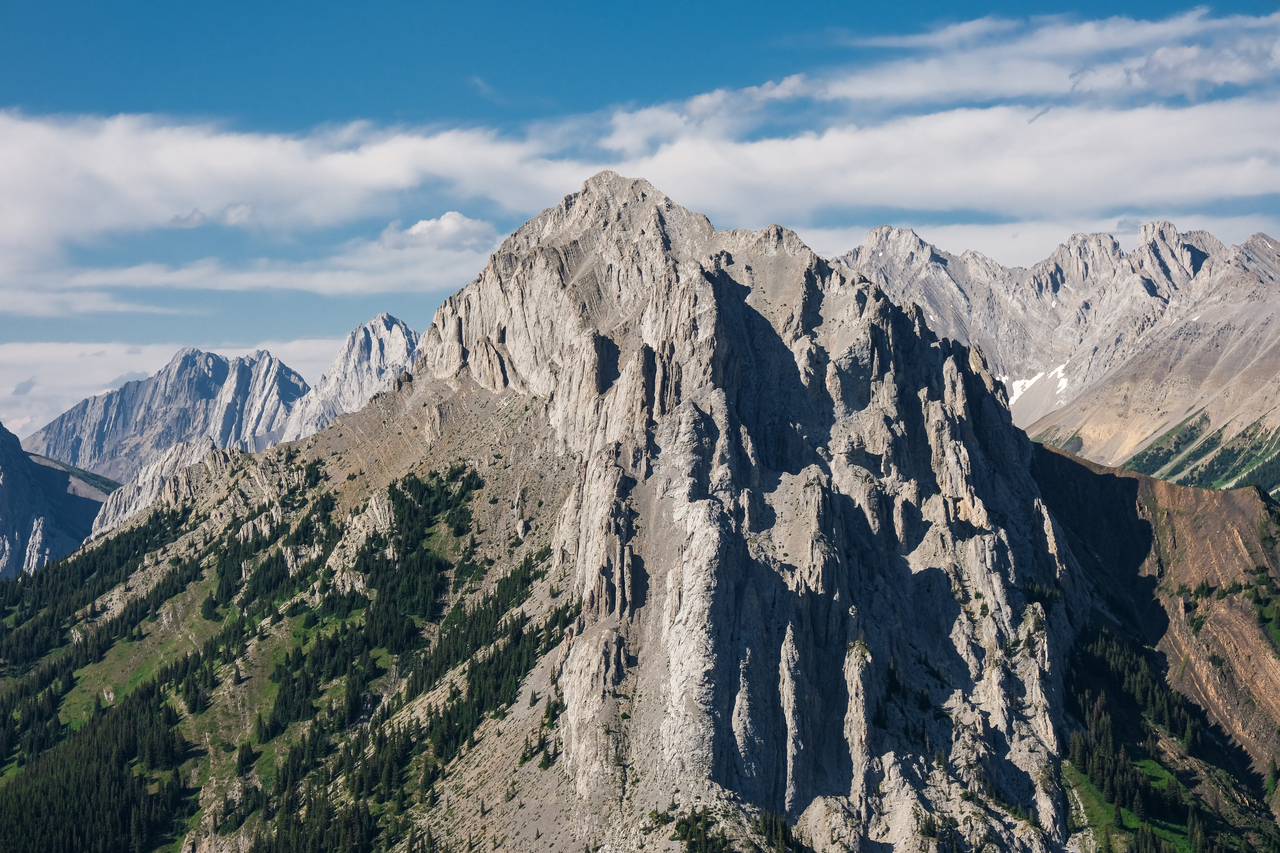 The ridge continues to rise to the south, but the summit of Mount Pocaterra is nowhere near. While Pocaterra is a scramble, the route ascends via the ridge on the opposite side.