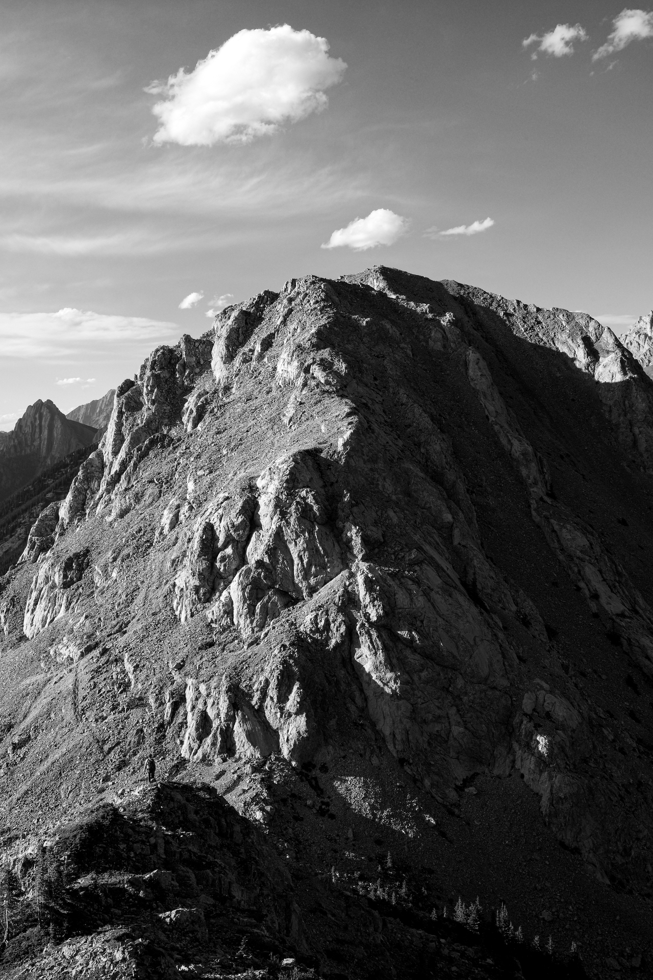 Dramatic lighting on Roberta, as my dad nears the col.