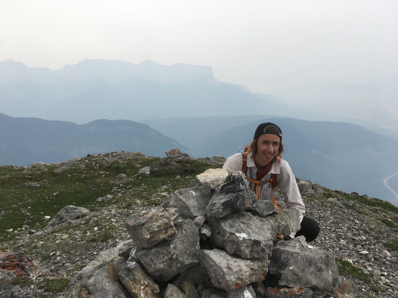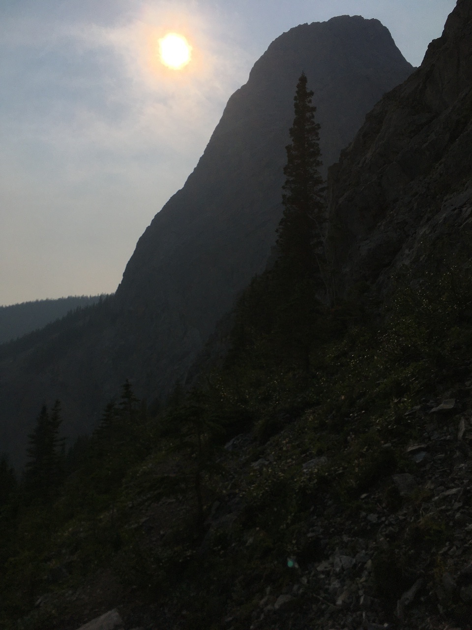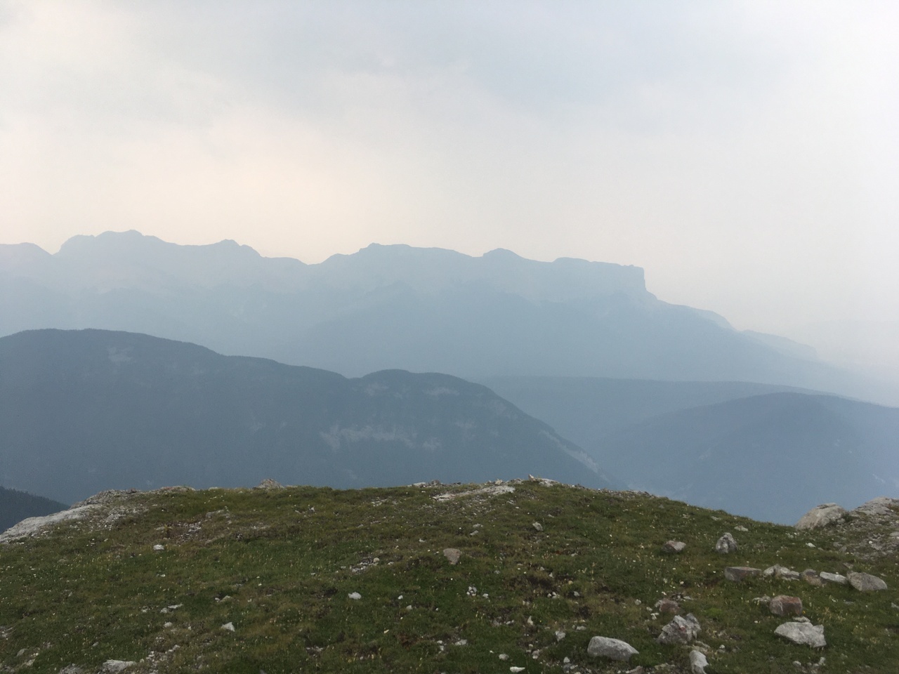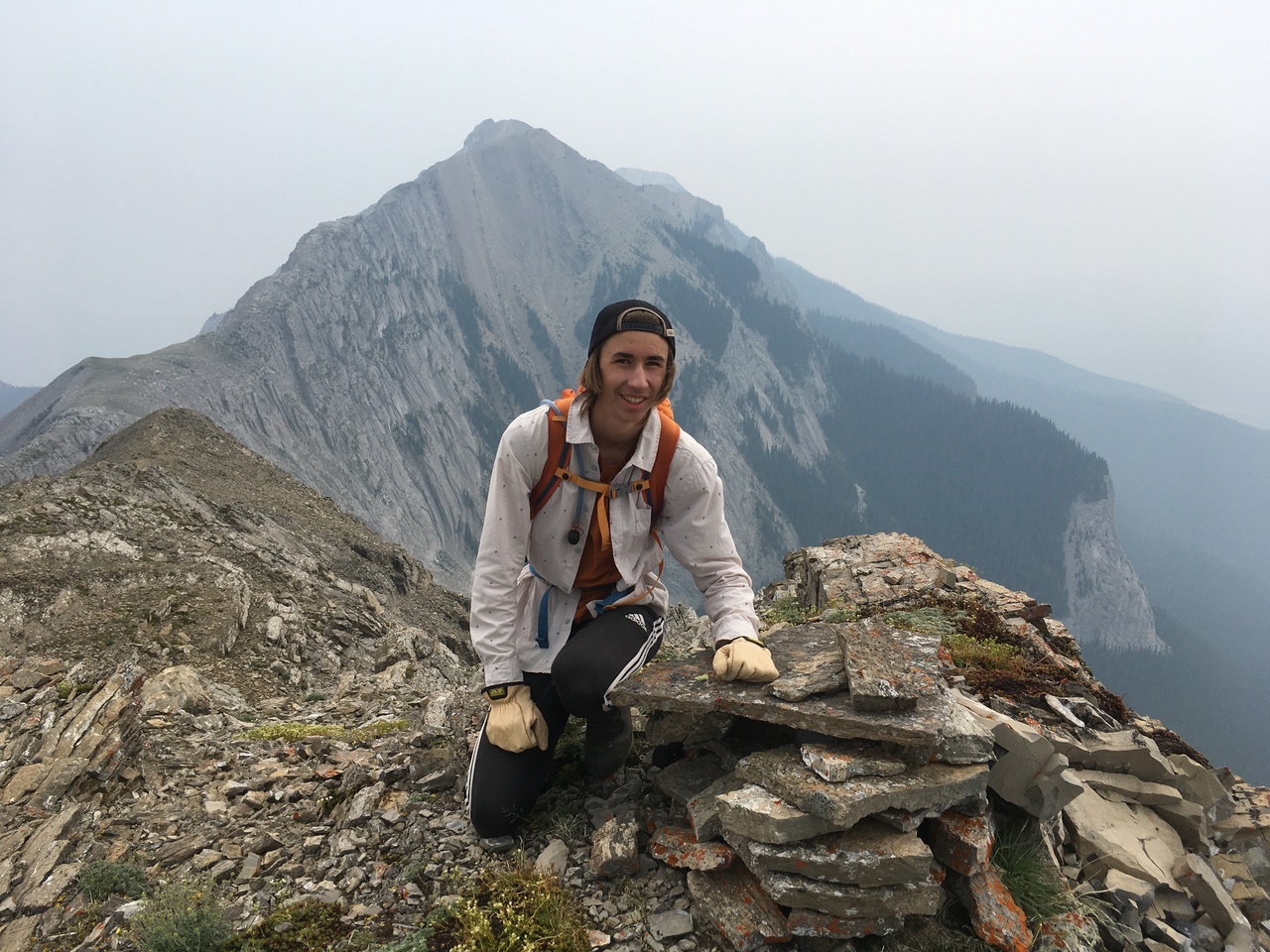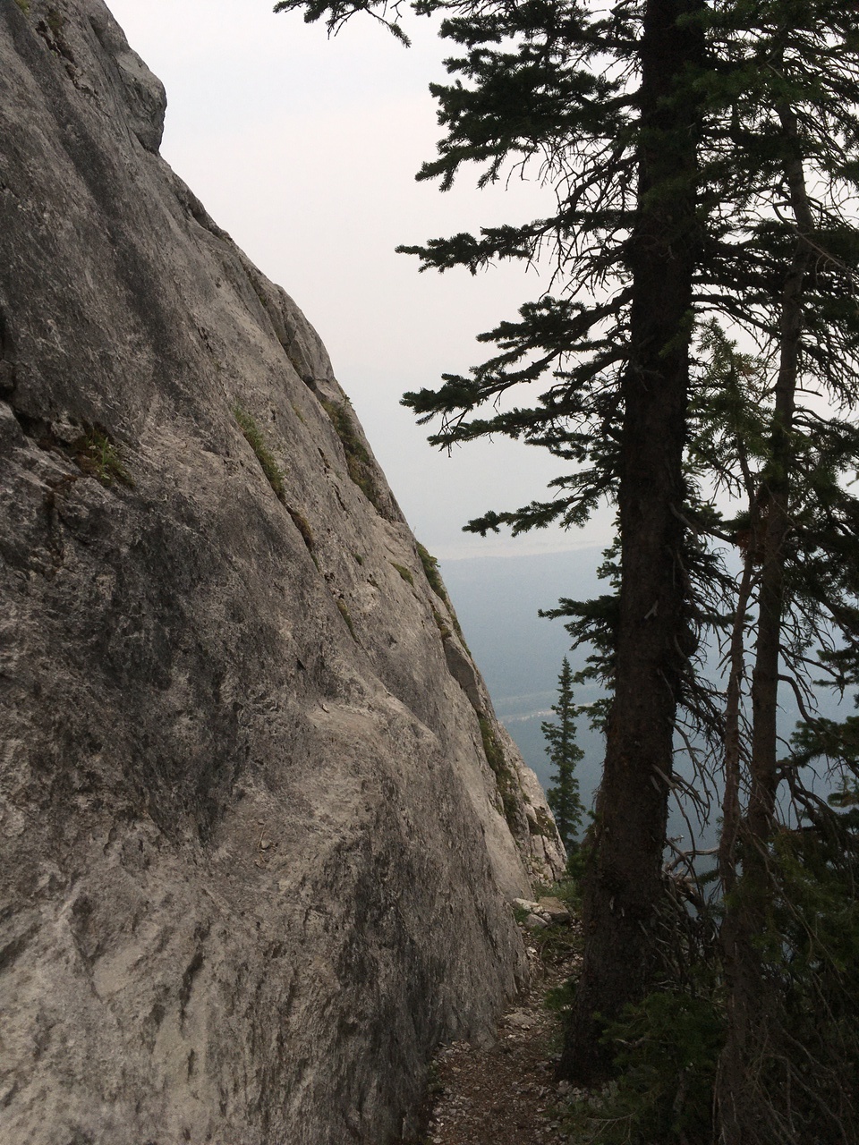 After waking up to smoke even thicker than what we experienced on Nigel Peak the day before, my original thought was that scrambling a peak would be a total waste! The smoke had just rolled in the day prior however, and we didn't know where it came from, so we decided to drive down the parkway towards Jasper, and hope the air quality might improve...Nope! Smoke was just as bad as we drove through Jasper, but knowing me with my "elevation addiction" as my dad calls it, I didn't want to miss out on bagging another summit while I was in the mountains! I frantically flipped through Kane's Scrambles, looking for an option where not being able to see anything wouldn't be the end of the world. I came across Roche à Perdrix, and hoped I could scramble Roche Miette in the future (on a clear day), for a similar view, to see what I missed. Little did I know that my modest goals of simply bagging a summit on this smokey day would grow into a whole ridge walk with some interesting route finding!