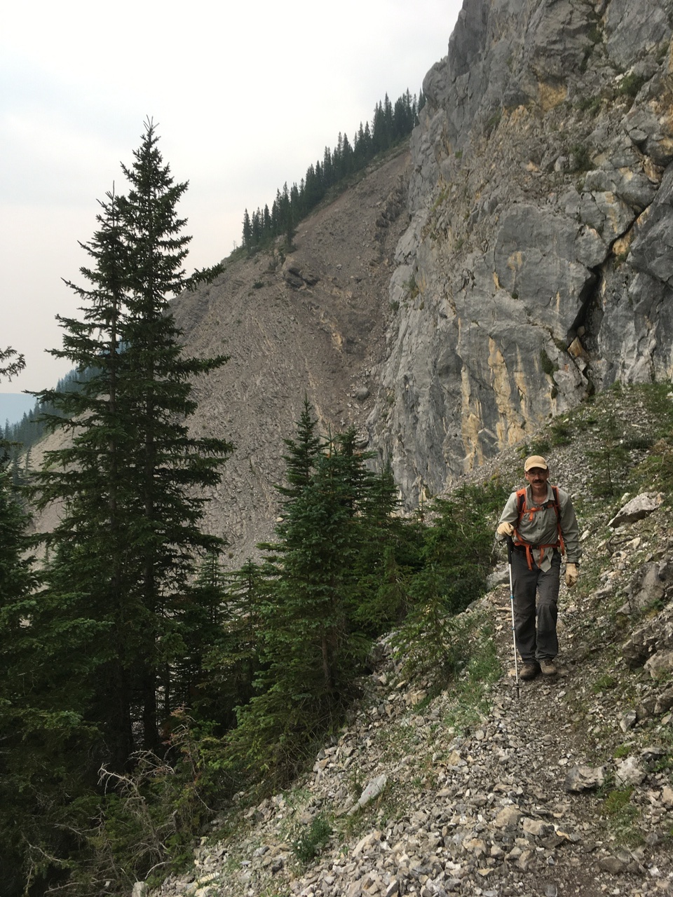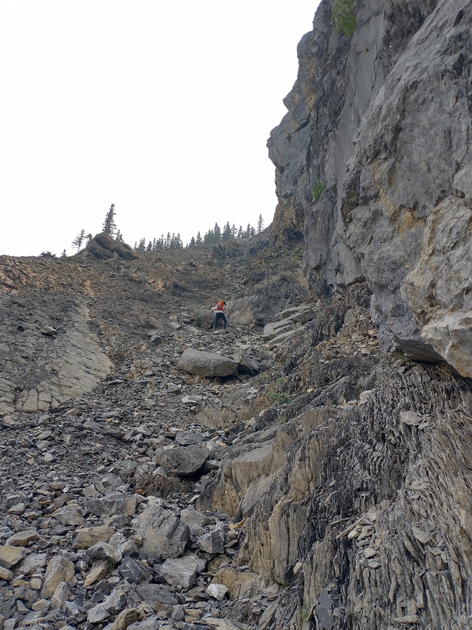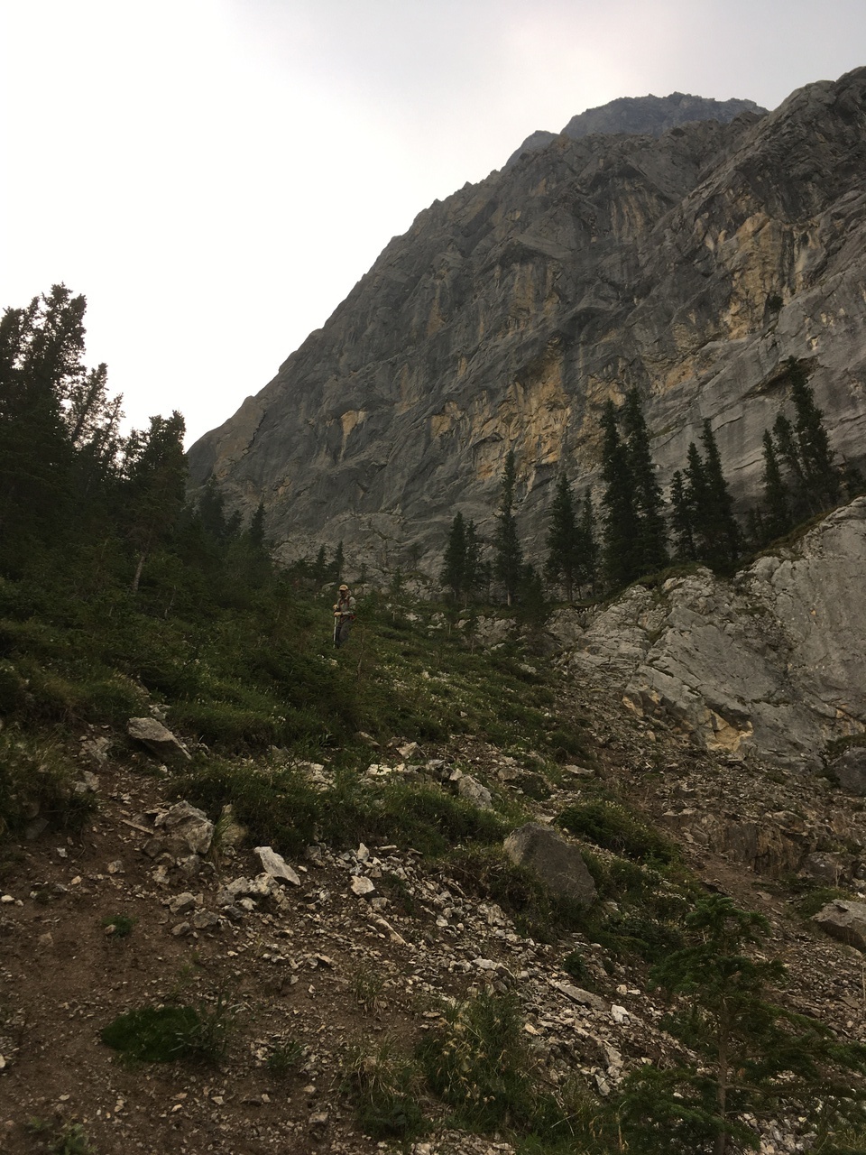 The trail soon exits the trees, and continues traversing along the base of the cliffs!