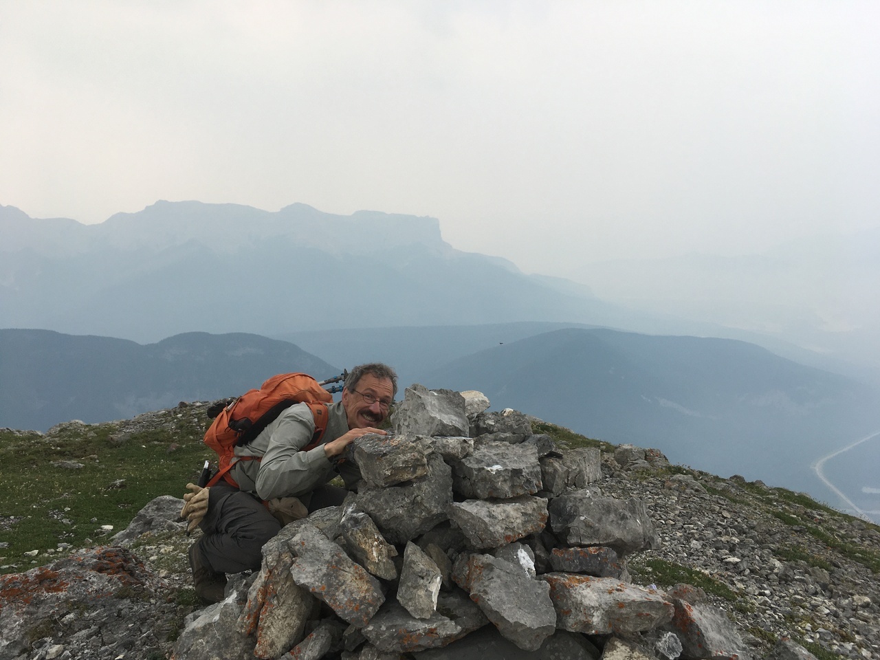 Silly Dave! My dad, who's name is not Dave, hides behind the summit cairn! haha!