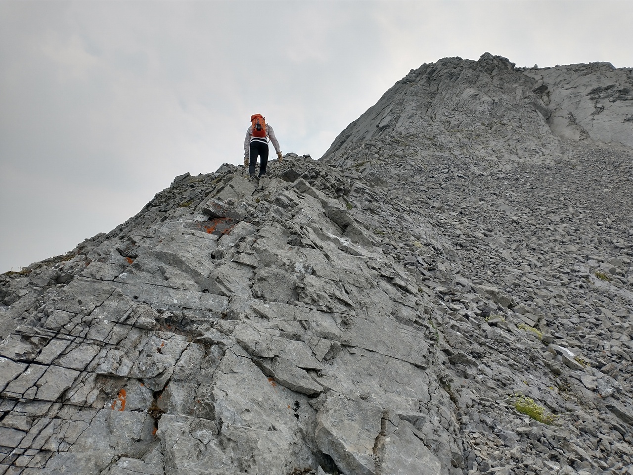 Last bit of hands-on scrambling, as we meet up with the trail from the ridge!