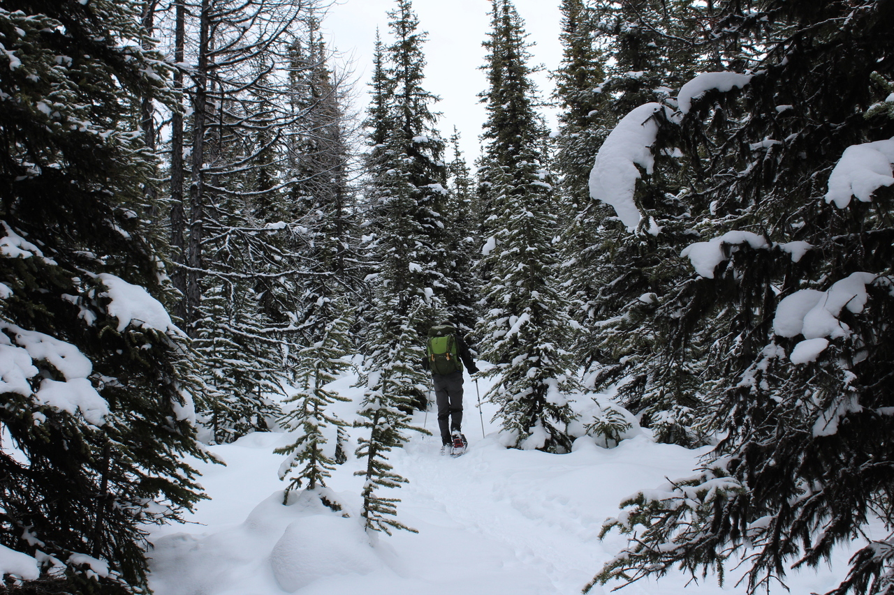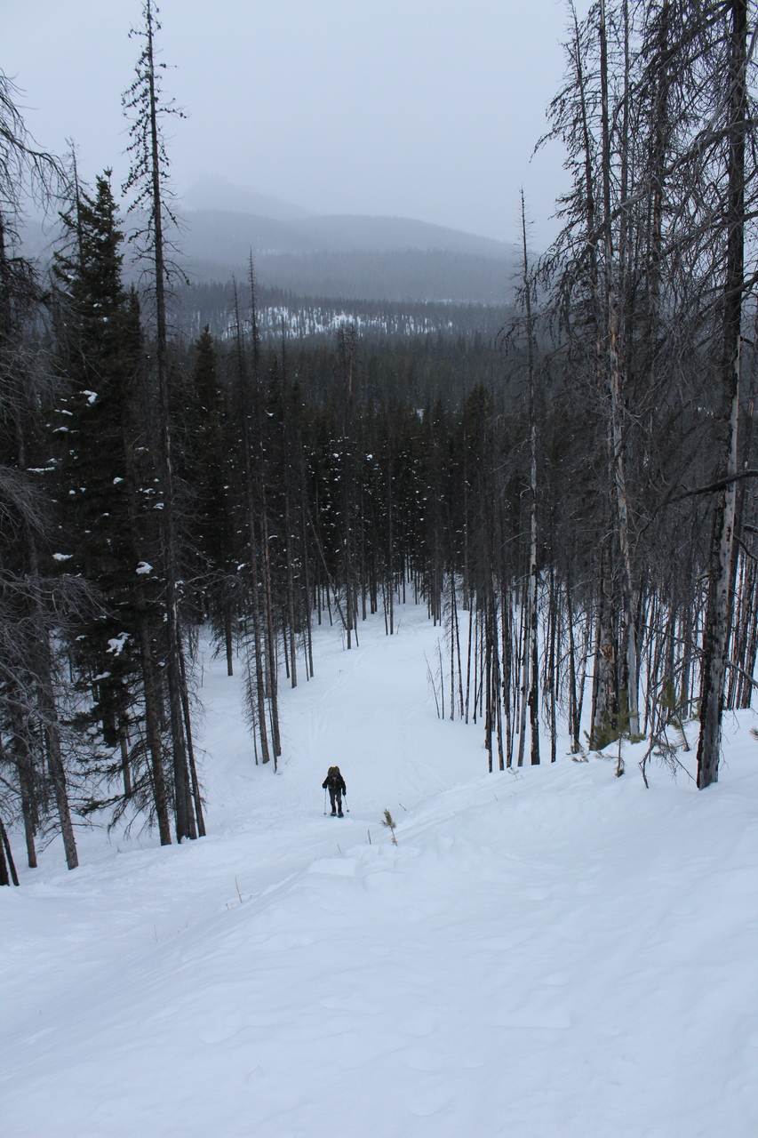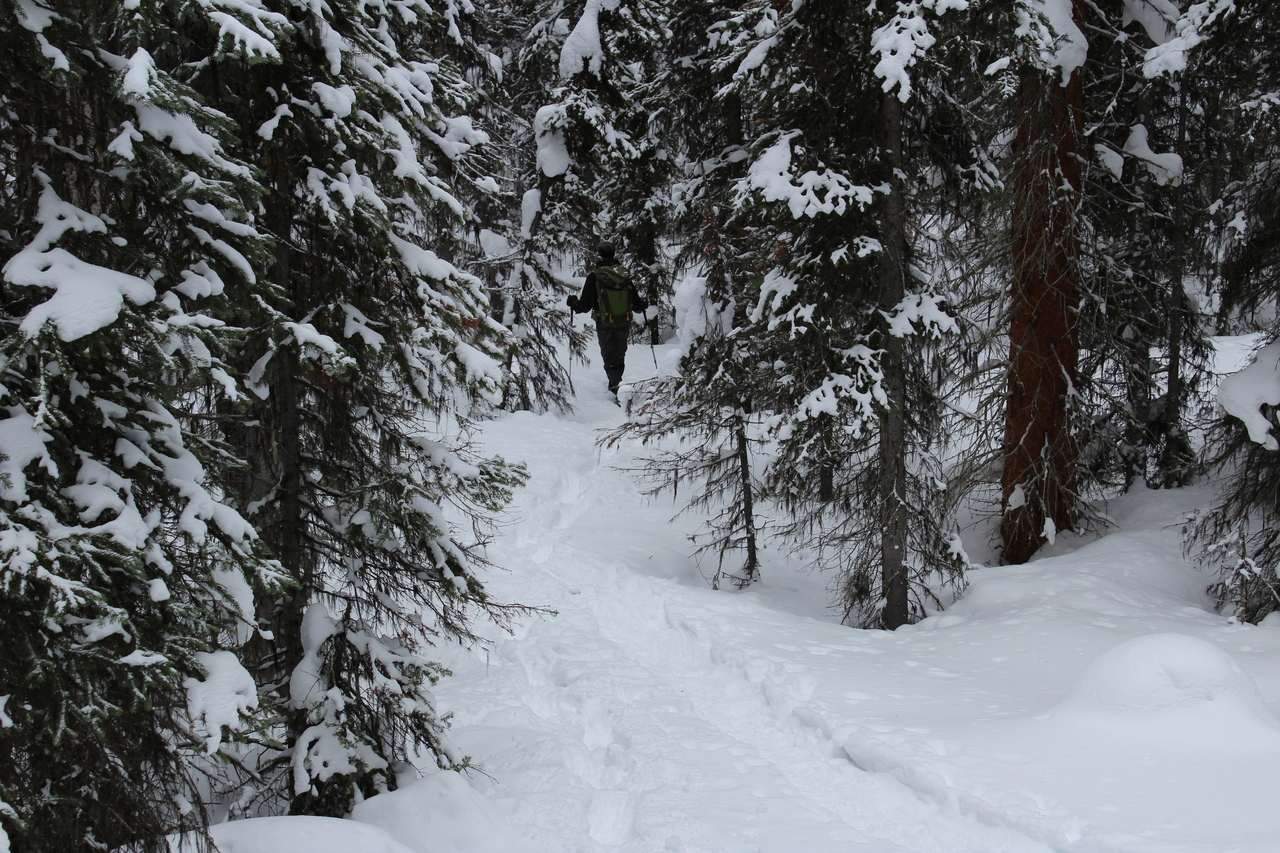 After a short, steep climb to gain the ridge, it was smooth sailing, up gentle treed slopes.