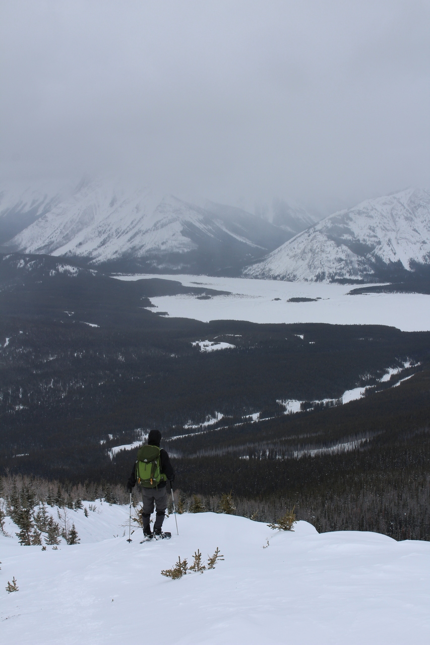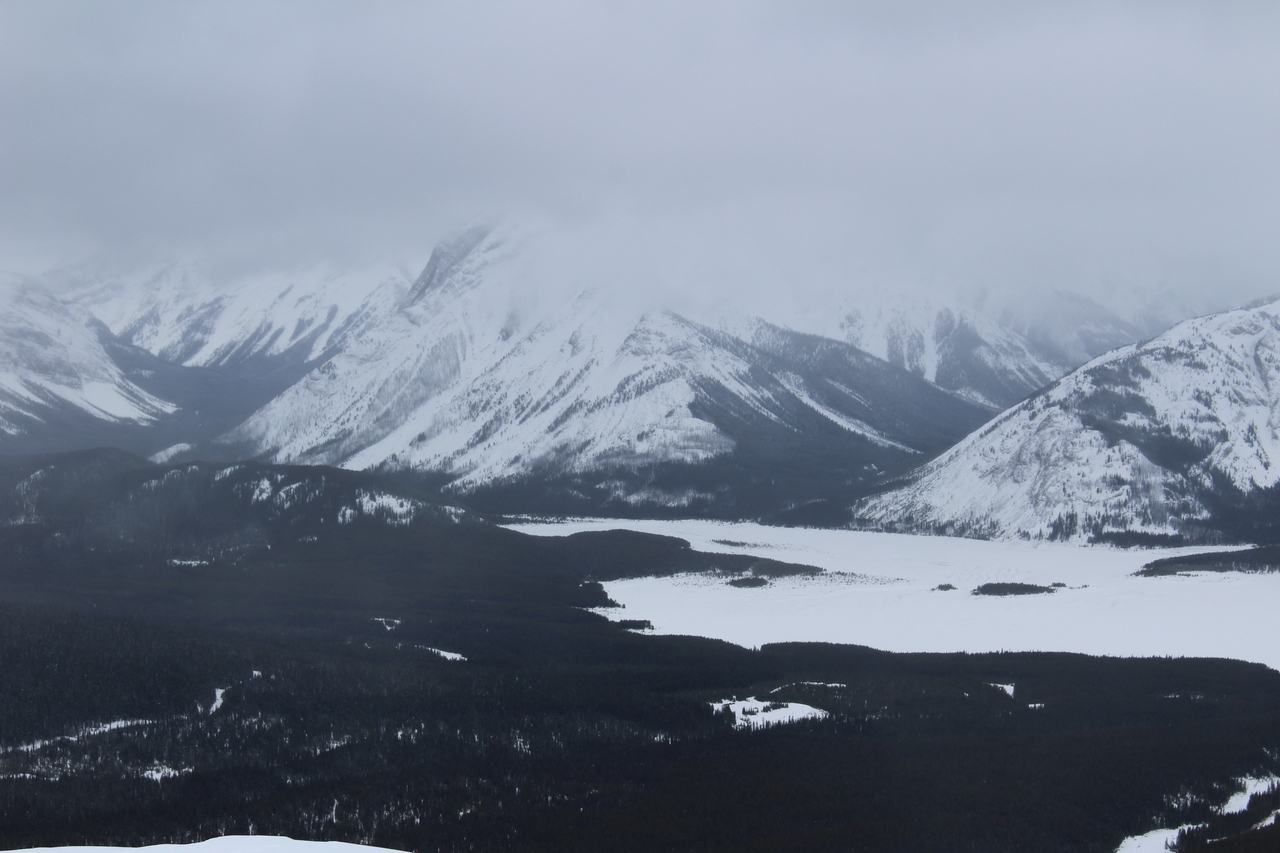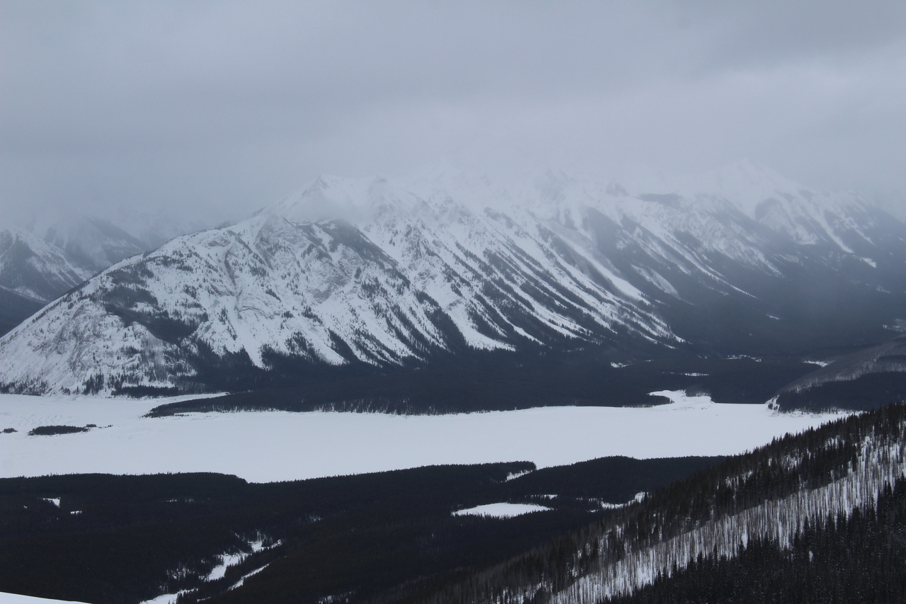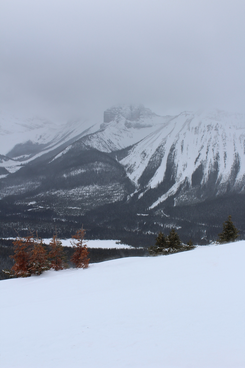 Pig's Back, another snowshoe objective, is barely visible (center). Surrounding it, rise a collection of impressive peaks, including Commonwealth Peak, Mount Birdwood, and Mount Smuts...None of which we'll be seeing today 😢.