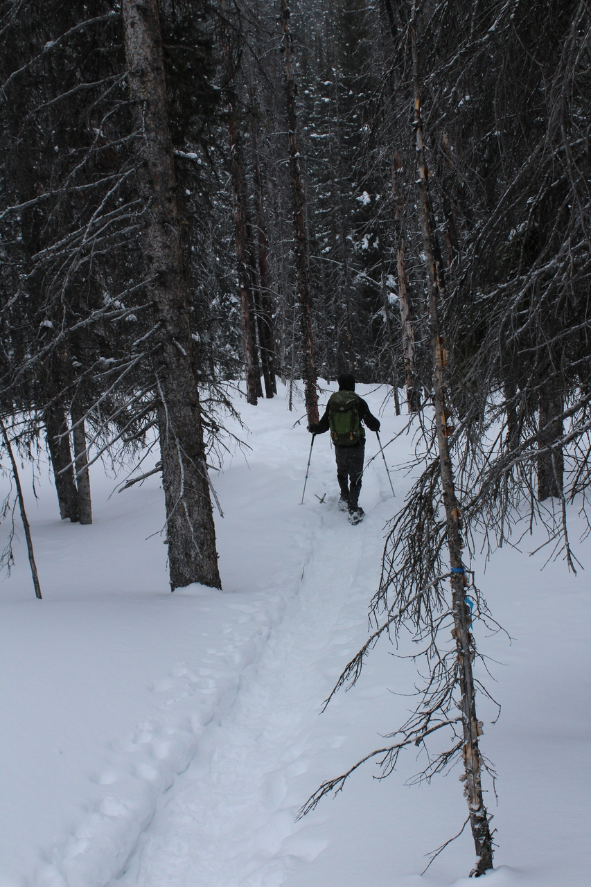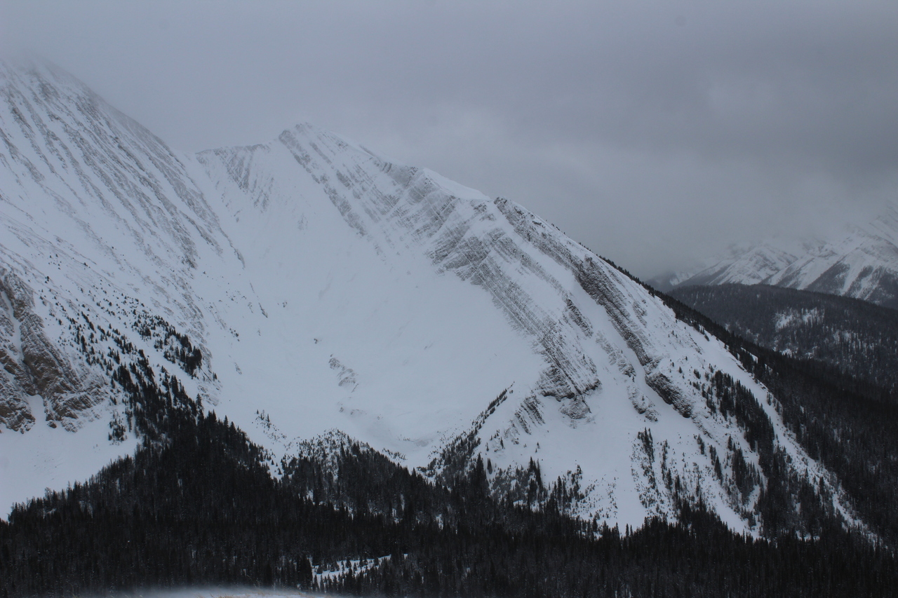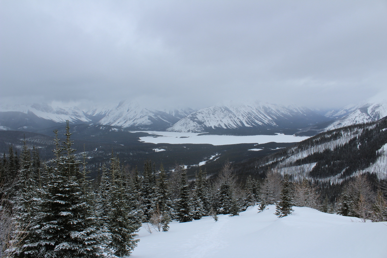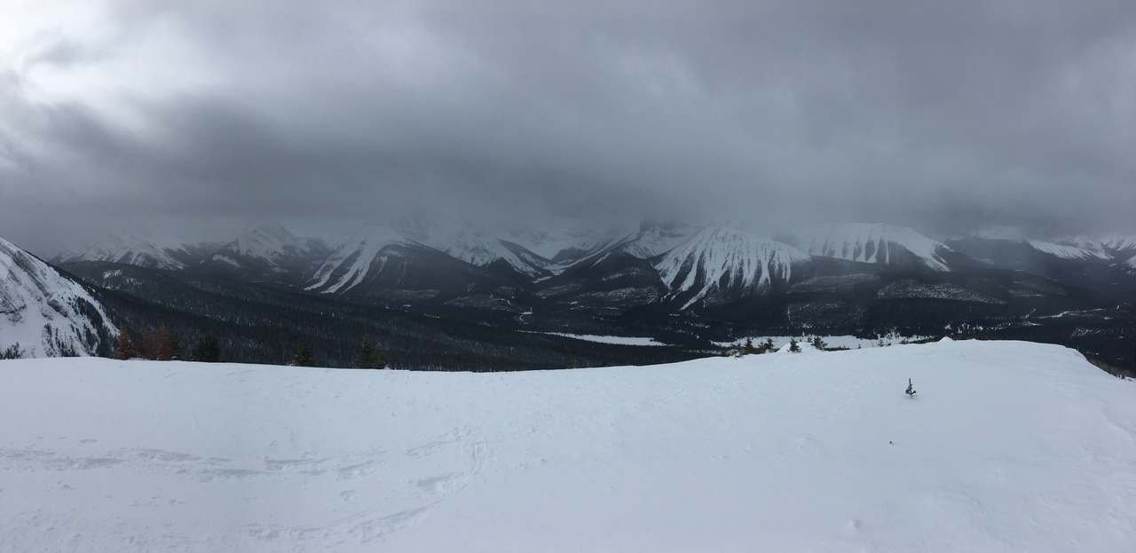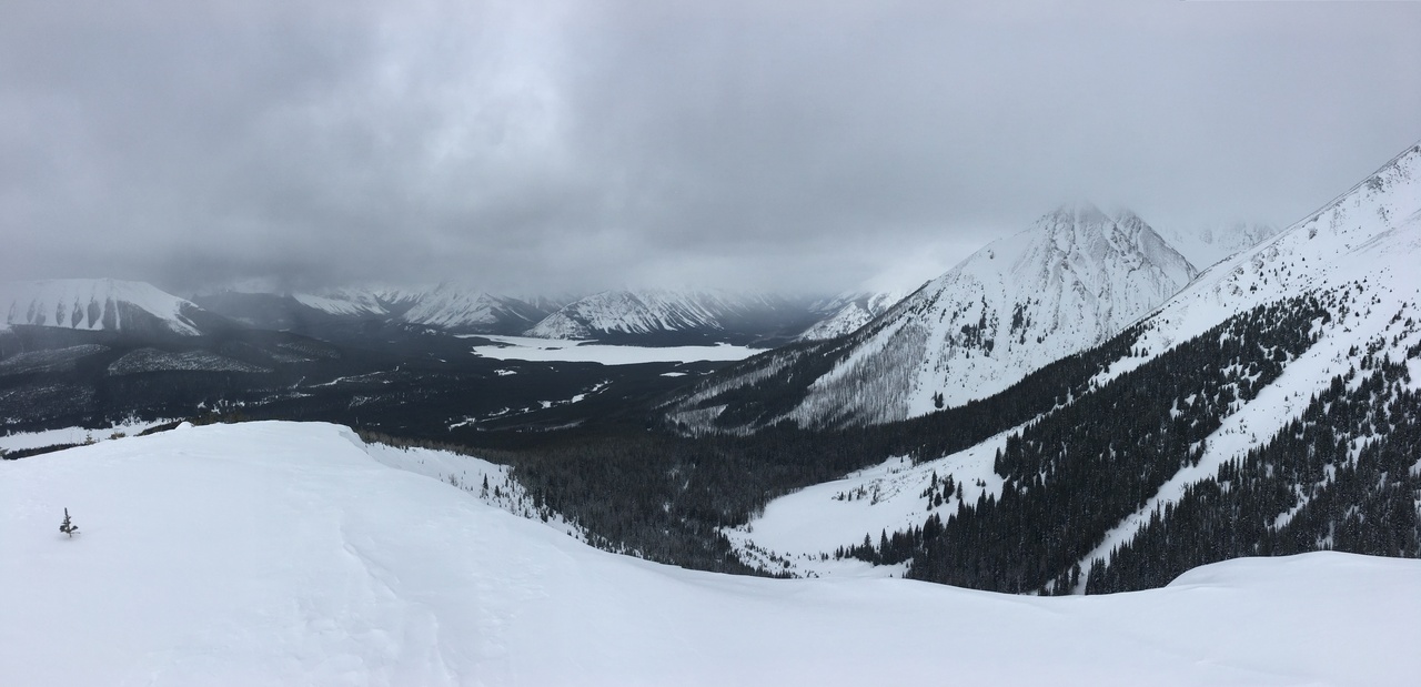 Pig's Back, another snowshoe objective, is barely visible (center). Surrounding it, rise a collection of impressive peaks, including Commonwealth Peak, Mount Birdwood, and Mount Smuts...None of which we'll be seeing today 😢.