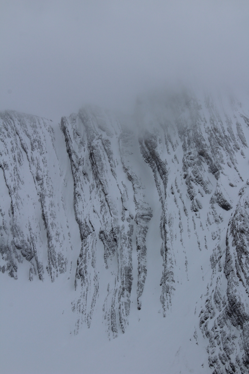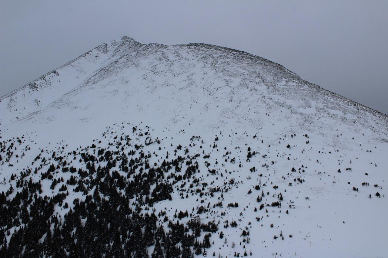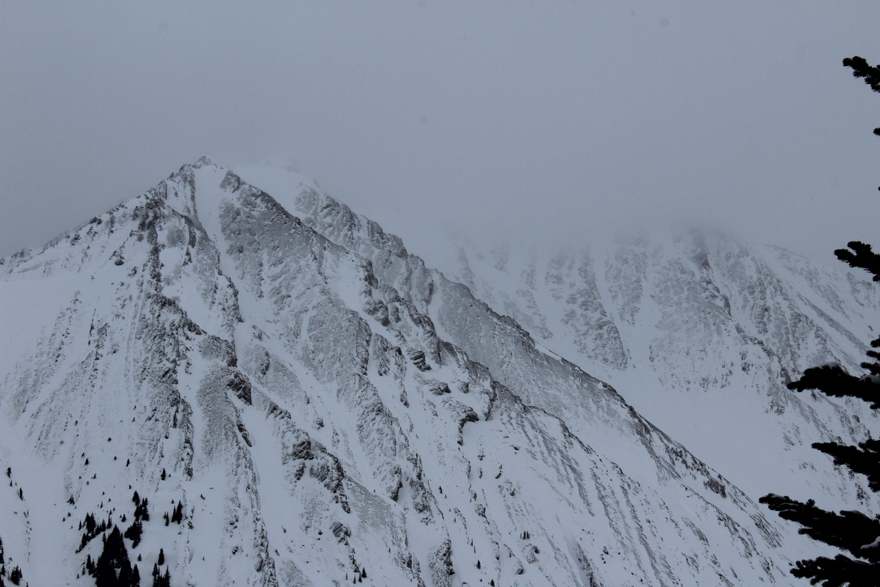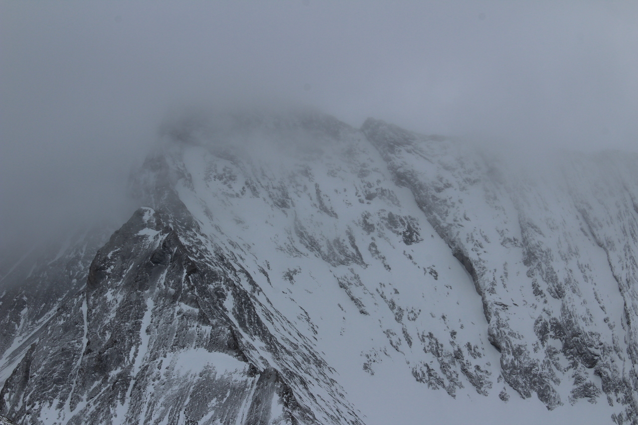 Our only clear view was looking up to the end of The Tower's west ridge! With how bare the slope looked, and it only being 10am, I would have been interested in extending this trip, and seeing how far I could get...It was obvious that my dad was in no shape for that however, so we made our way back down instead.
