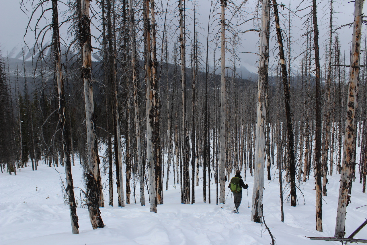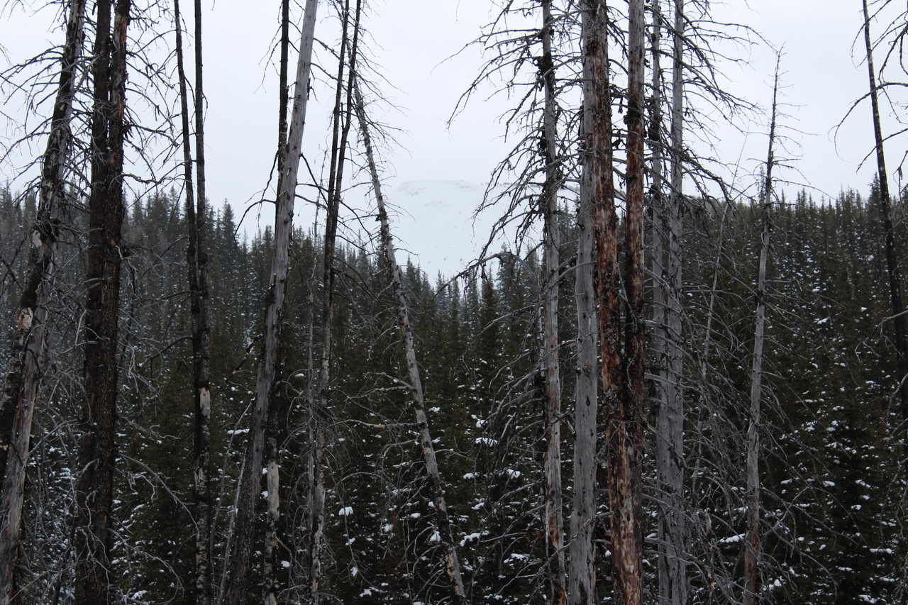 Continuing the search for soft pow, as we descend through the burnt forest, back to the highway.