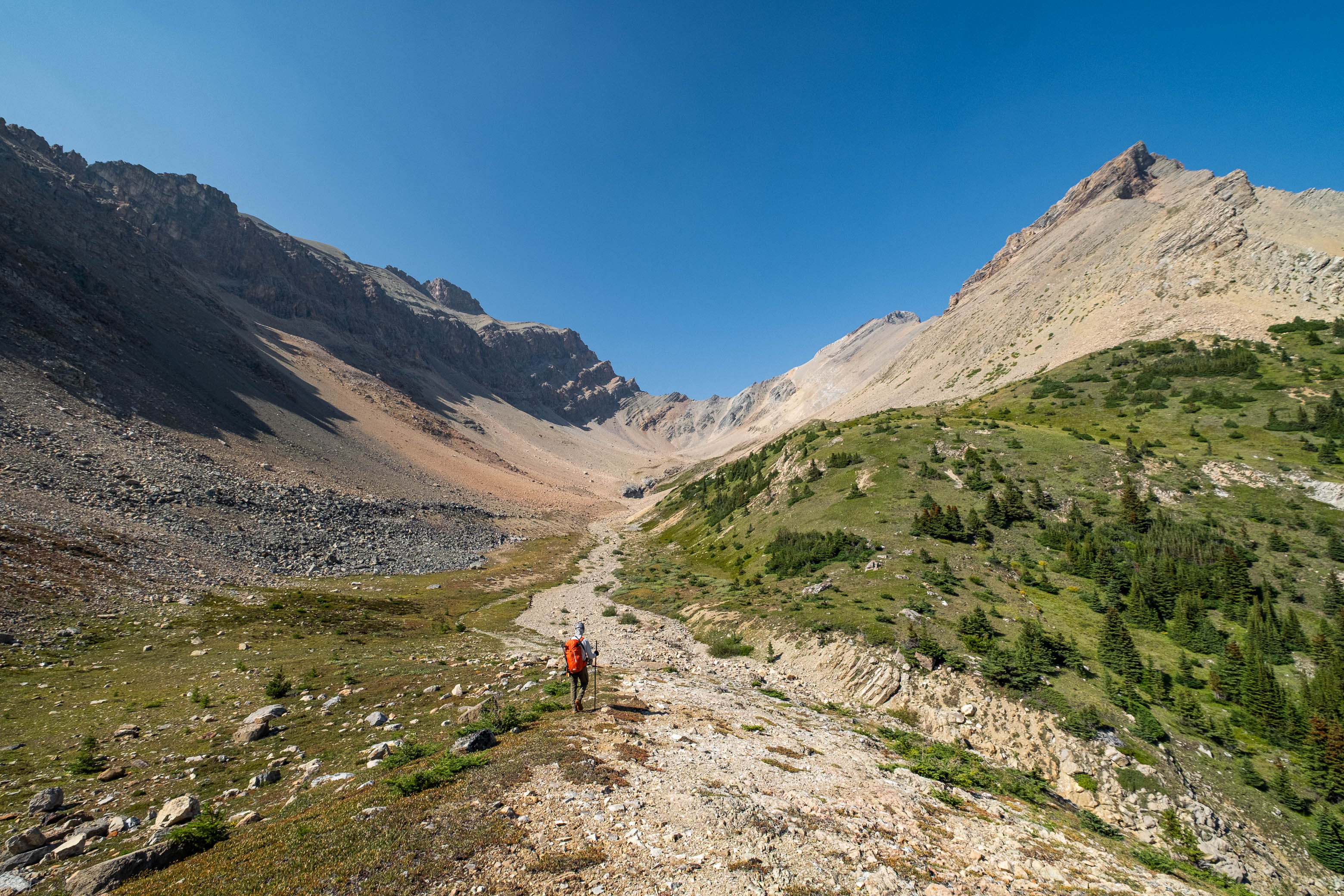 As we traversed into the upper hanging valley I was completely in awe. Siffleur Mountain came into view, still towering high above, with beautiful green alpine meadows somehow surviving amidst a harsh rocky landscape and the distinct sound of water crashing over rocks, funneling its way down to the Siffleur River, now far below. These are the kind of places I dream about visiting!