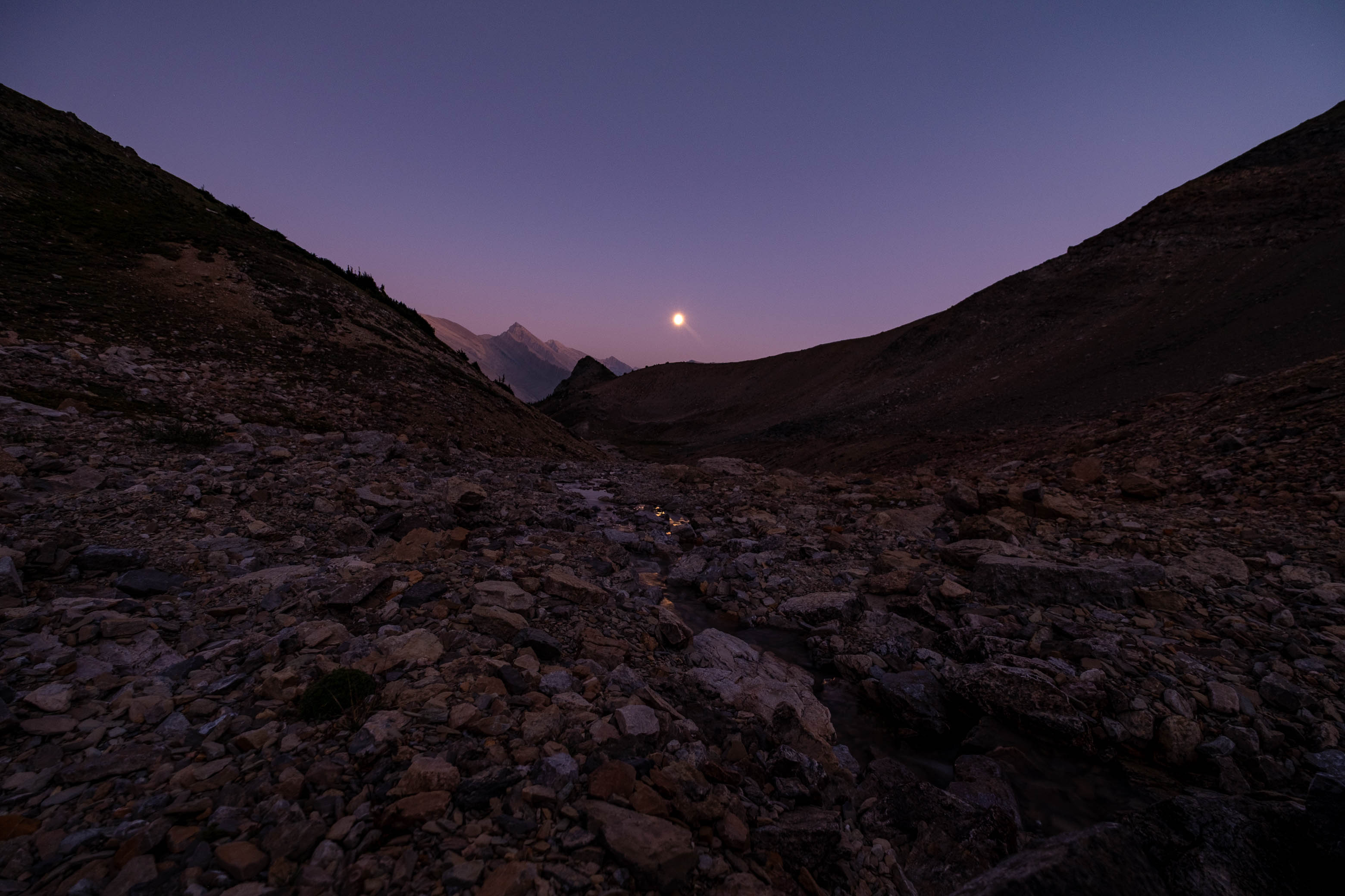 I don't think I'll ever tire of watching the stars come out on a calm, clear night deep in the backcountry. Even with a bright, full moon, the stars put on quite a show, and as I lay there, gazing up at the millions of tiny bright lights in the sky, I was completely at peace with the fact that we hadn't made it back down to the Siffleur River that evening. What an incredible place to spend the night.