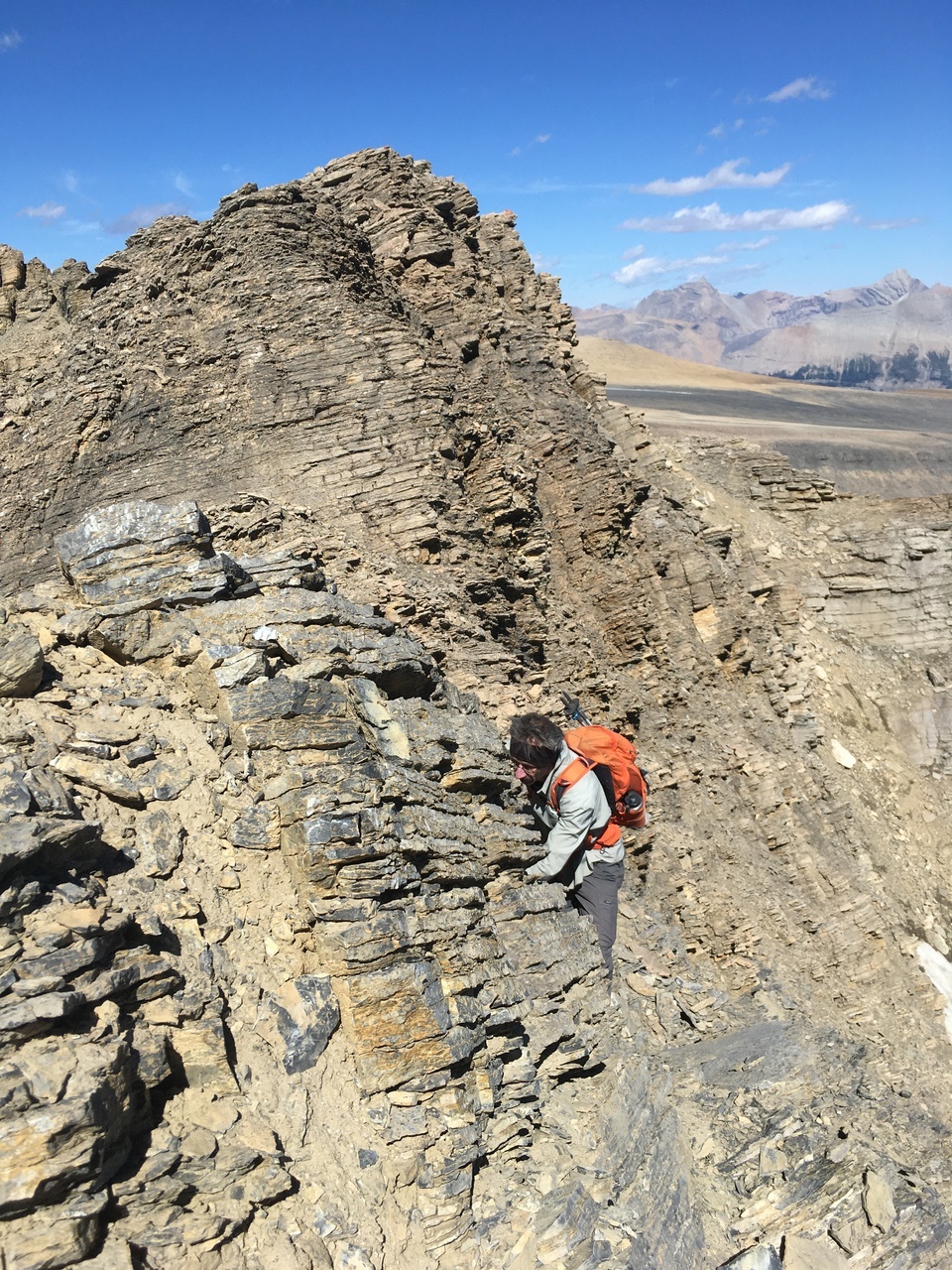 We found a way up...Now we just gotta find a way down this thing! We chose to try the gully that leads down from the low-point in the ridge just ahead...