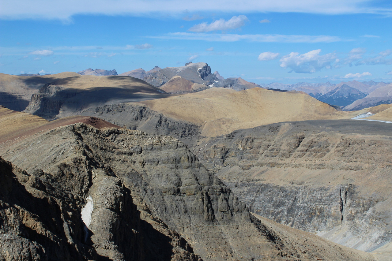 Mount Balfour rises center, with Olive and Gordon to the right. In the foreground, we have Jimmy Jr. peeking out to the left of an unnamed peak (center-right), with Jimmy Simpson rising to the right.