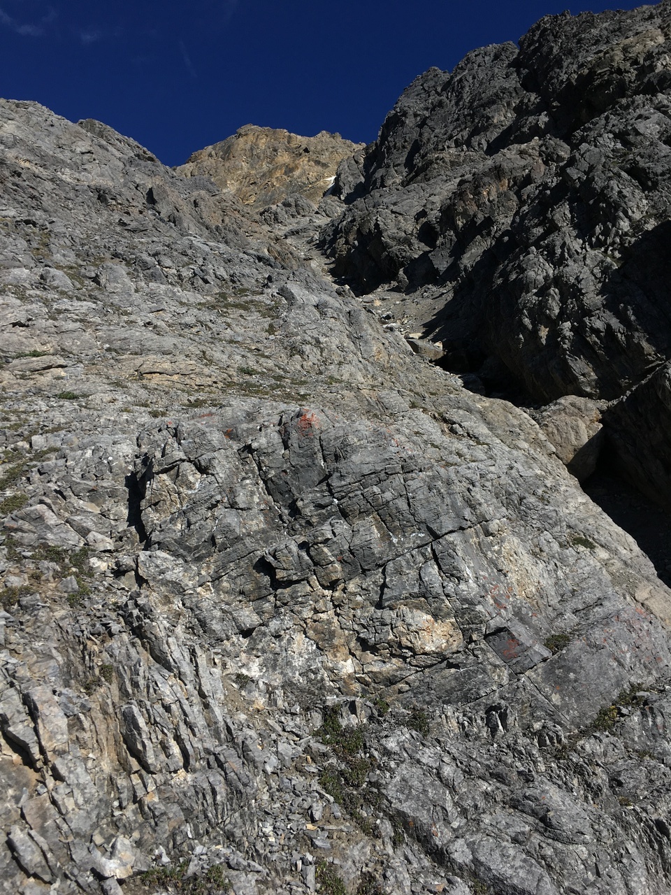 Those slabs just below Silverhorn's summit look pretty steep from this angle!...They prove to be easy though :)