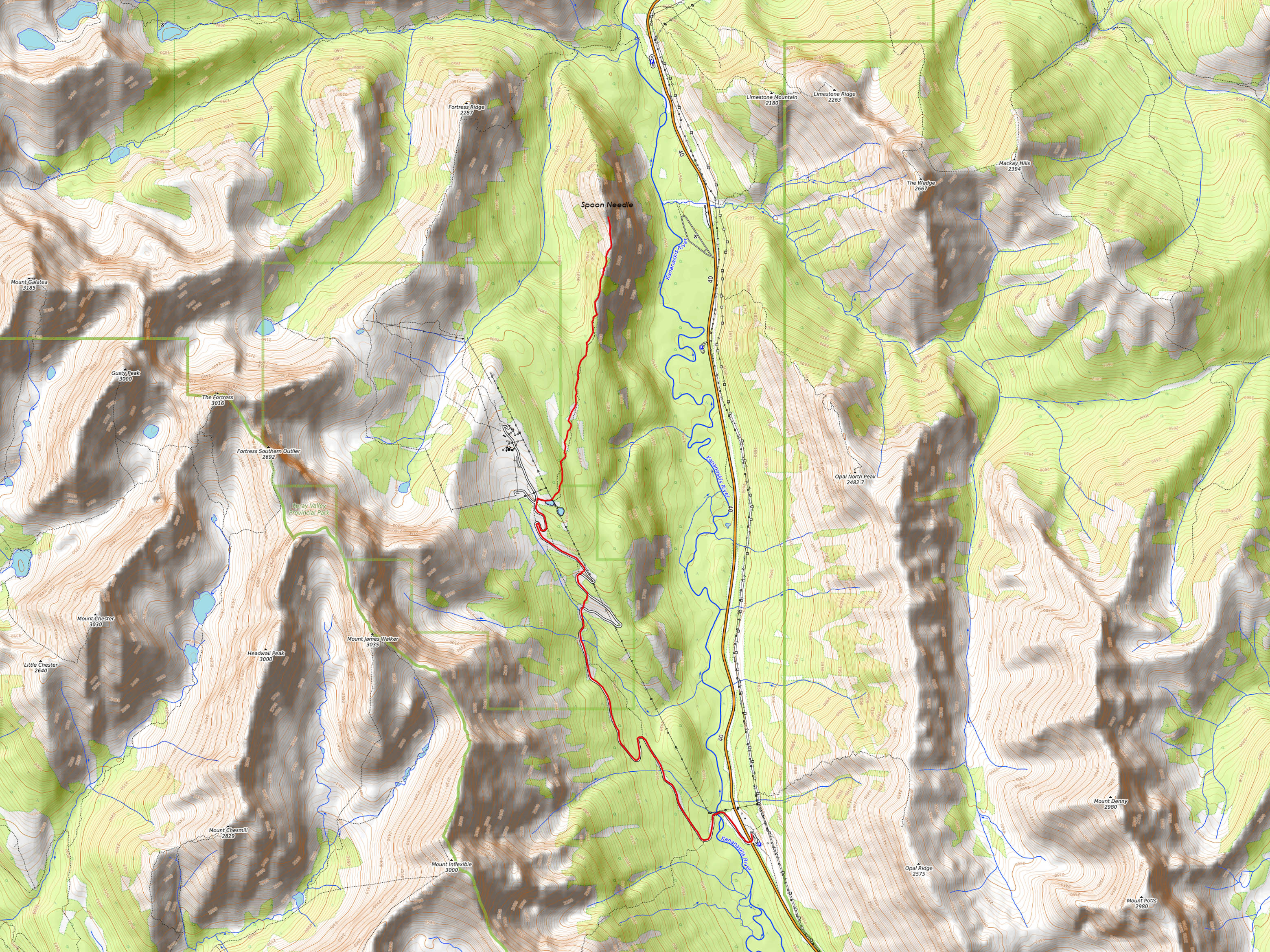 Although unofficial, the name "Spoon Needle" has got to be one of the most fitting names given to a mountain IMO! I remember the first time I noticed this peak as we drove north, down Highway 40, on our way out of Kananaskis a couple years ago. My immediate reaction was something like, "WOAH! What is that?!!". Sharply piercing up towards the sky - like a "needle" - it may have been smaller than many of the surrounding peaks, but boy was it impressive! As we continued down the highway, however, it briefly drifted out of view, and I got distracted with other things...By the time I tried to look for the "needle" again, it had vanished! Rising directly above us, where I was certain that the needle I saw just moments ago should have been, was a broad, oval face - like the back of a spoon - showing no resemblance to a needle whatsoever! The mountain had completely transformed! Intrigued, I was quick to look for it on a map, and was honestly a little bit disappointed when I found it to be unnamed. It wasn't until a few months later, while perusing the web, that I came across Vern's trip report of a peak he referred to as "Spoon Needle", and my mind immediately jumped to that "transforming" peak I saw not too long ago! After reading the report, my suspicions were confirmed, and in learning that this peak was indeed "scramble-able", my interest was sparked all over again! Even so, it would still be a long time before I set off to bag this one. The lack of bridges over the Kananaskis River necessitates a long approach, starting all the way down at the Fortress Road, unless, of course, you're brave enough to wade through those frigid waters...Personally, I liked Vern and Steven's idea of skiing the long approach - allowing for a speedy descent of the final 6.5 km down the Fortress Road on return - but since my ski boots don't have even close to the mobility that I'd like, I wasn't sure I wanted to be traversing an exposed, rocky ridge in them, and because I wasn't ready to be dumping money on a new pair of touring boots, Spoon Needle was once again (sort of) forgotten...Until this past week! Three days before my dad and I were heading off for the mountains, Carlos (who we met scrambling both Temple and Eiffel the same day as us) posted about a successful snowshoe ascent via the Fortress Road, along with a couple videos of some absolutely gnarly-looking trail-breaking! Not wanting Carlos' hard work to go to waste 😉, I was quick to throw my ski plans aside (who knows when I'll get new boots anyways), and jumped on a very rare opportunity, not having to break new trail on this infrequently visited peak!