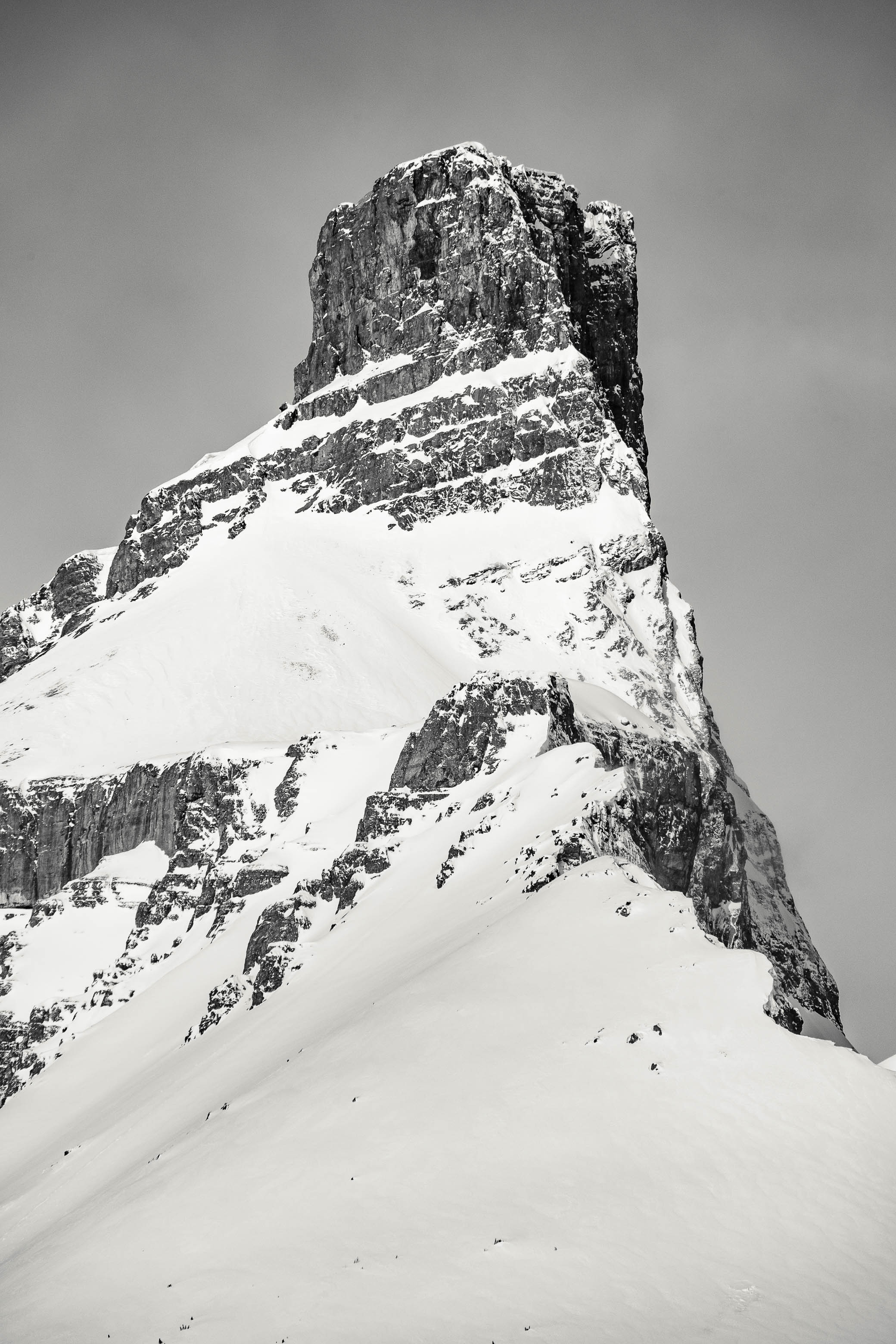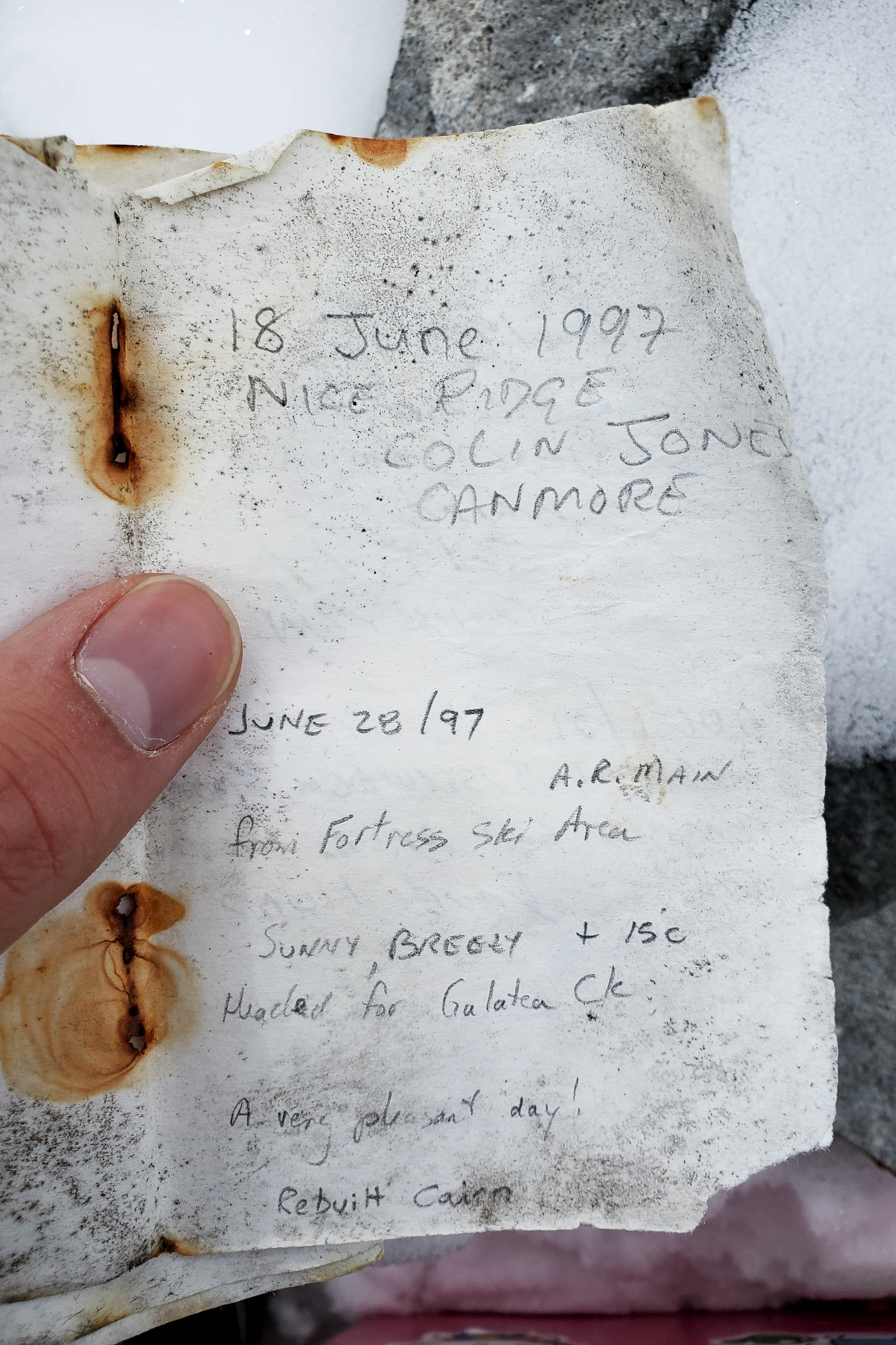Unfortunately the sky completely clouded over by the time we stepped foot on the summit, sucking all the contrast out of our views, but even this couldn't snuf out my stoke to finally stand up here! It was really neat to look down the shark fin ridge to the north, and Fortress' unique form was impossible to miss, standing out from the pack to the west! A cool breeze quickly had us chilled as we sat on the summit, however, and after taking a few pictures and signing the register, we started back the long way we came.