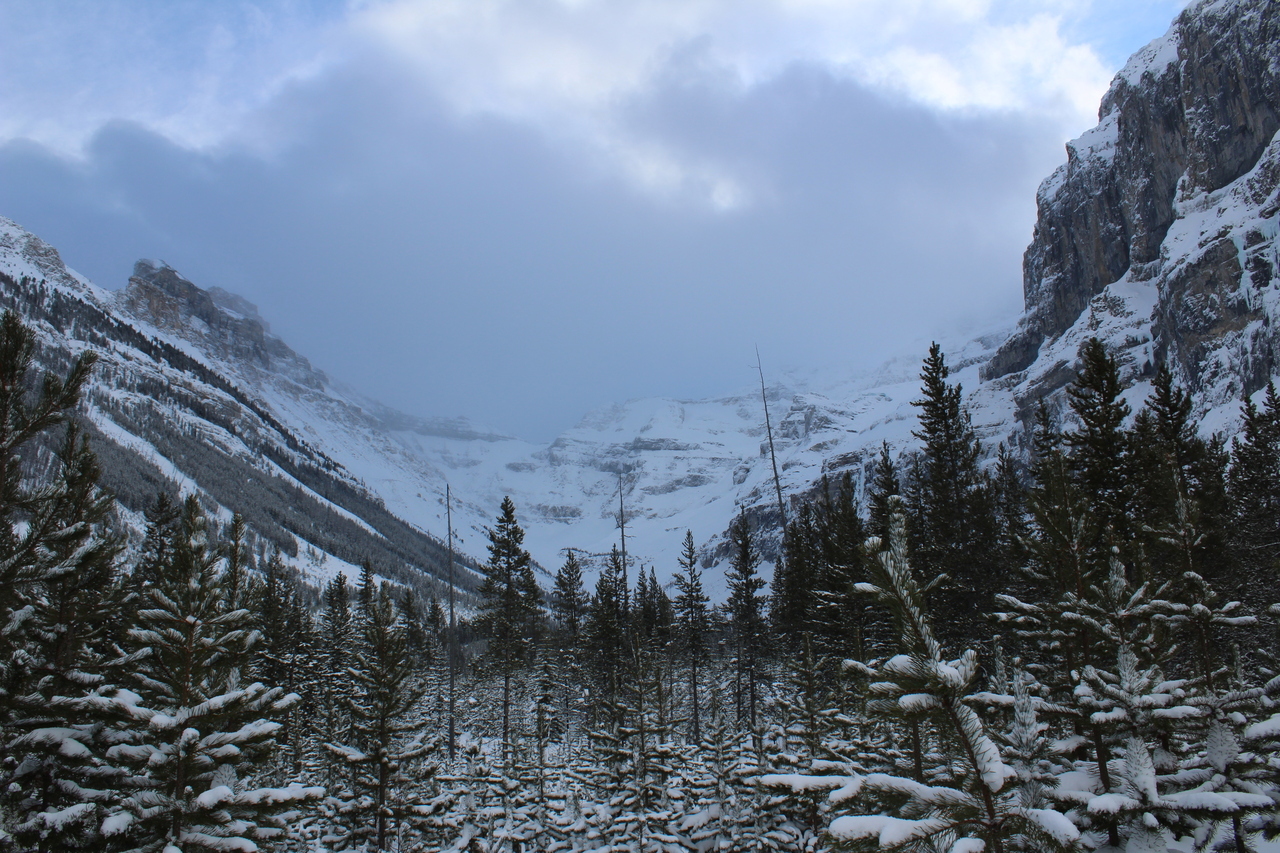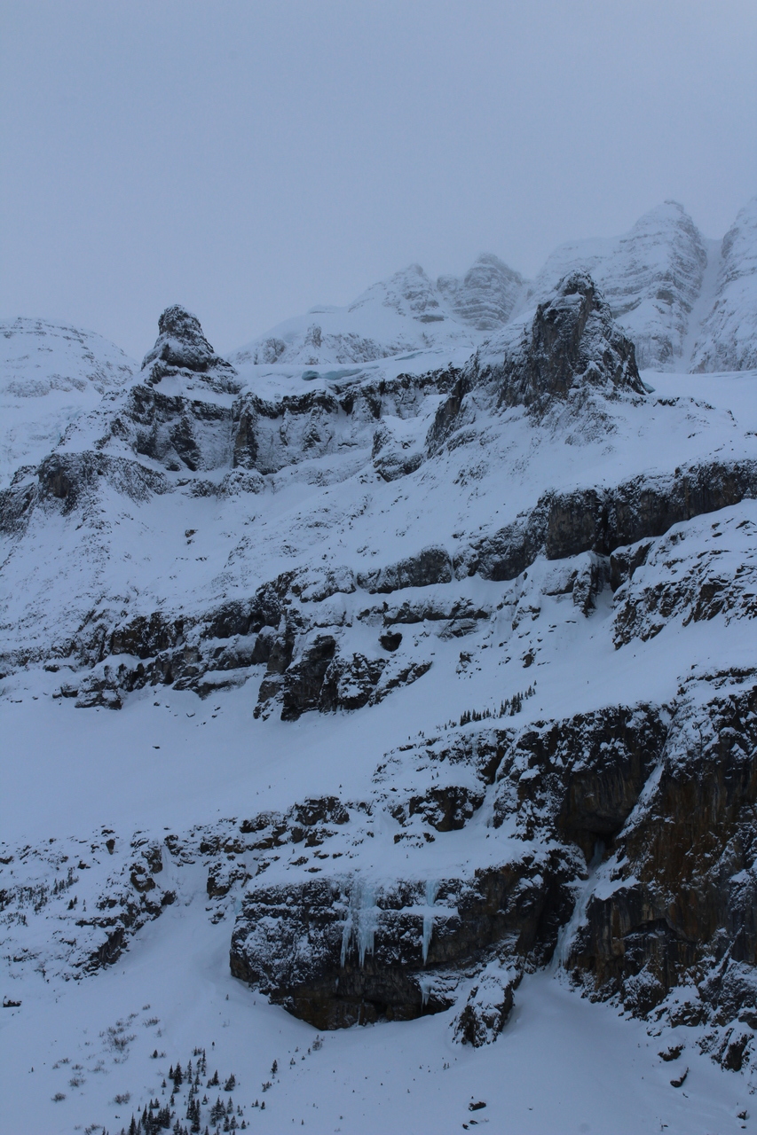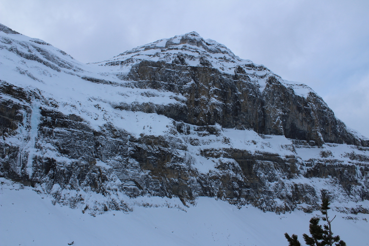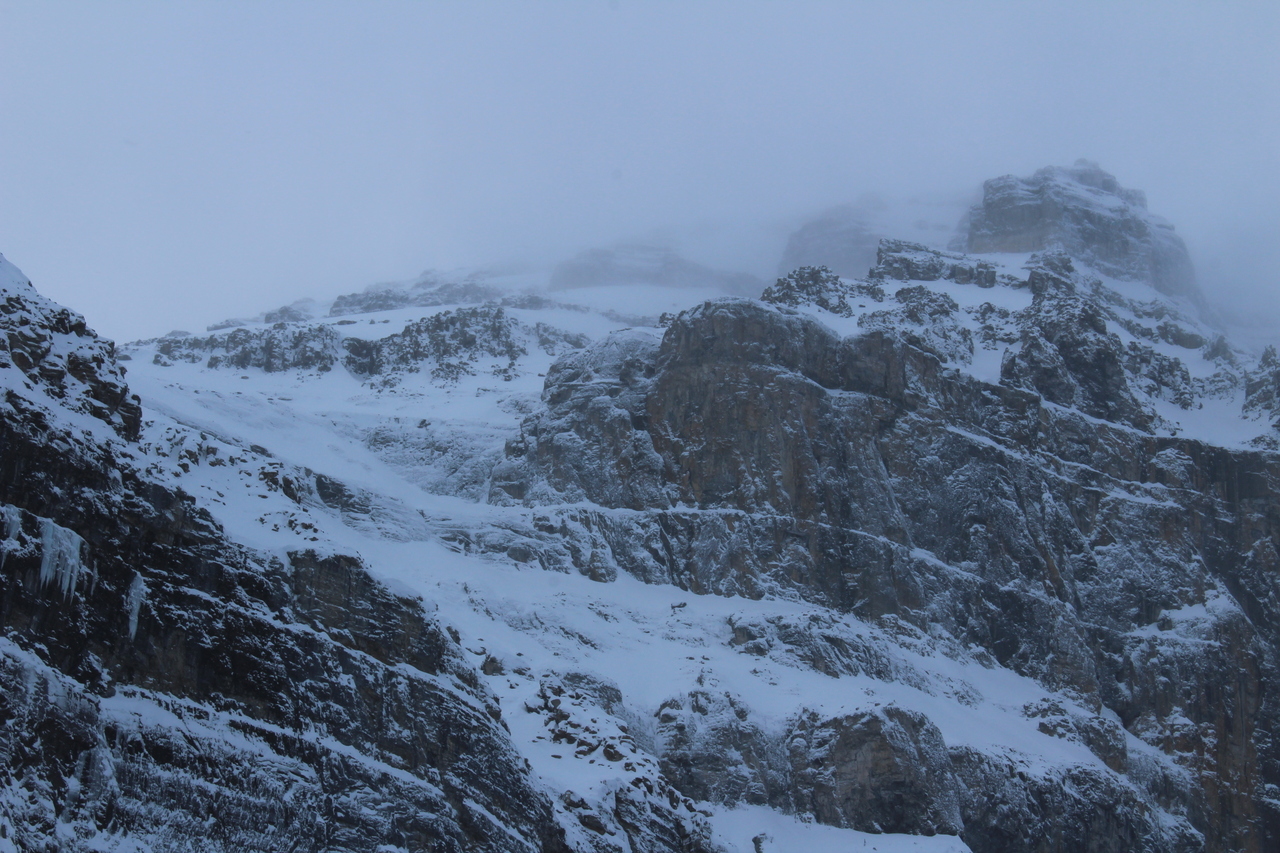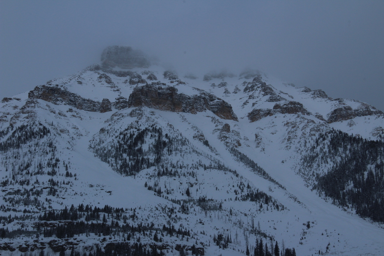 The long wall of Castle Mountain, obscured by low clouds! Unlike many approaches through dense forest, there's never a shortage of views on this one!