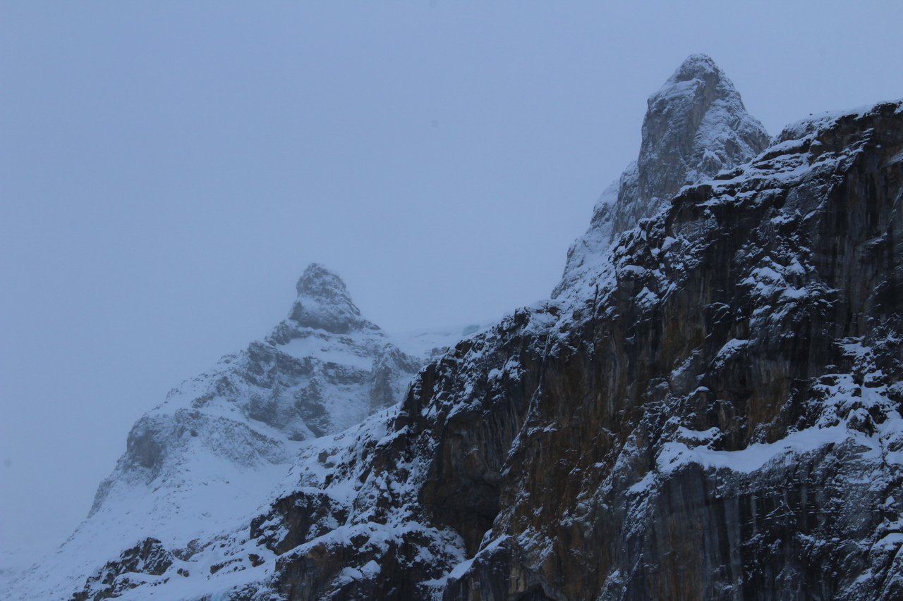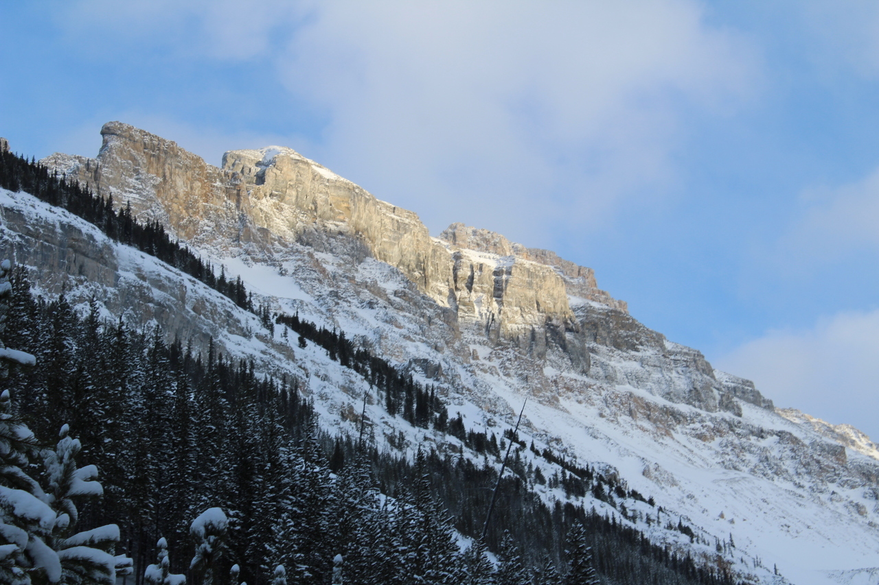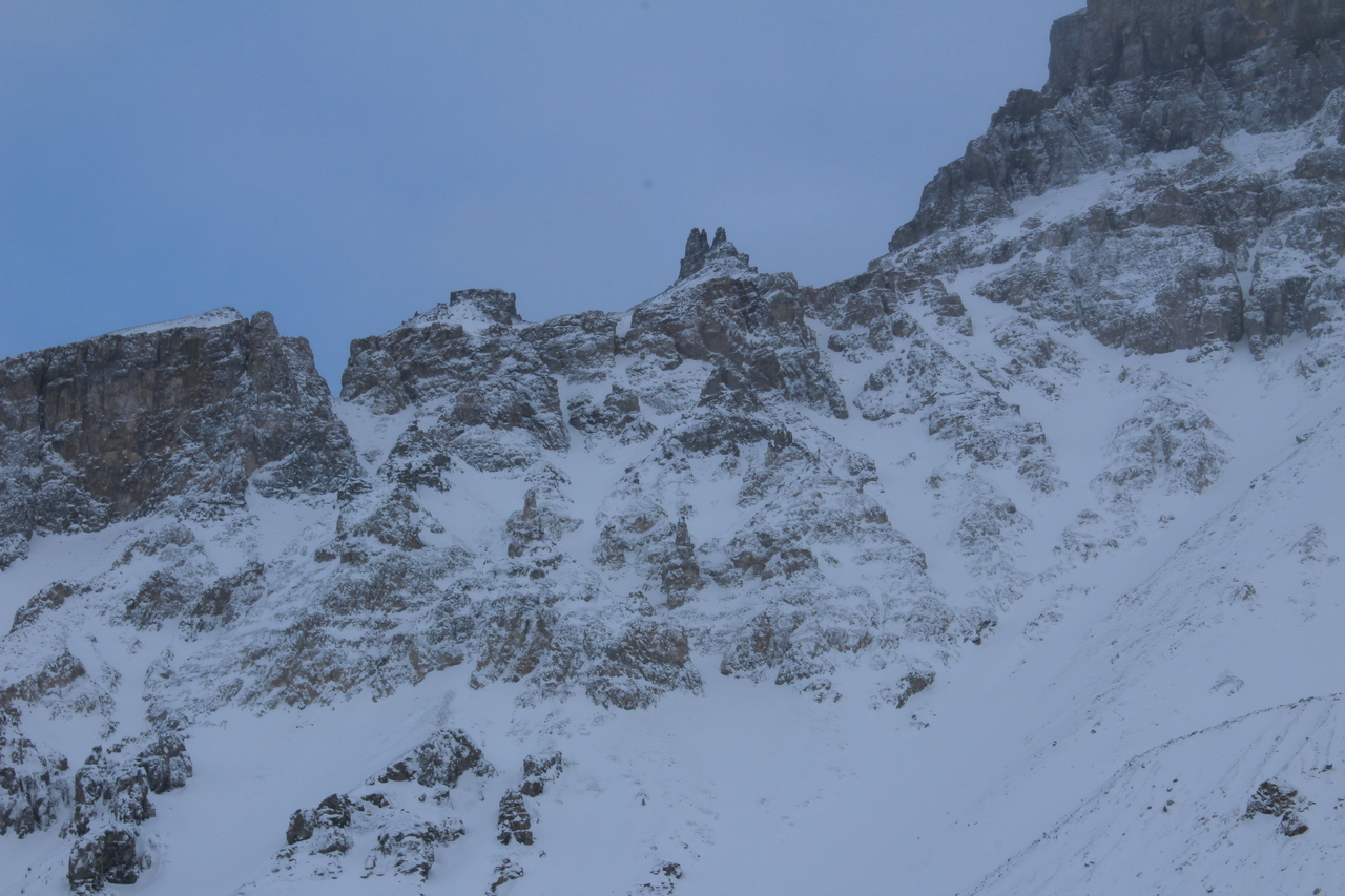 Lightly dusted brown cliffs above!