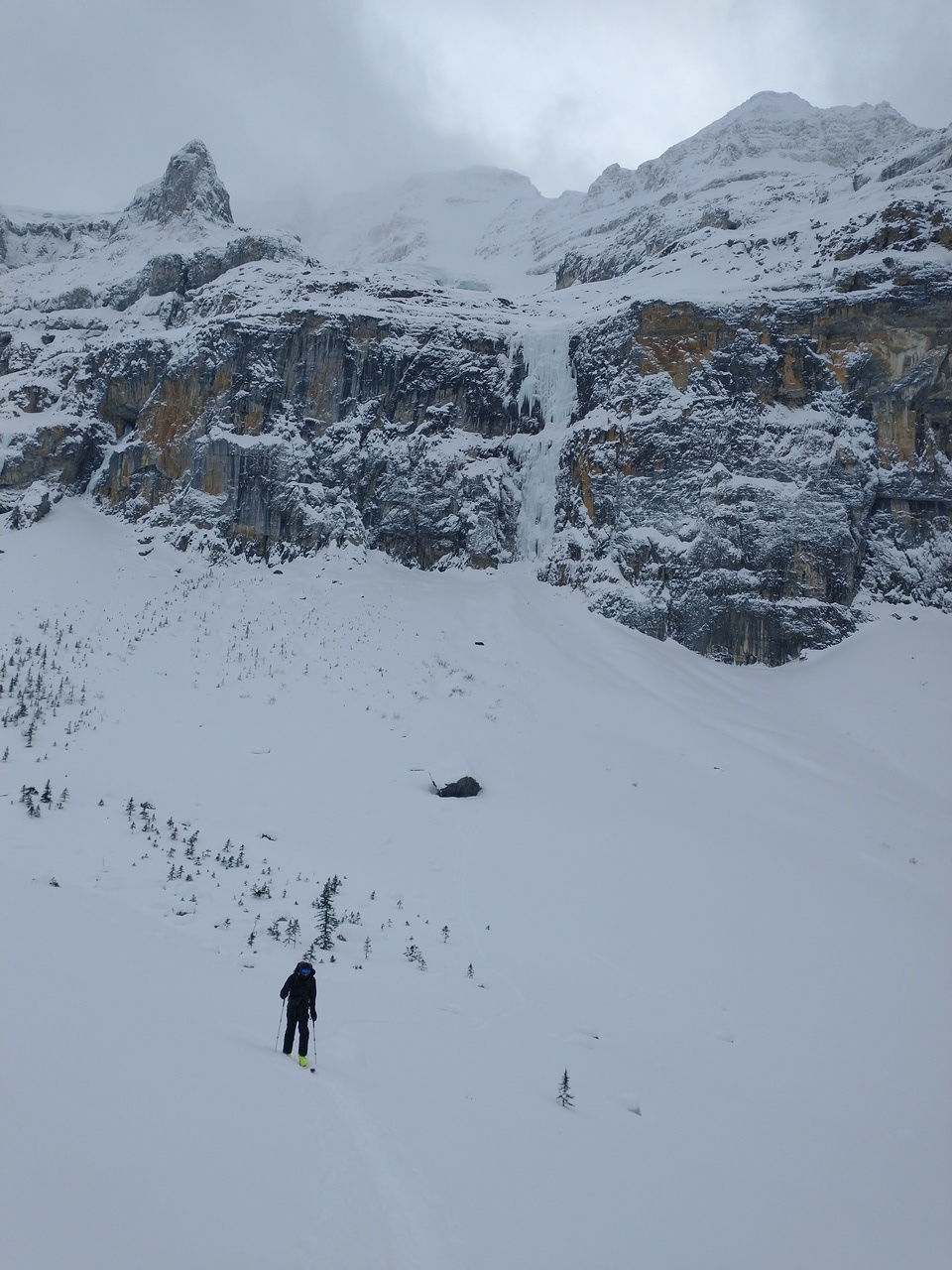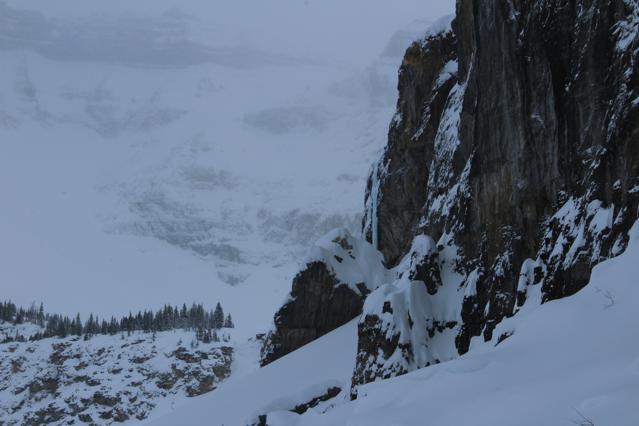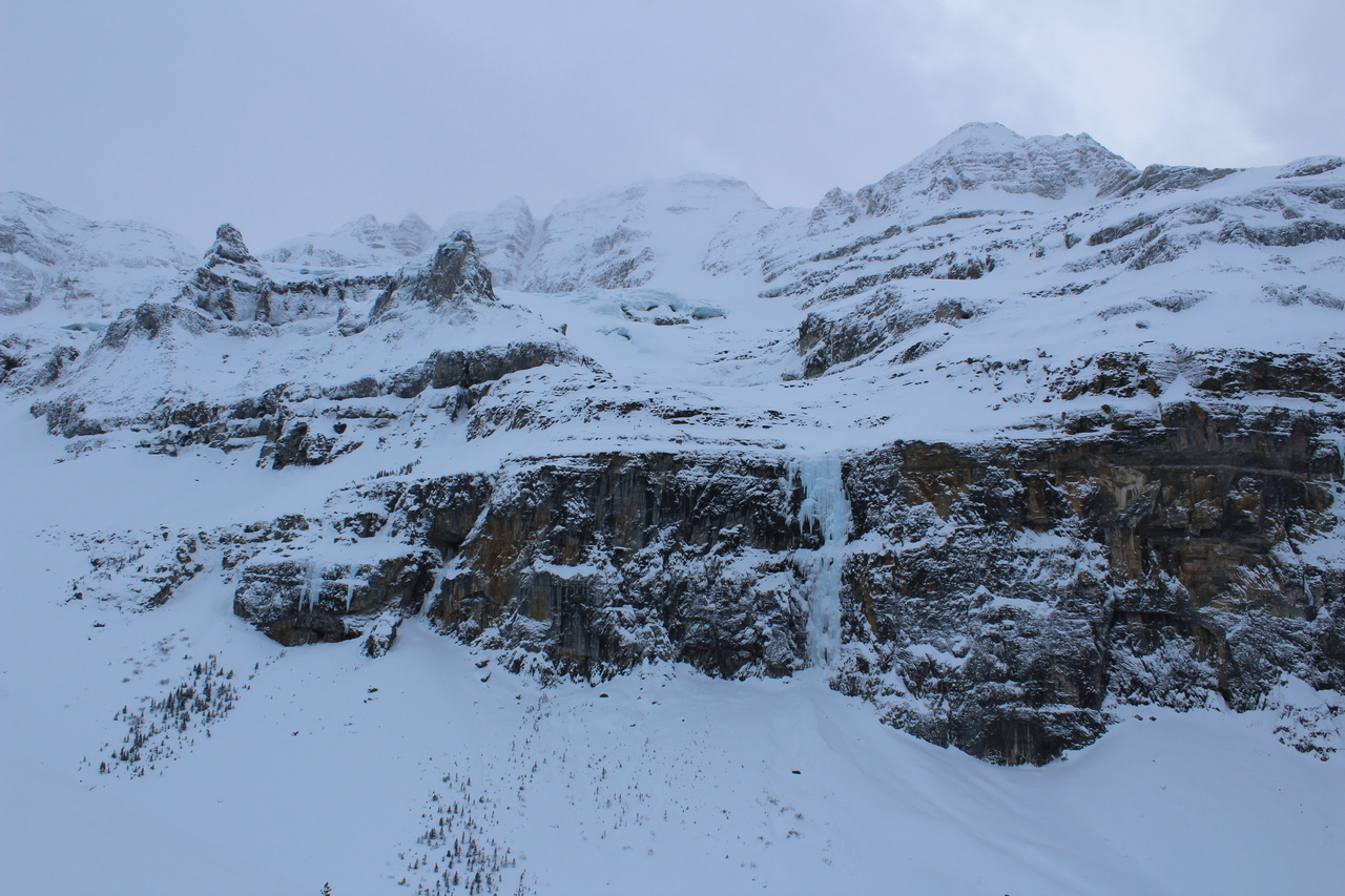 After considering what we wanted to do, we saw some tracks coming down from the frozen waterfall to our right (known for the Nemesis ice climb), and as it looked low avalanche risk, we decided to give it a go!