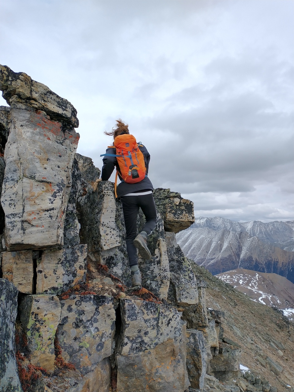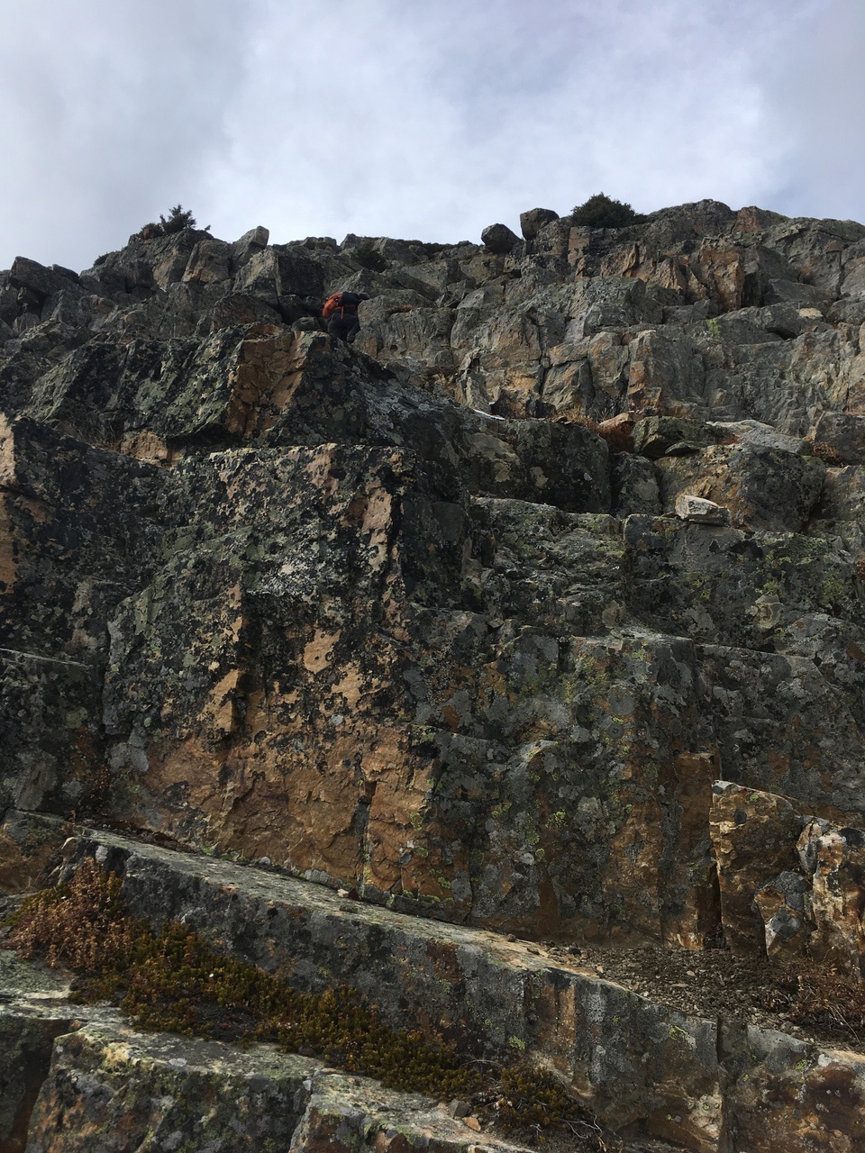 After the grass/dirt/scree slope, we were granted with a bit more solid rock scrambling before the summit!