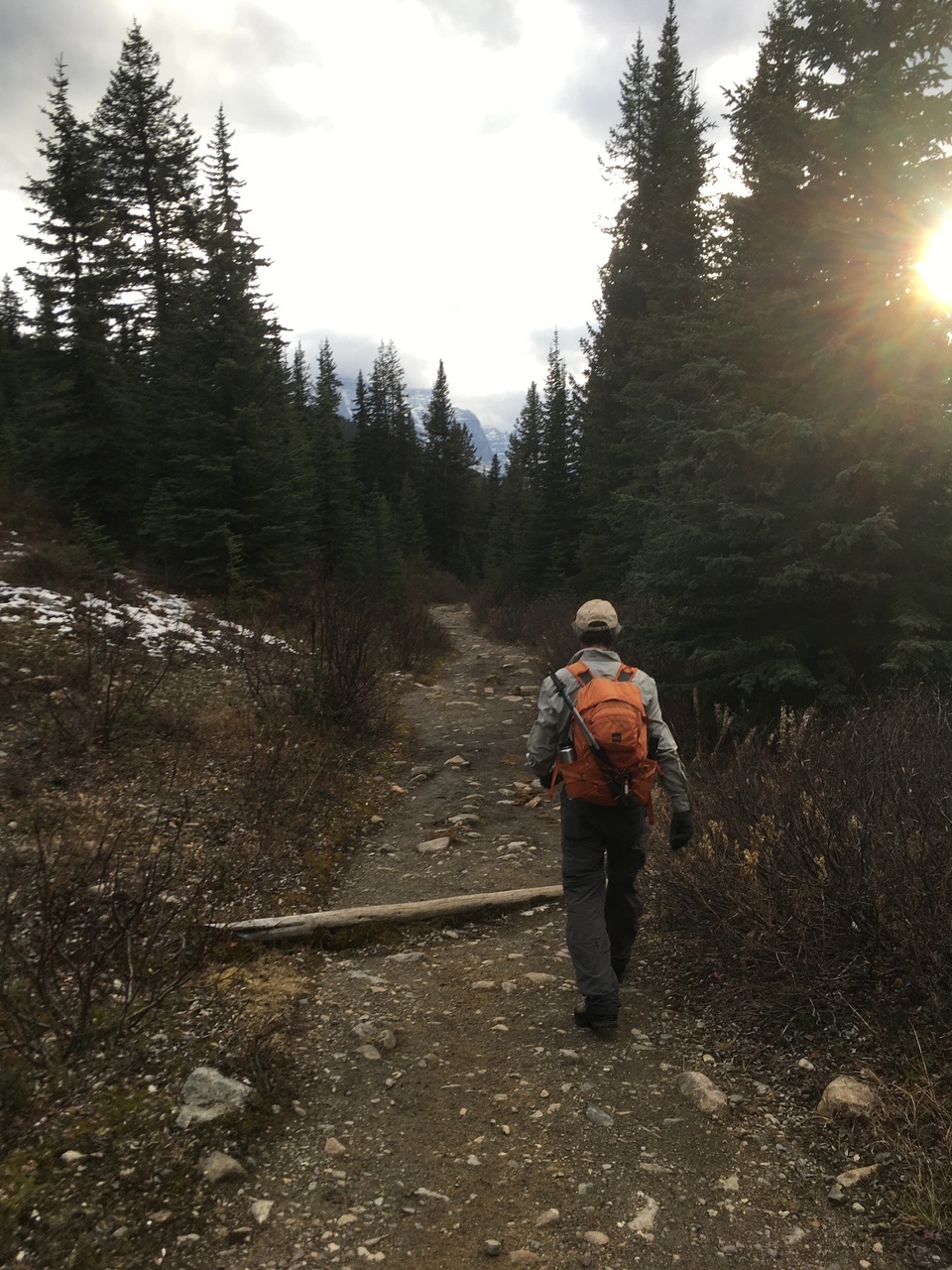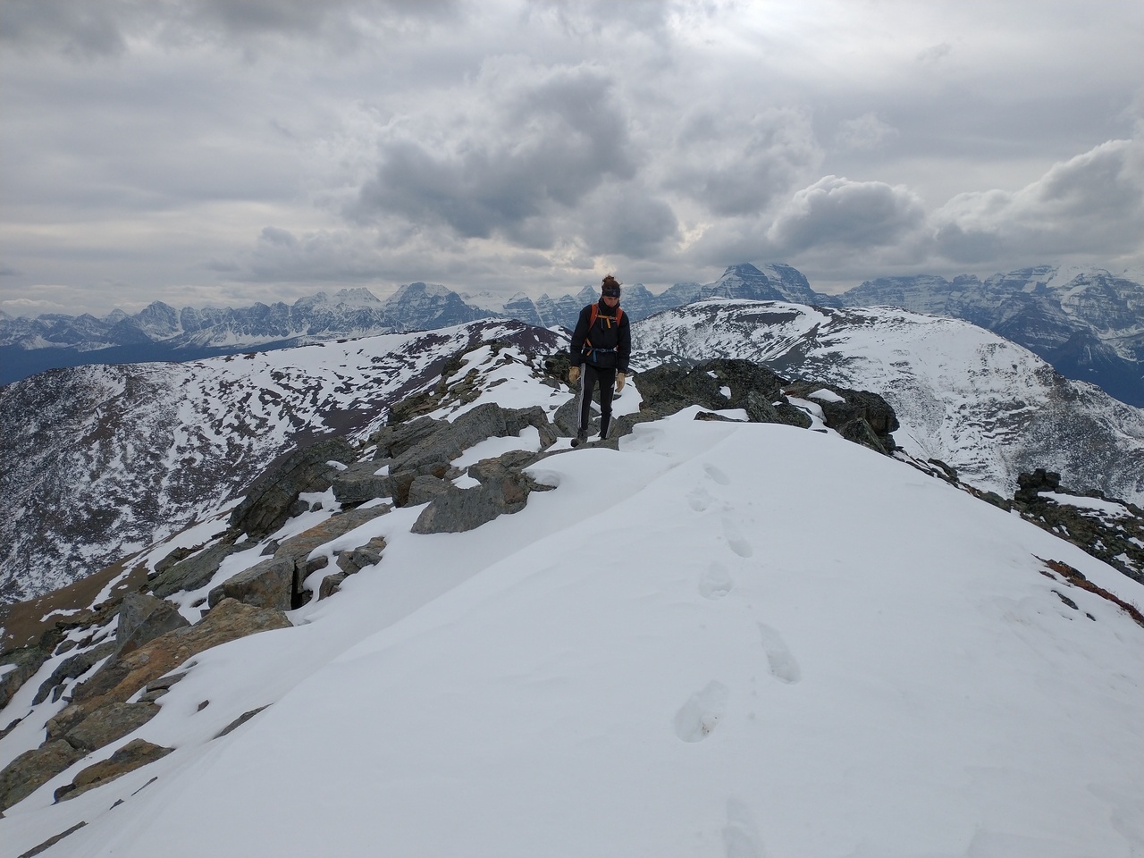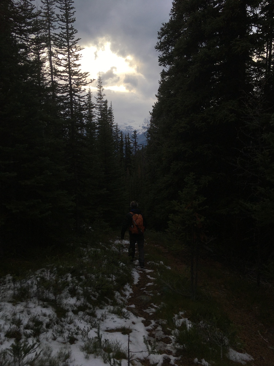 We followed the narrow trail down the rest of the valley, and soon found ourselves on the well travelled trail to Skoki backcountry camping. We turned left on this trail, and followed it back to the ski out. Now just a painful 4km trek down the access road after an extremely enjoyable day, traversing from Lipalian, to Purple Mound, and finally Unity Peak!
