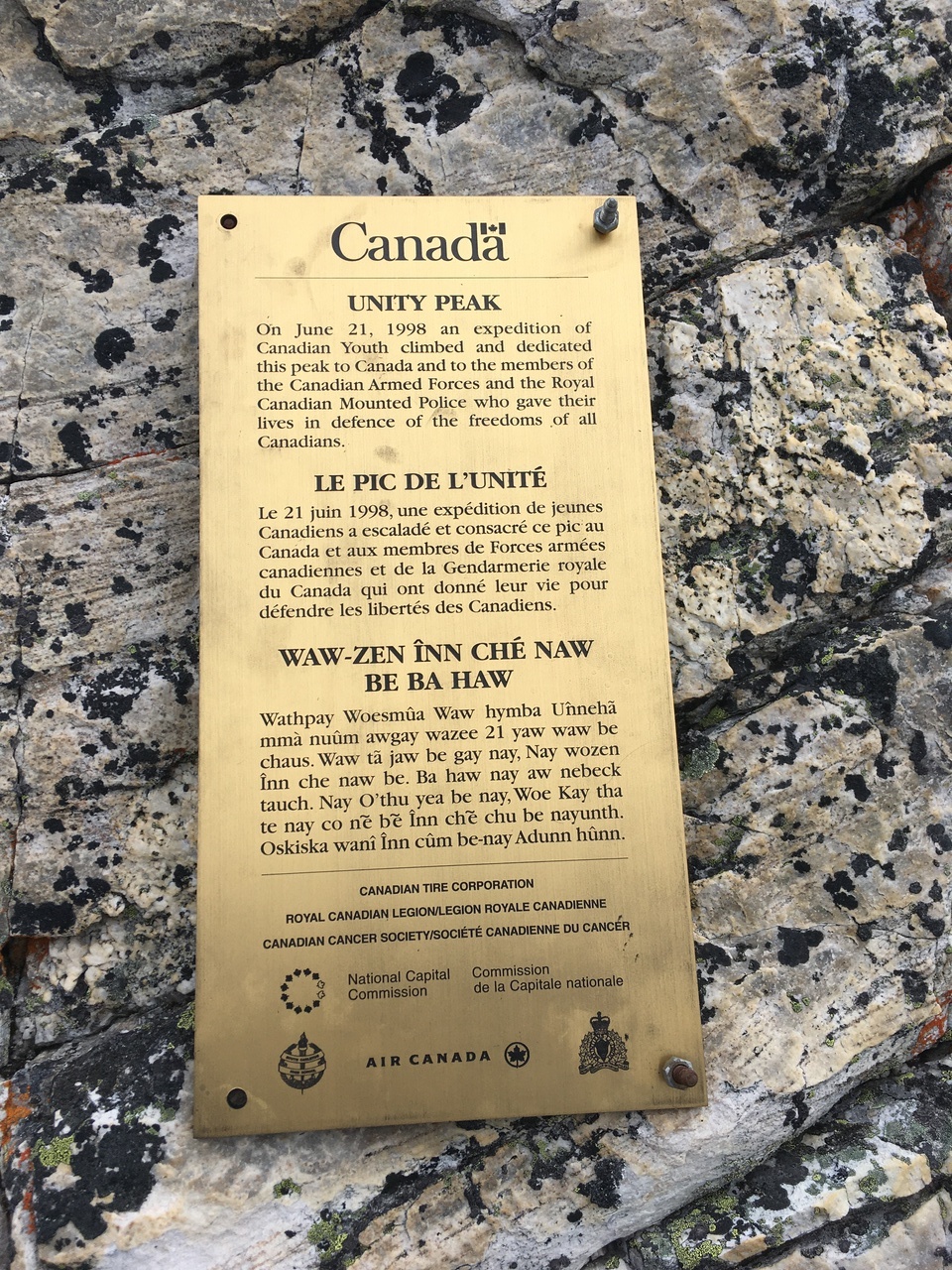 Lower down, in the center of all the boulders atop Unity Peak, lies this plaque explaining the naming! Couldn't find a register though.