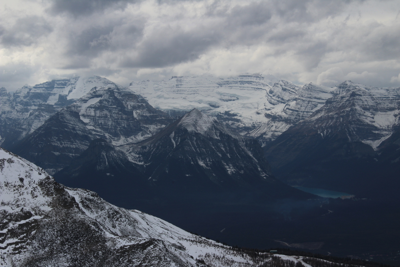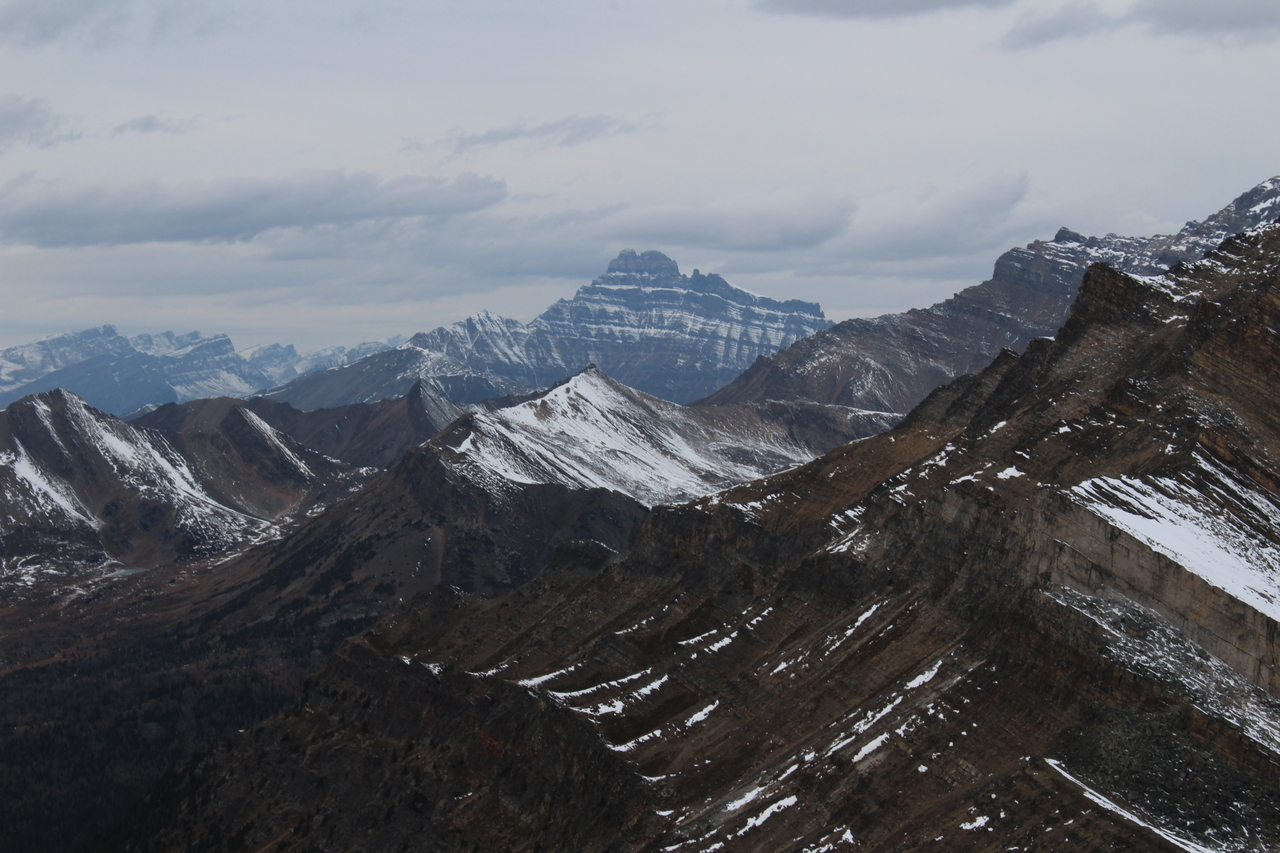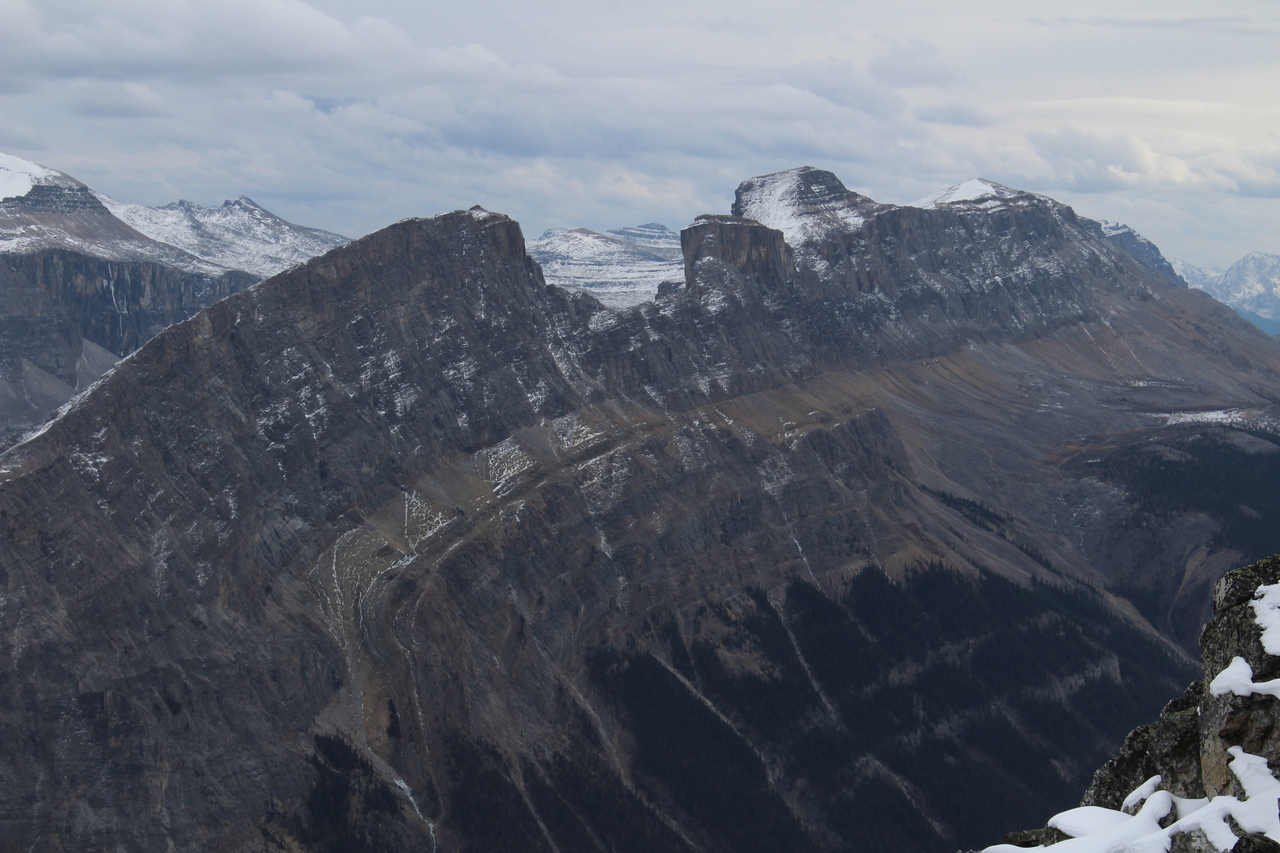 Lake Louise group! Lefroy towers to the left, above Aberdeen, Haddo, Sheol, and Saddle! Mount Victoria dominates in the center above Fairview, and Whyte sits right, above Lake Louise!