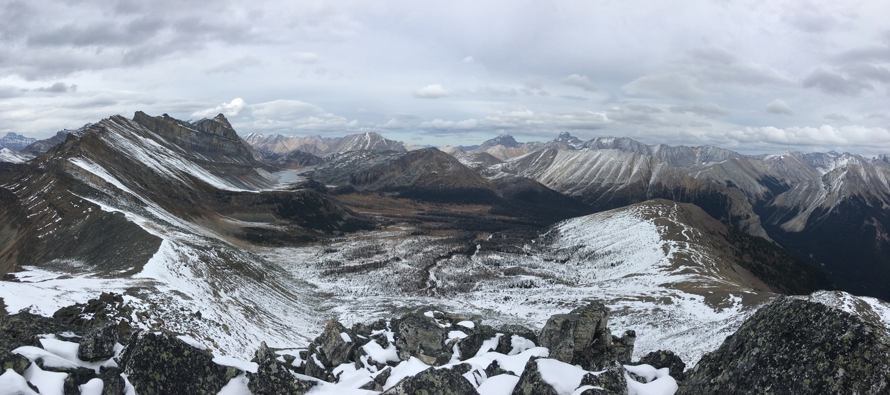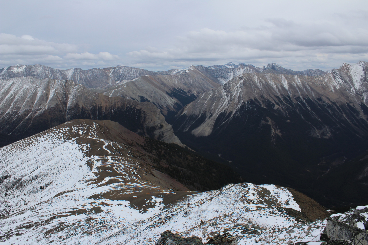 A view east towards often unseen peaks! Anthozoan Mountain and Lychnis Mountain stack up far left...the rest appear to be unnamed. ¯\_(ツ)_/¯