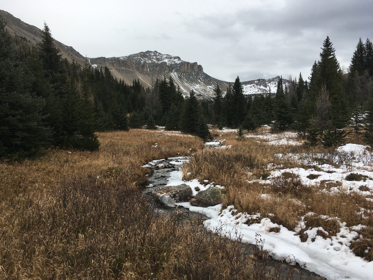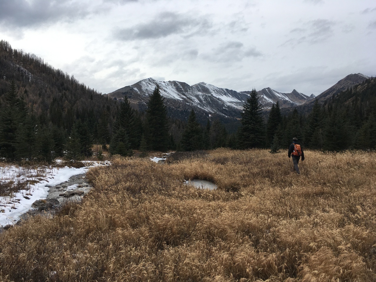 Looking back to Unity Peak! Beautiful colours in this valley at this time of year! We stayed on skier's right side of the creek for a while, as the terrain was open and easy to follow.