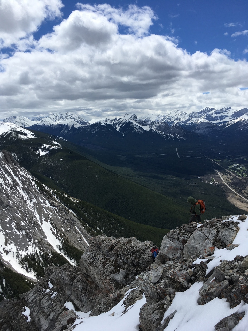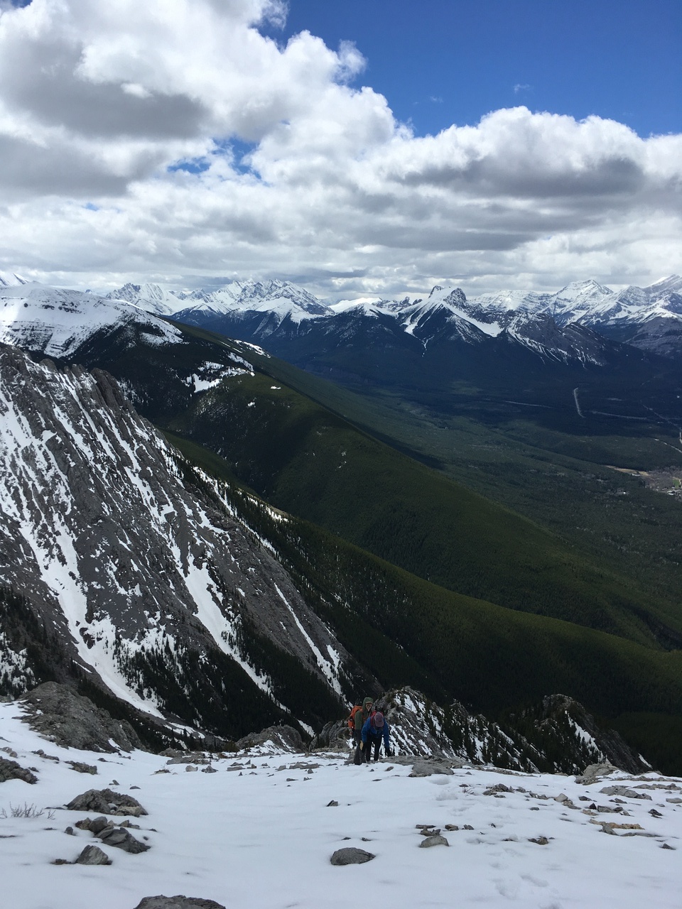 Starting back down. We may have been sweating in the sun on our ascent, but the summit was quite chilly, and the wind made sure we didn't linger too long. It's not summer just yet! Photo credit: Kaitlyn