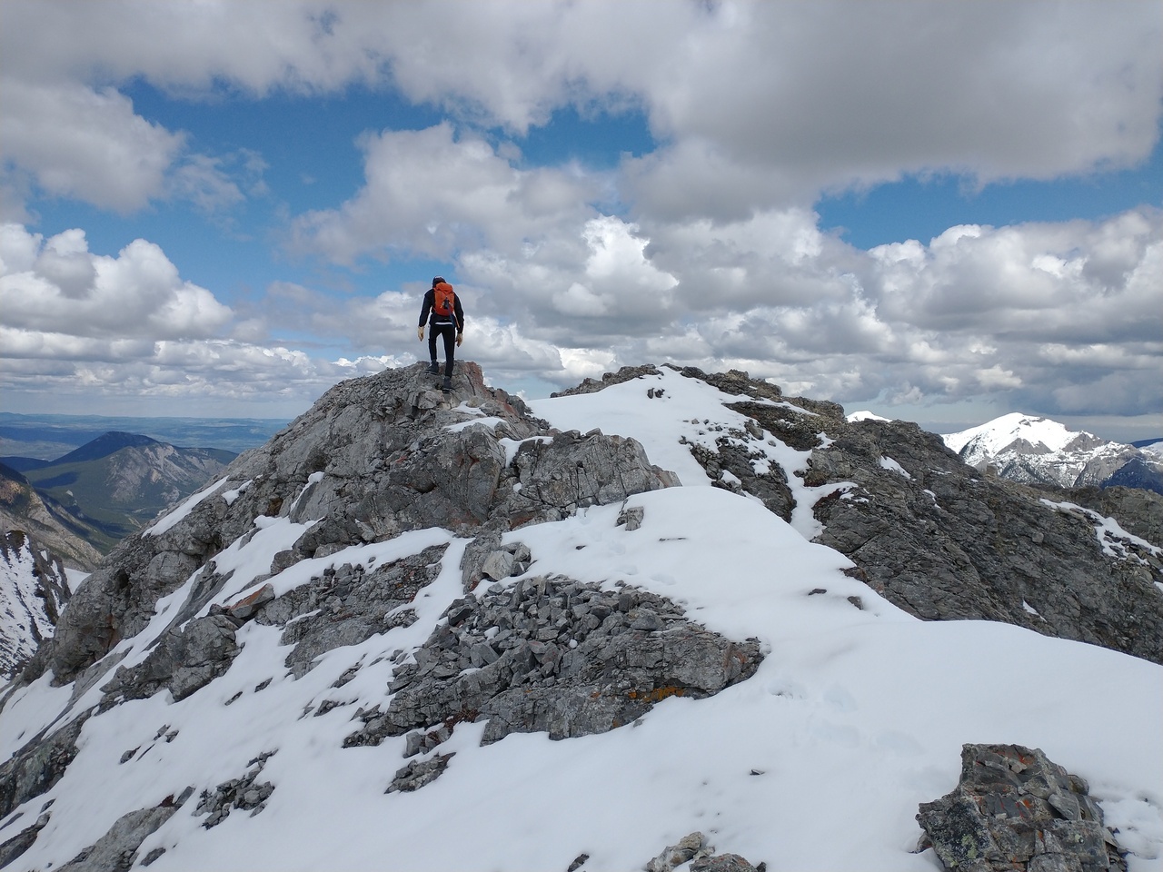 Although we had to ascend some slushy, snow slopes to reach it, once on the crest of the ridge leading to the summit, we found ourselves on completely bare rock!