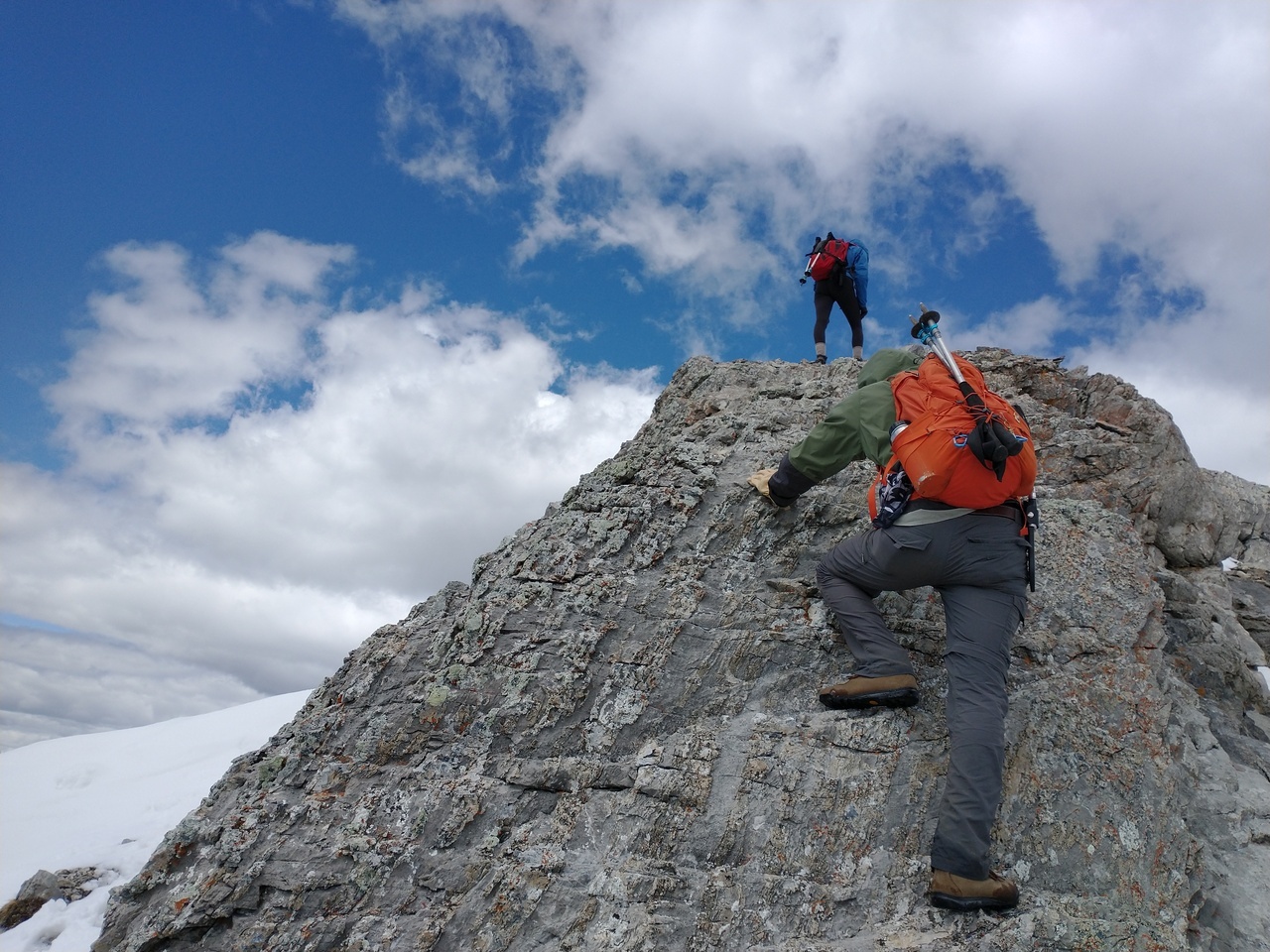 This dry, solid rock was a joy to ascend after barely surviving that sketchy grass yesterday! Photo credit: Dad