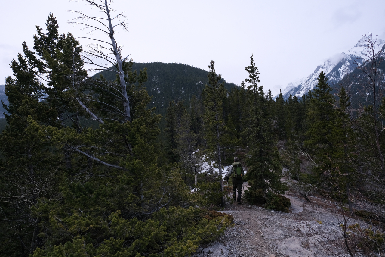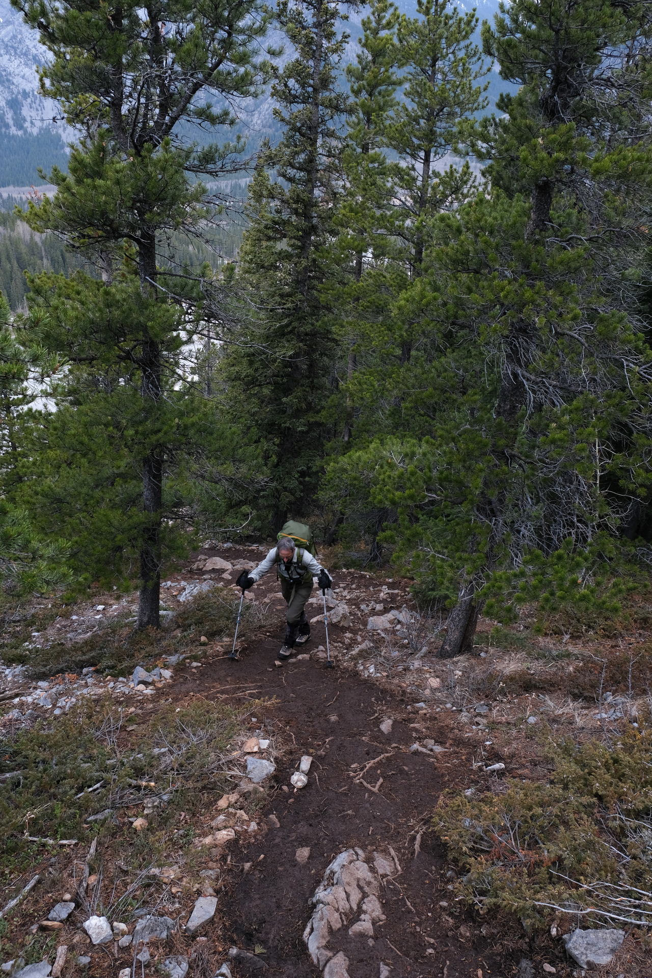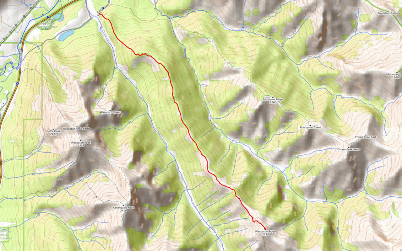 The well-travelled trail begins on the east side of the Wasootch Parking Area, and quickly gains elevation up to the ridge.