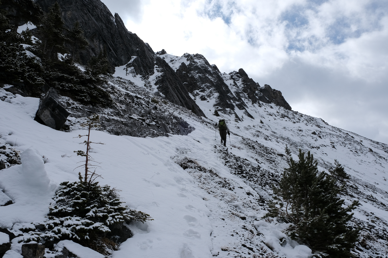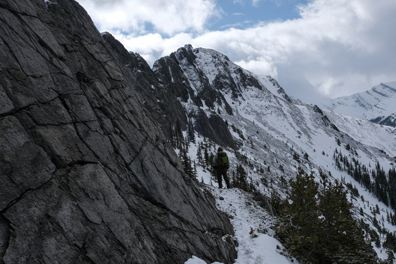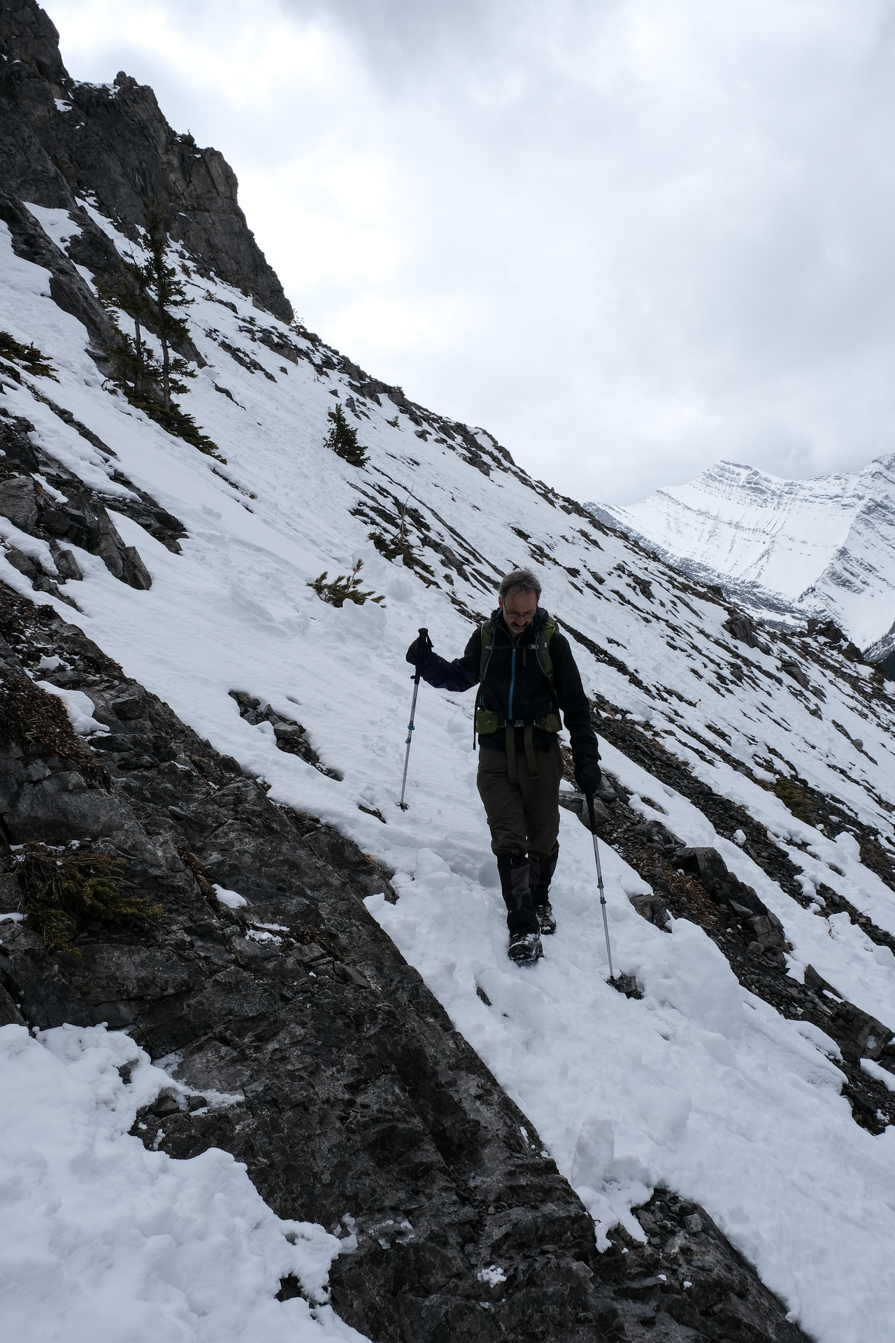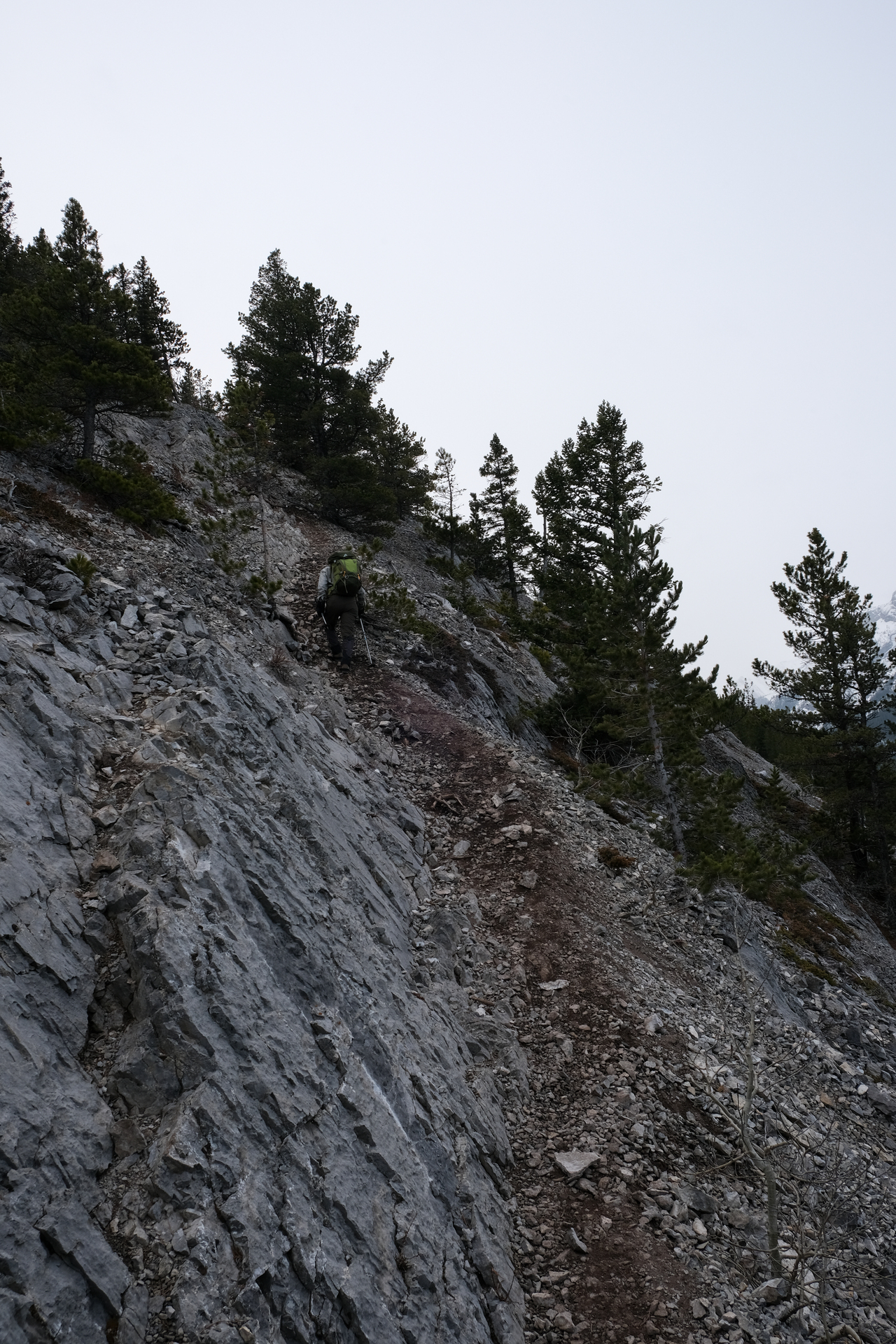 Those are some impressive slabs! Note the traverse trail, characterised by the narrow line of snow.