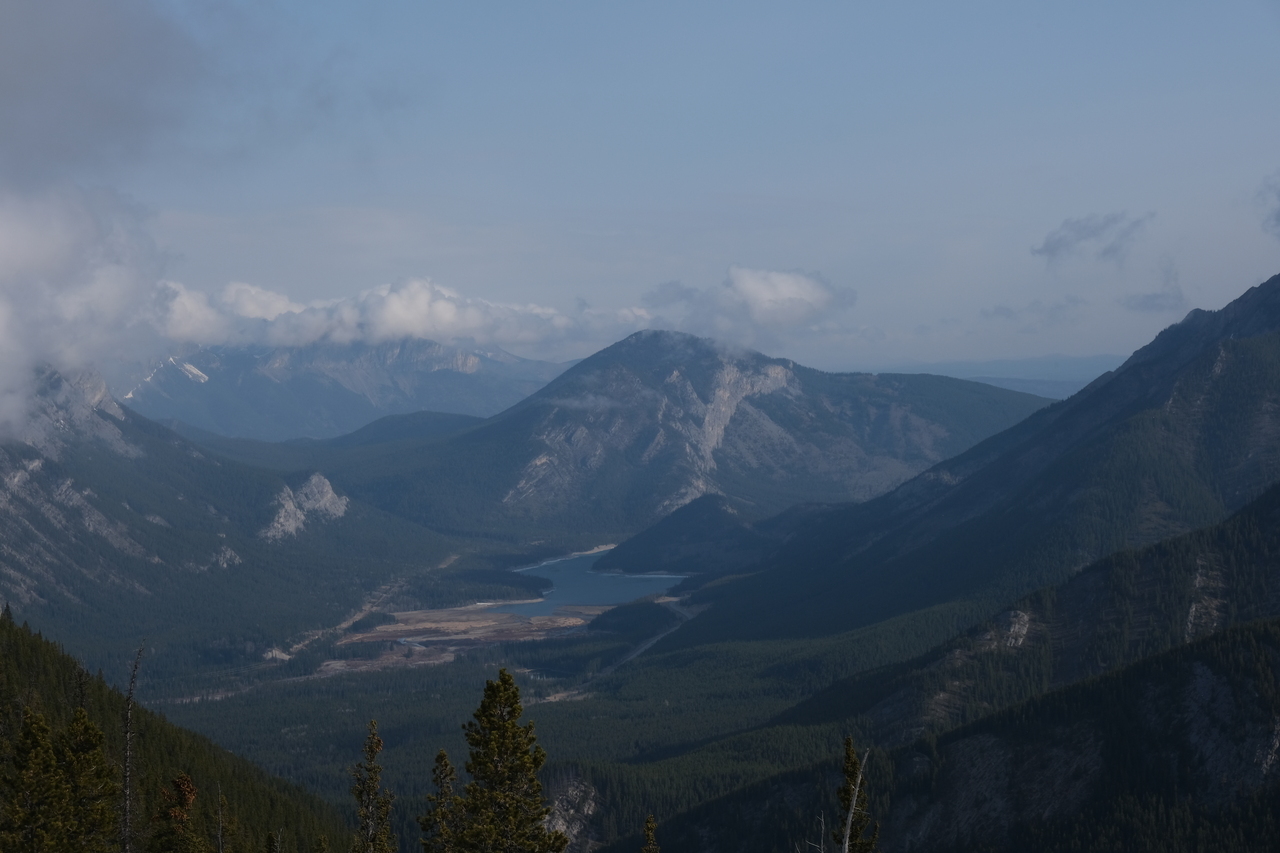 Looking back to Barrier Lake, with Yates Mountain rising at its base.
