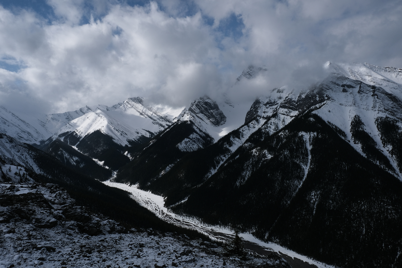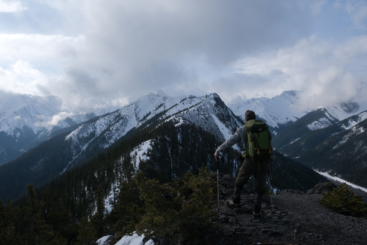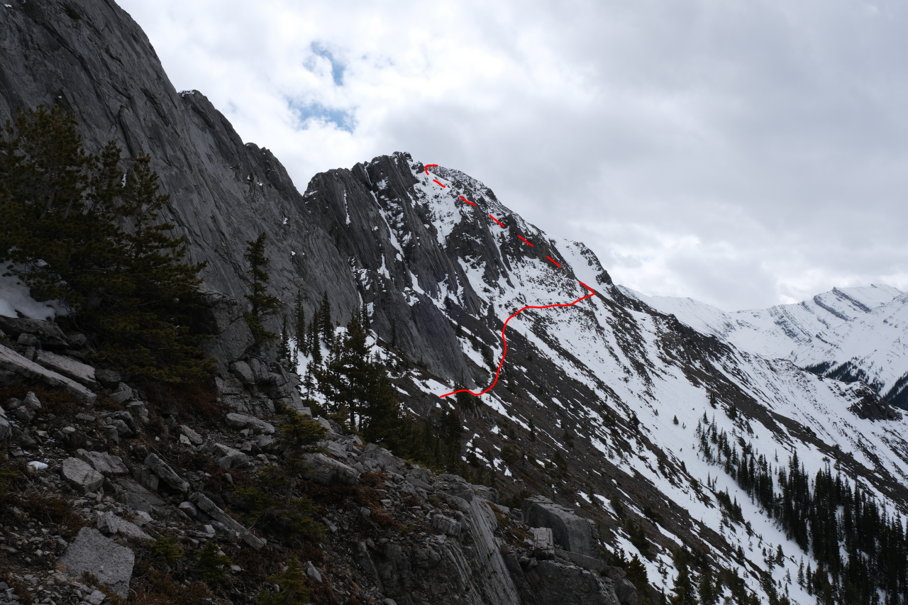 After spending three whole weeks in Edmonton (yes, it's as bad as it sounds), buckling down (literally...safety first ;)!) and finally getting my drivers licence, we were heading back to the Rockies :)! Since we'd been away for a little while, we were unsure how the conditions had evolved, and as we drove down Highway 40, towards Kananaskis, the absence of snow had us thinking that our snowsport days might be over. We therefore decided to head up the loooooong Wasootch Ridge, which is mostly a hike, finished off with a short, easy scramble. The hope was that even if we were wrong in our condition assessment, we would still be able to make the summit without too much risk.