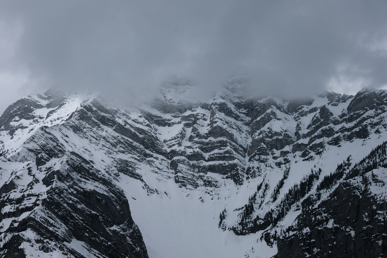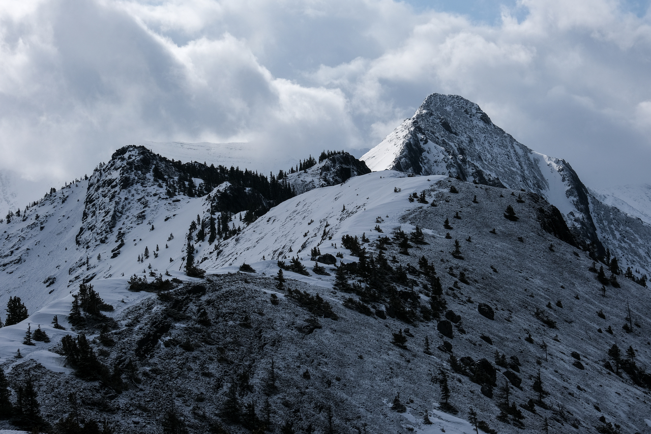 Old Baldy was finally able to escape the clouds as we descended, revealing the entirety of its sheer east face!