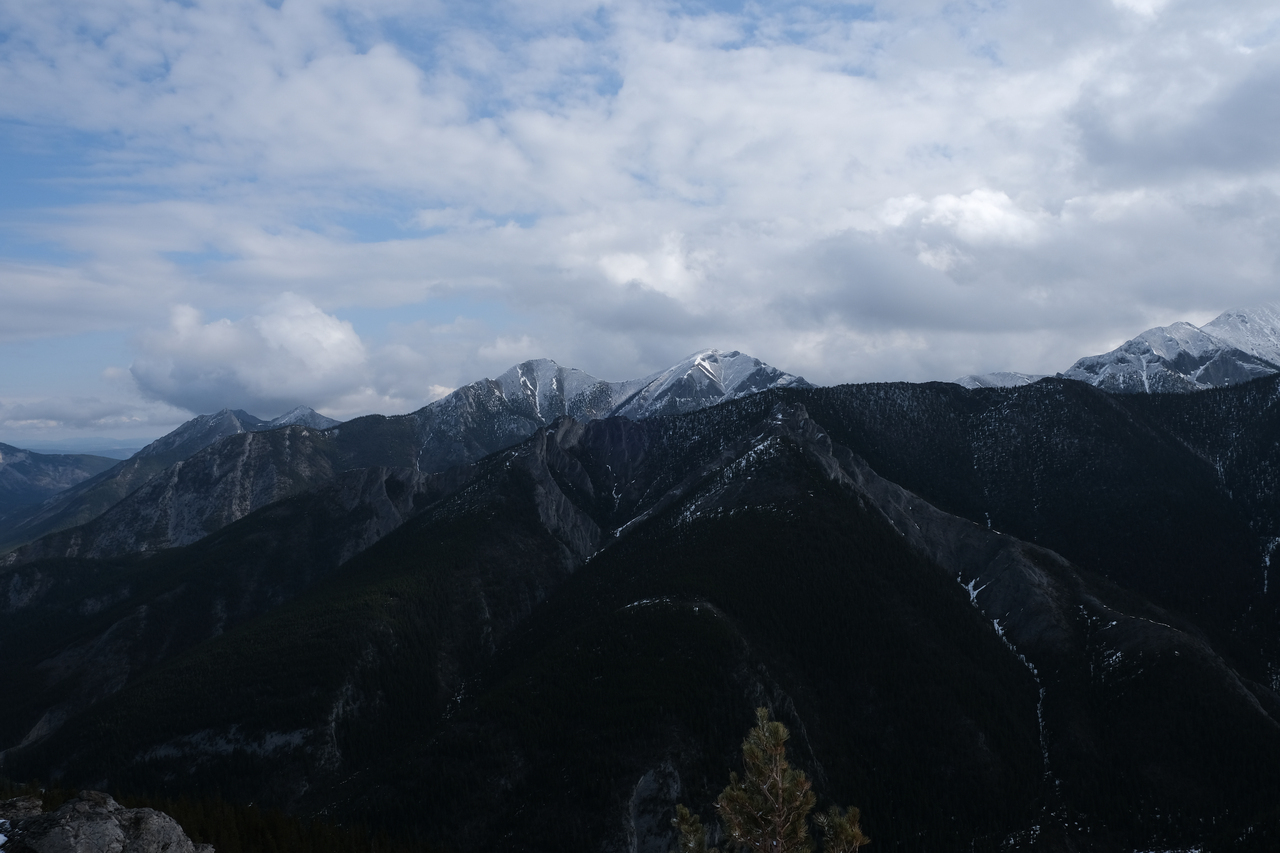 We finally got a glimpse of our objective, and it's not close! The summit of Wasootch Ridge is barely visible, very distant center.