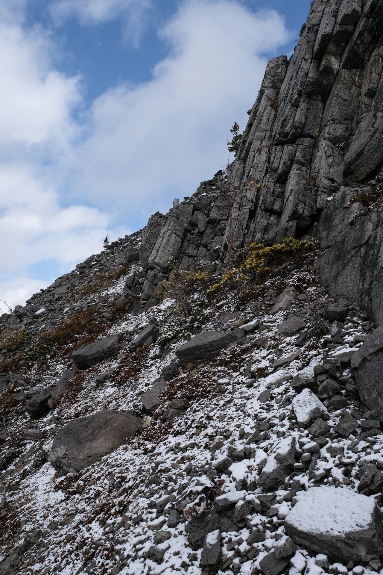 This in-your-face, close-up view of Old Baldy's east face would be quite stunning on a clear day...Unfortunately it hid deep in the clouds.