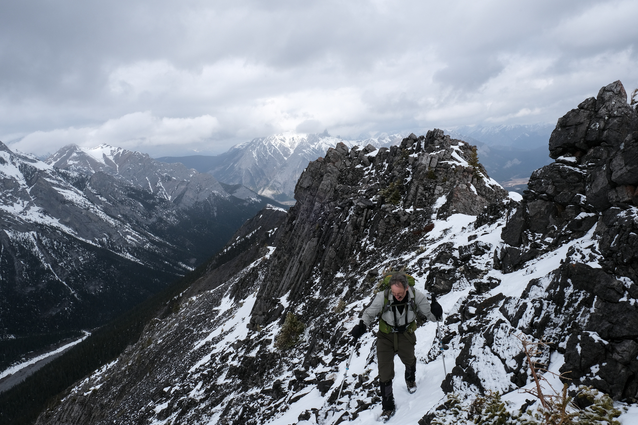 Unsure if the point just down the ridge was higher, we continued along until the ridge dropped down significantly. Photo credit: Dad